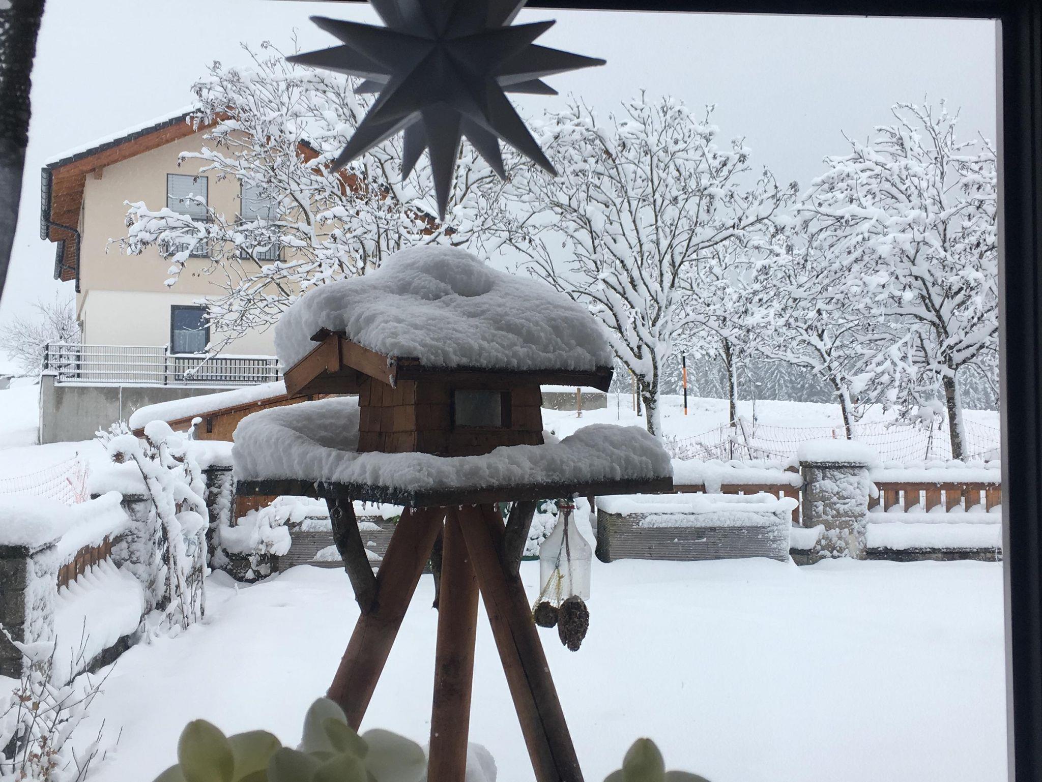 Das Doppelzimmer verfügt über ein Badezimmer mit Dusche und Badwanne bzw. über ein WC extra. Der Blick vom Balkon richtet sich in Richtung Karkogel.
