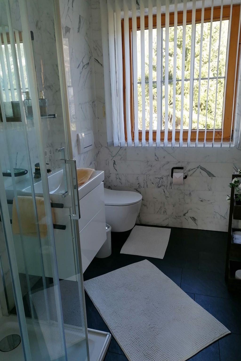 In winter, an open fireplace in the kitchen/dining room/bay ensures a cosy and warm atmosphere. In summer, the access to the garden and terrace offers relaxation in nature [no barbecue available]. Underfloor heating is integrated into the black marble flooring, and the kitchen and dining room are connected to the sound system via BOSE loudspeakers. The light-flooded top floor with its cosy wooden pitched roof offers a large lounge with direct access to a balcony with a magnificent view of the magnificent mountains, Achenkirch and Lake Achensee in the background. Cosy leather sofas and another open fireplace invite you to relax. Here you will find the music system and a TV with Blu-ray/DVD player. Underfloor heating is integrated into the white marble flooring. The following sleeping options are available: a pull-out sofa bed for two people and a pull-out sofa bed for one person. Please note that there is no blackout facility in the attic and the attic is not lockable - the staircase to the floor below is open.