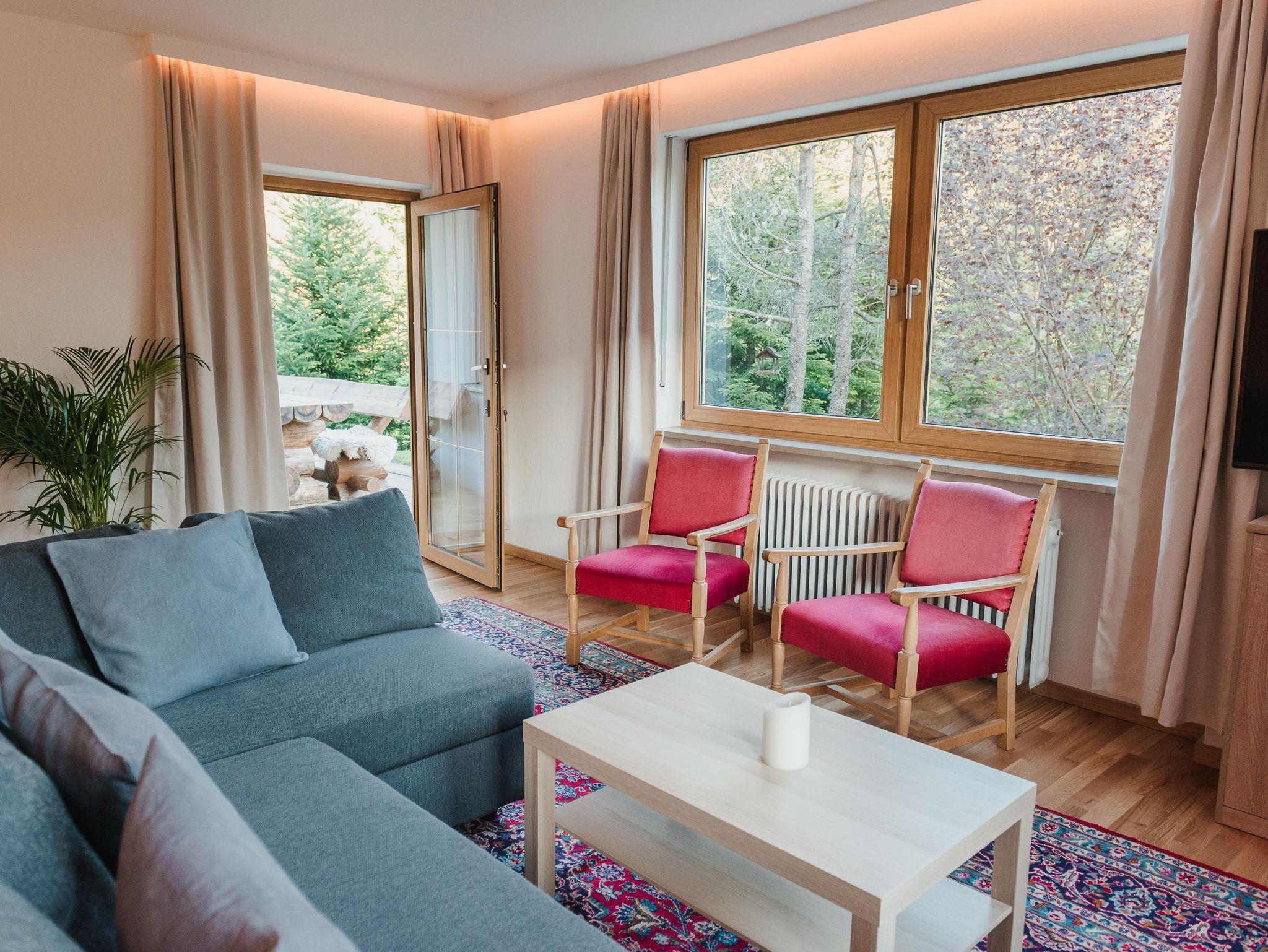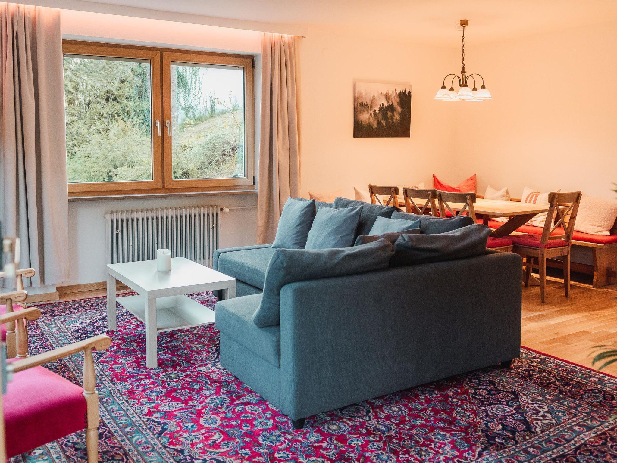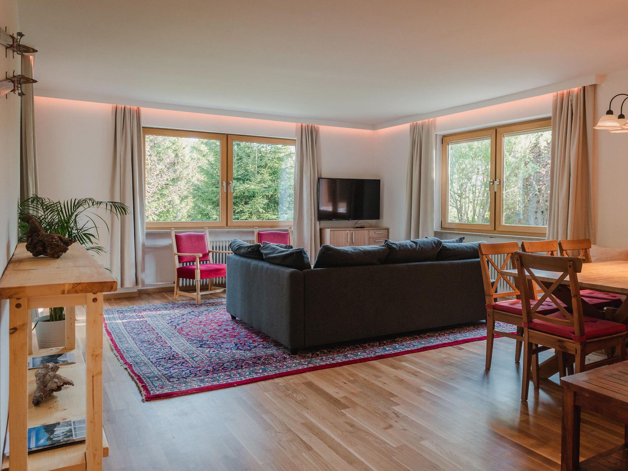 Waldgarten verfügt über eine geräumige, 95 m2 große Wohnung im Erdgeschoss. Der Zugang zur Wohnung erfolgt vom Parkplatz aus über eine separate Außentreppe. Es ist ideal für Familien oder eine Gruppe von Erwachsenen, da es zwei Schlafzimmer mit 5 Betten, eine große neue Küche und einen geräumigen Wohn- und Essbereich gibt. Im Wohnzimmer befindet sich ein Schlafsofa, auf dem 2 weitere Personen schlafen können.