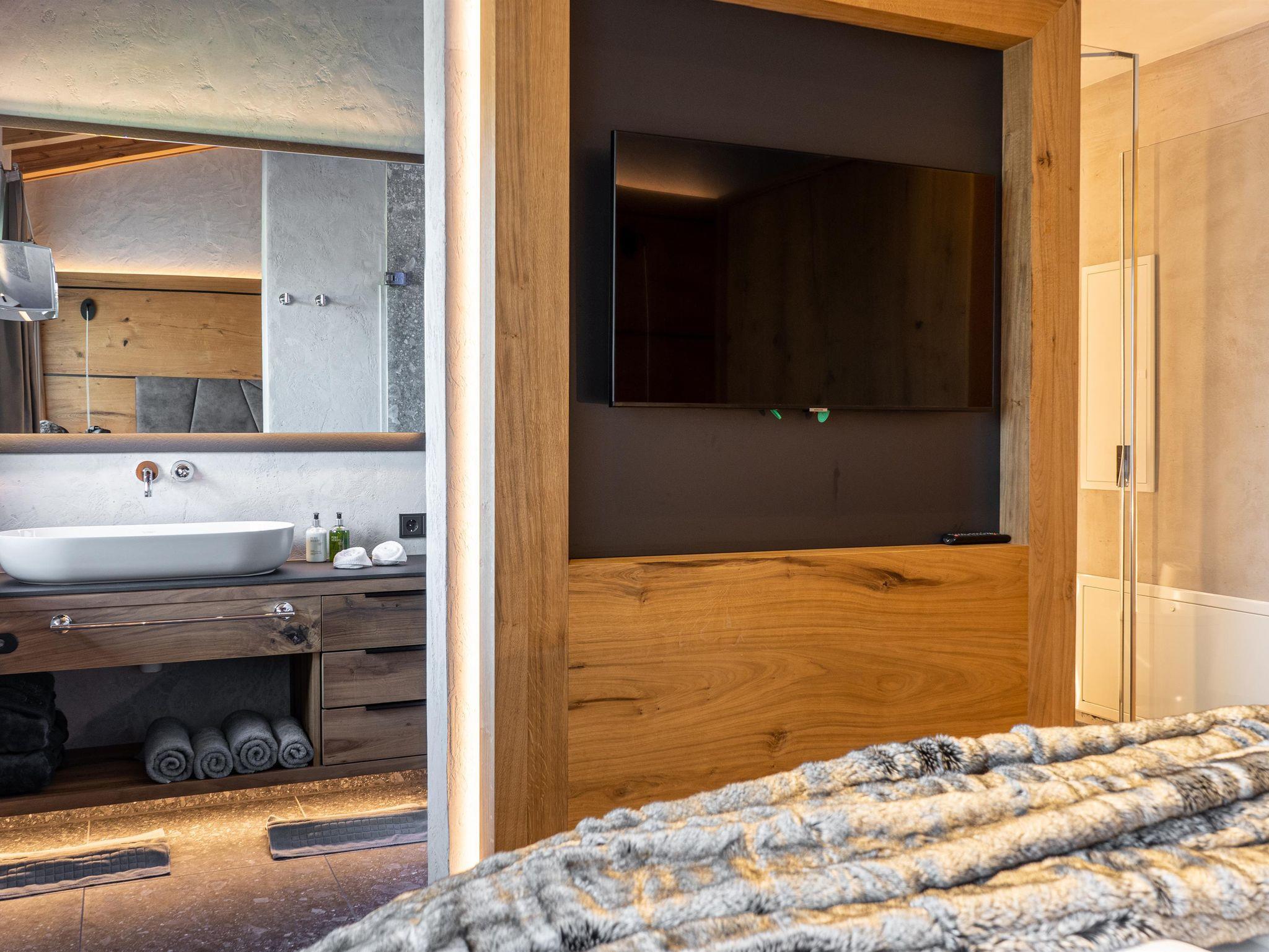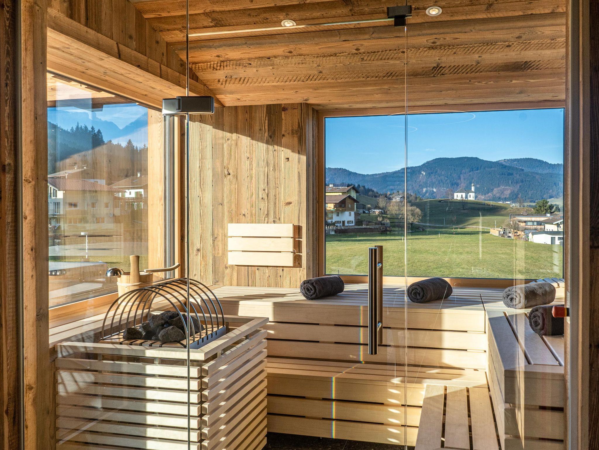 2 große Schlafzimmer mit je 2 Boxspring-Doppelbetten sowie für jedes Schlafzimmer 1 Flat-TV, Privater Spa-Bereich mit 2 großen Badezimmern. 1 Bad mit Du/Waschbecken/WC sowie Fön und das andere Badezimmer mit eigenen Finnischen Sauna und Dusche, moderne Wohnküche mit perfekter Ausstattung: Geschirr, Espressomaschine, Toaster, Wasserkocher, Elektroherd, Kühlschrank mit Gefrierfach, Geschirrspüler, Essbereich, Relax-Bereich mit Flat-TV und Feuerstelle, 72 m² Panorama-Terrasse mit Whirlpool und Terrassenmöbel