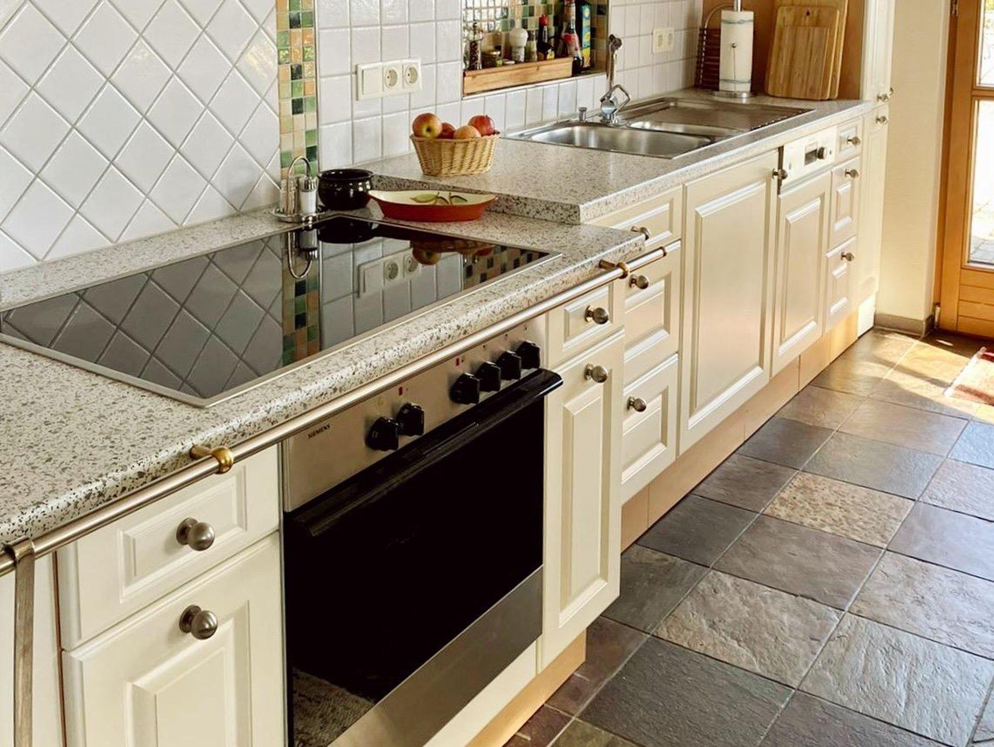 Zwei behagliche Schlafzimmer, eine einzigartige Schlafgalerie, eine bequeme Schlafcouch, zwei komfortable Bäder, eines davon mit Regendusche und Eckbadewanne, eines mit Dusche. Zwei separate WC's, ein heimeliges Wohnzimmer mit Kamin und eine komplett eingerichtete Landhausküche.