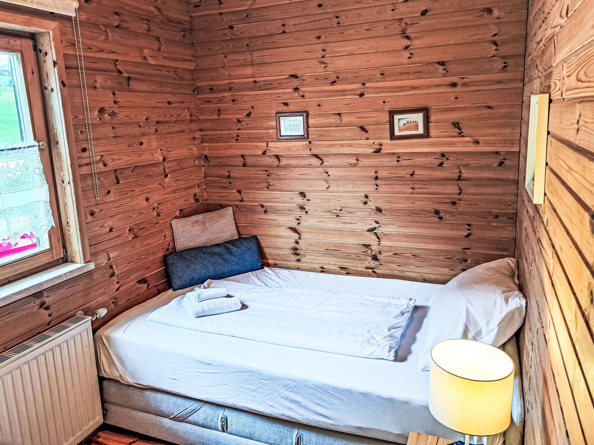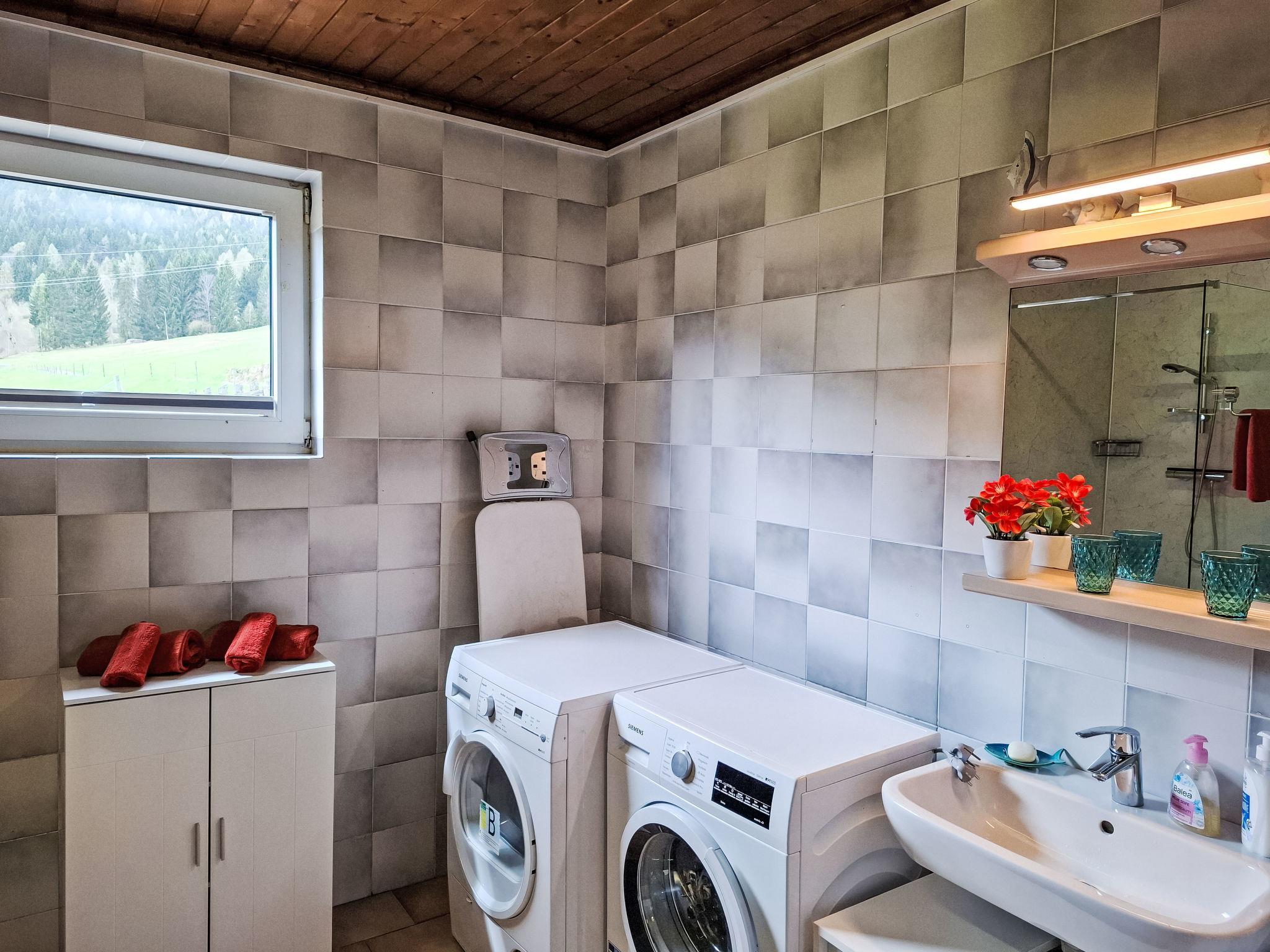 4-room house. Object suitable for 6 adults. Cosy and wooden furniture furnishings: living room with satellite TV. Exit to the balcony. 1 double bedroom with Dressing room. 1 room with 1 bed (120 cm, length 200 cm). Kitchen (oven, dishwasher, 4 ceramic glass hob hotplates, toaster, kettle, microwave, electric coffee machine, Capsules for coffee machine (Nespresso)) with dining table and wood-burning stove. Bathroom, sep. WC. Heating. Solar power. On the lower ground floor: living/sleeping room with 1 sofabed (90 cm, length 200 cm), 1 double sofabed (160 cm, length 200 cm), Scandinavian wood stove, dining nook, kitchen corner and flat screen. Exit to the terrace. Kitchenette (2 hot plates, electric coffee machine, Capsules for coffee machine (Nespresso)). Shower/WC. Wooden floors. Comfortable furnishings in the country house style. Balcony furniture. Beautiful panoramic view of the mountains. Facilities: washing machine, dryer. Internet (WiFi, free). Please note: suitable for families. Fridge without freezer, non-smoking house. Smoke alarm, fire extinguisher.