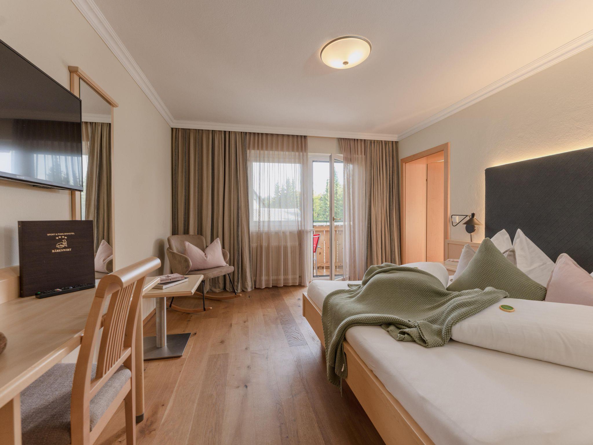 Im Sommer genießen Sie über 22.000m² Areal inkl. Badesee beinhalten viel Angebot für Kids, Teens & Familie - alles direkt beim Hotel, so brauchst Du keine zusätzlichen Meter machen. Große Gartenanlage mit überdachbaren Hotelpool, Tennisplätze, Kindertennisplatz, Tischtennis, Basketball, Fußballplatz mit Banden, Erlebnisspielplatz, am Badesee Wassertrampolin, Beachvolleyball, Reitplatz 32x16m und 2 Huzulen-Pferde,Mini Shetties kostenlos Schnupperreiten; Angelteich u. Forellengewässer; Reiten, 3 Indoor-Spielräume I Wall 3.0, Tischfußball, Billard, Dart; BÄREN SPA - WOHLFÜHLOASE: Raum der Stille, Biosauna, Dampfbad, Finnsauna, Physiotherm, Erlebnisduschen, Sonnenstudio, Barfusswiese, Massagen; WINTER: Skibus direkt vorm Hotel - ohne Auto zur 4-Berge-Skischaukel, SkiPauschalen; SOMMER: Premium Golf Partnerhotel , Wanderpauschalen, TopSommerprogramm für Kinder-Teens u. Familie mit unseren Guides, KINDERERMÄSSIGUNG; Besondere Küche!