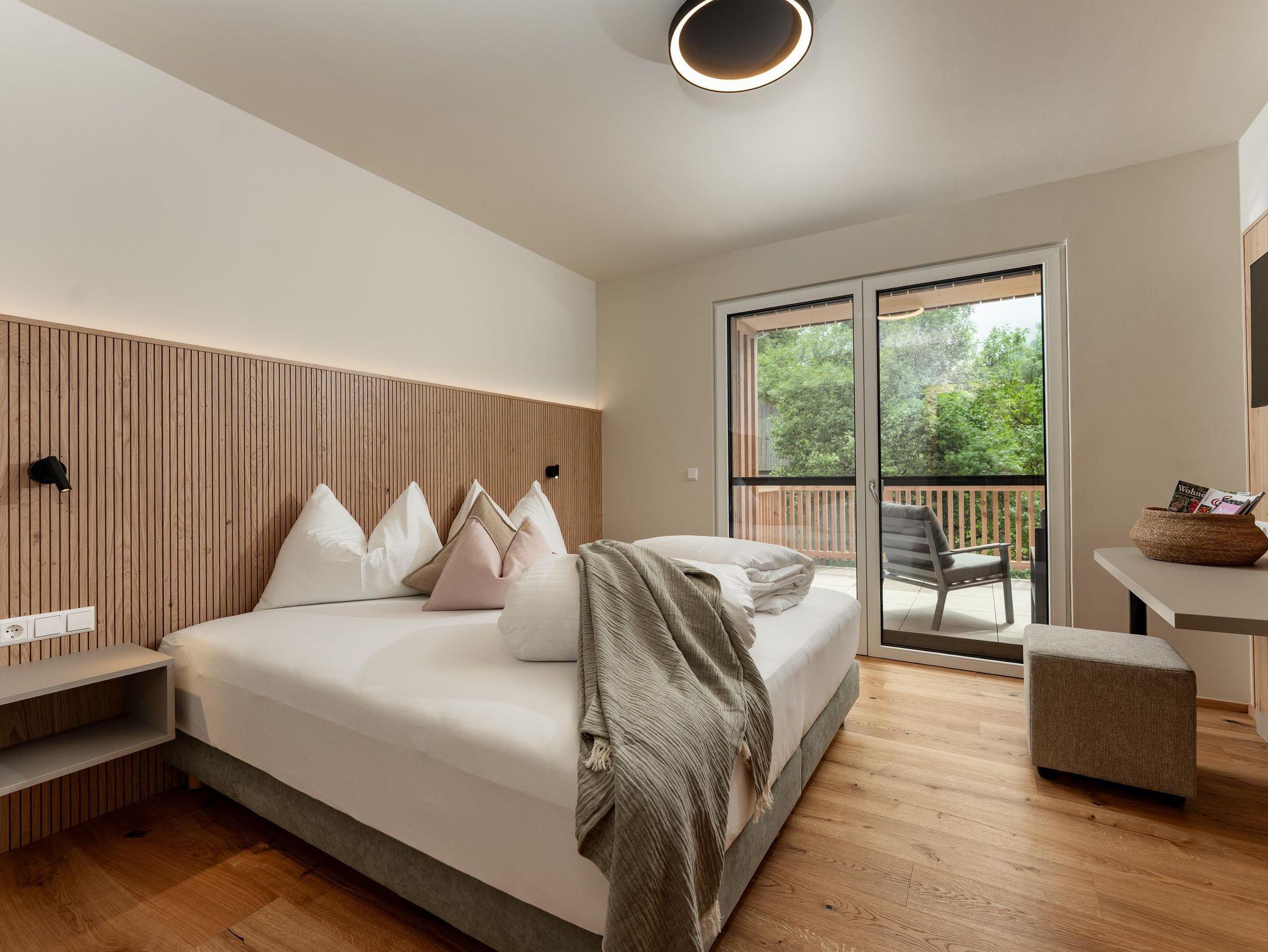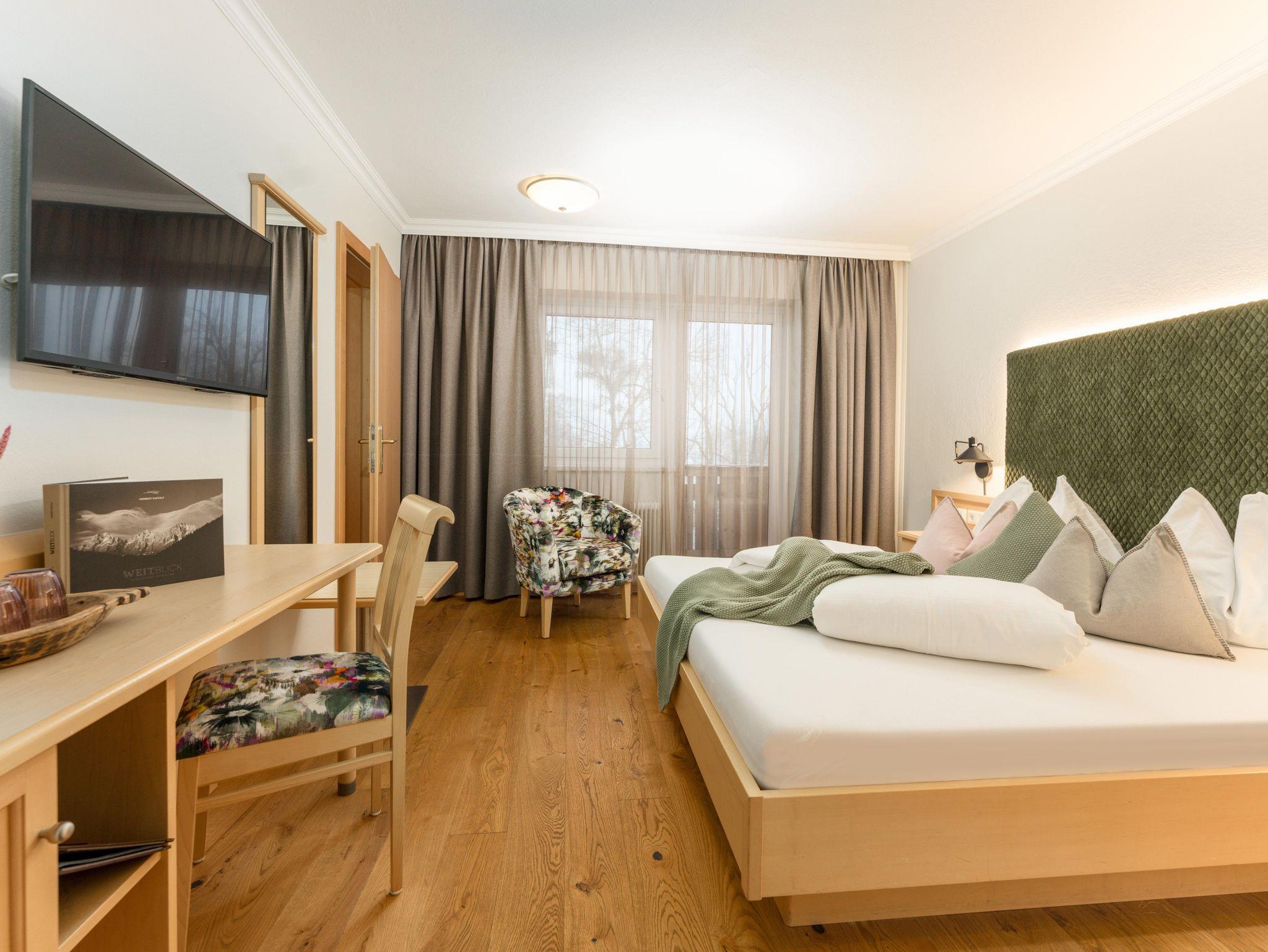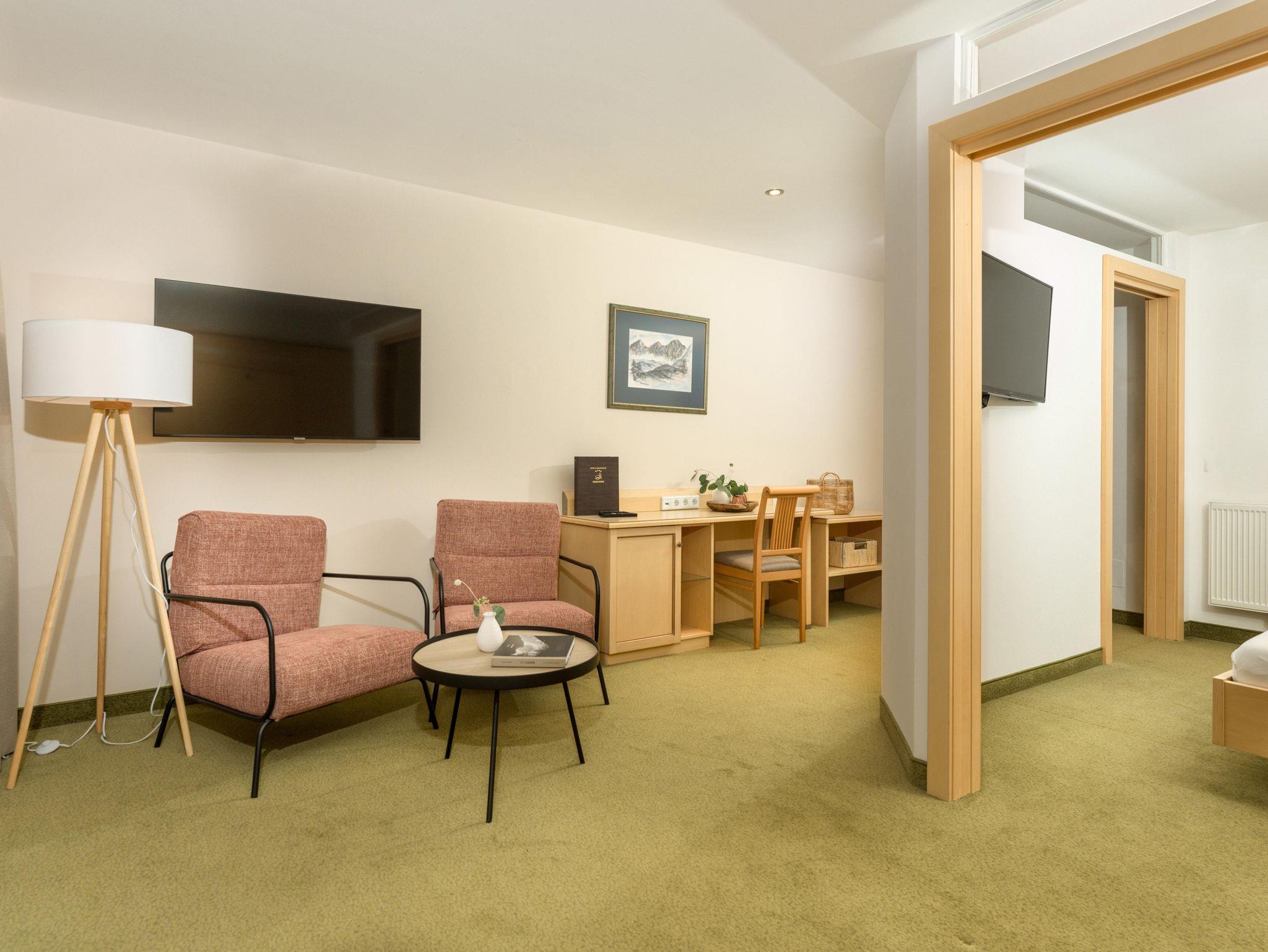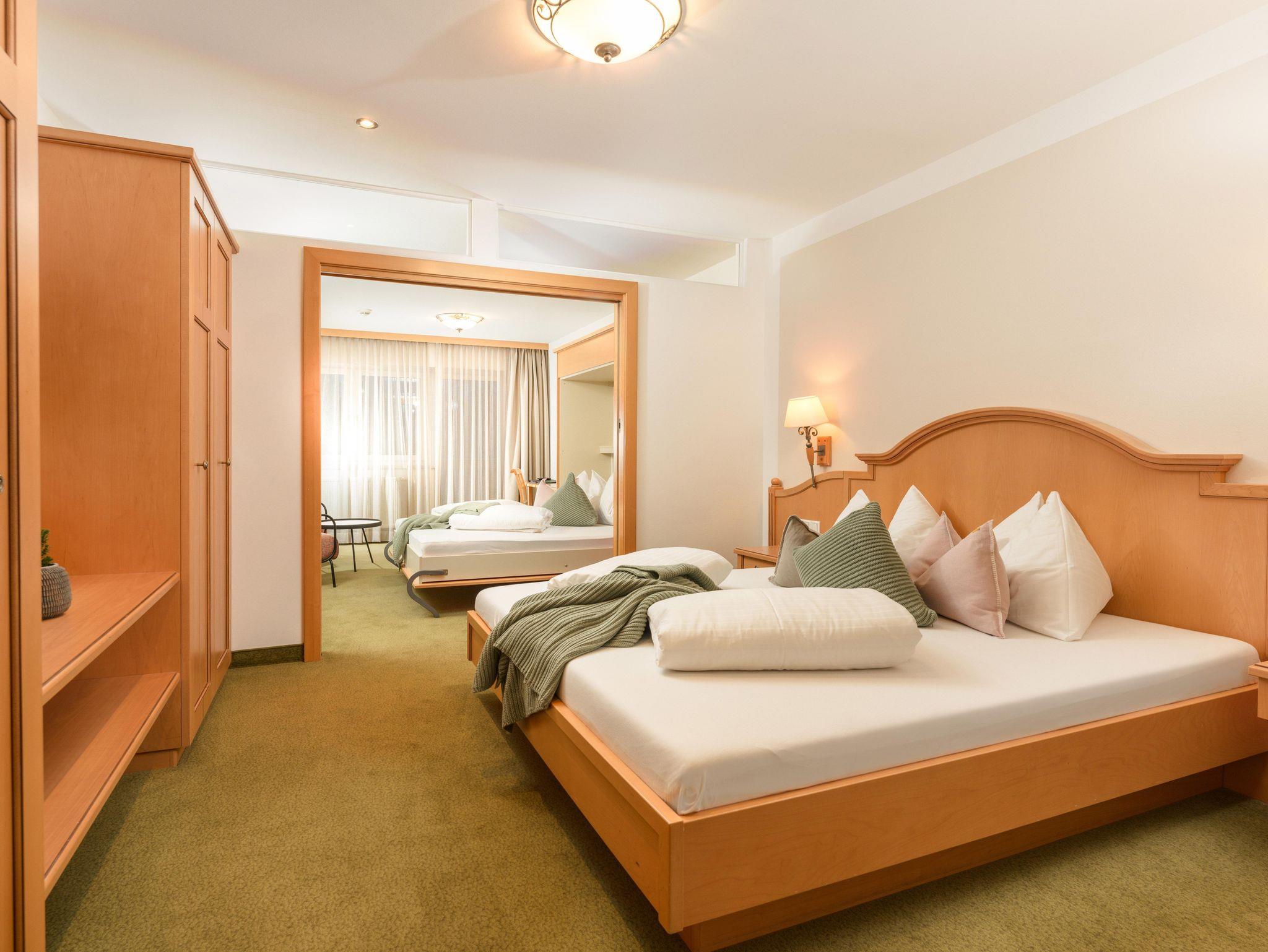 Schöne helle Hotelappartements/ JuniorSuiten ca. 42qm ( 2 Schlafzimmer mit Schiebetüre abtrennbar) Bad und WC getrennt, Fön, Sitzecke, Telefon, 2 Kabel-TV, Safe, Wlan und großen Sonnenbalkon.