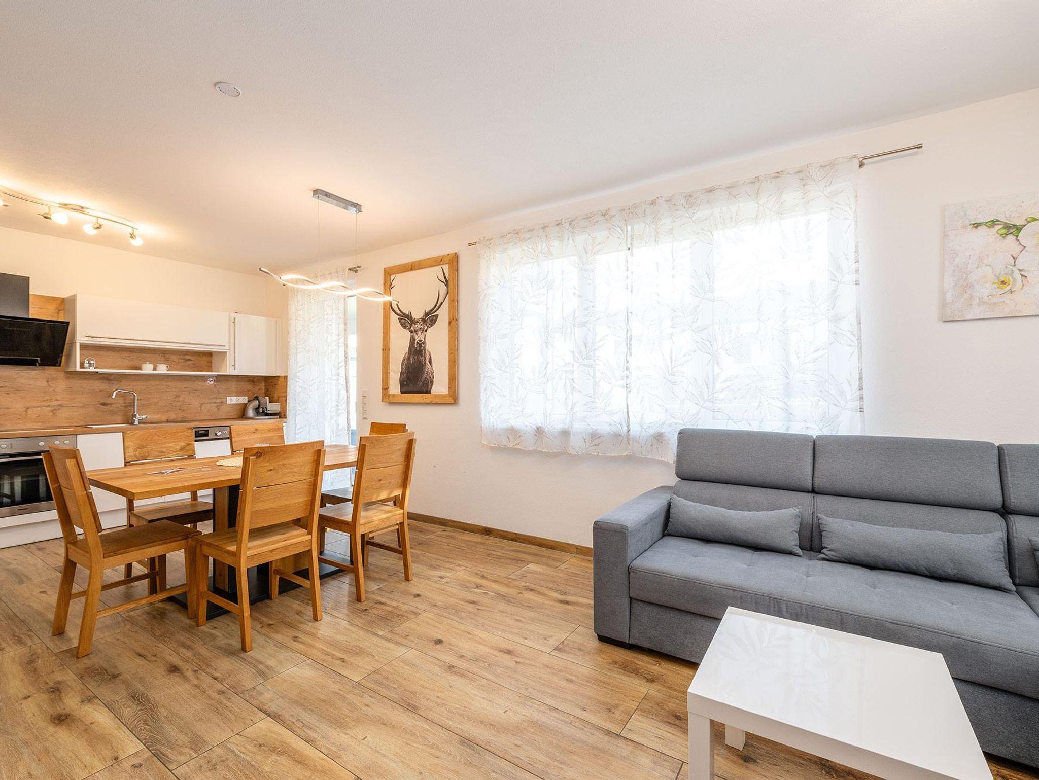 Die voll ausgestattete Küche, der helle Wohn- und Essbereich und der private Eingang mit zwei Carport-Stellplätzen sorgen für Komfort, während Haustiere im Apartment herzlich willkommen sind. Ein eigener Skiraum, WLAN und die ruhige Lage in einem gepflegten Wohngebiet machen den Aufenthalt besonders angenehm.
