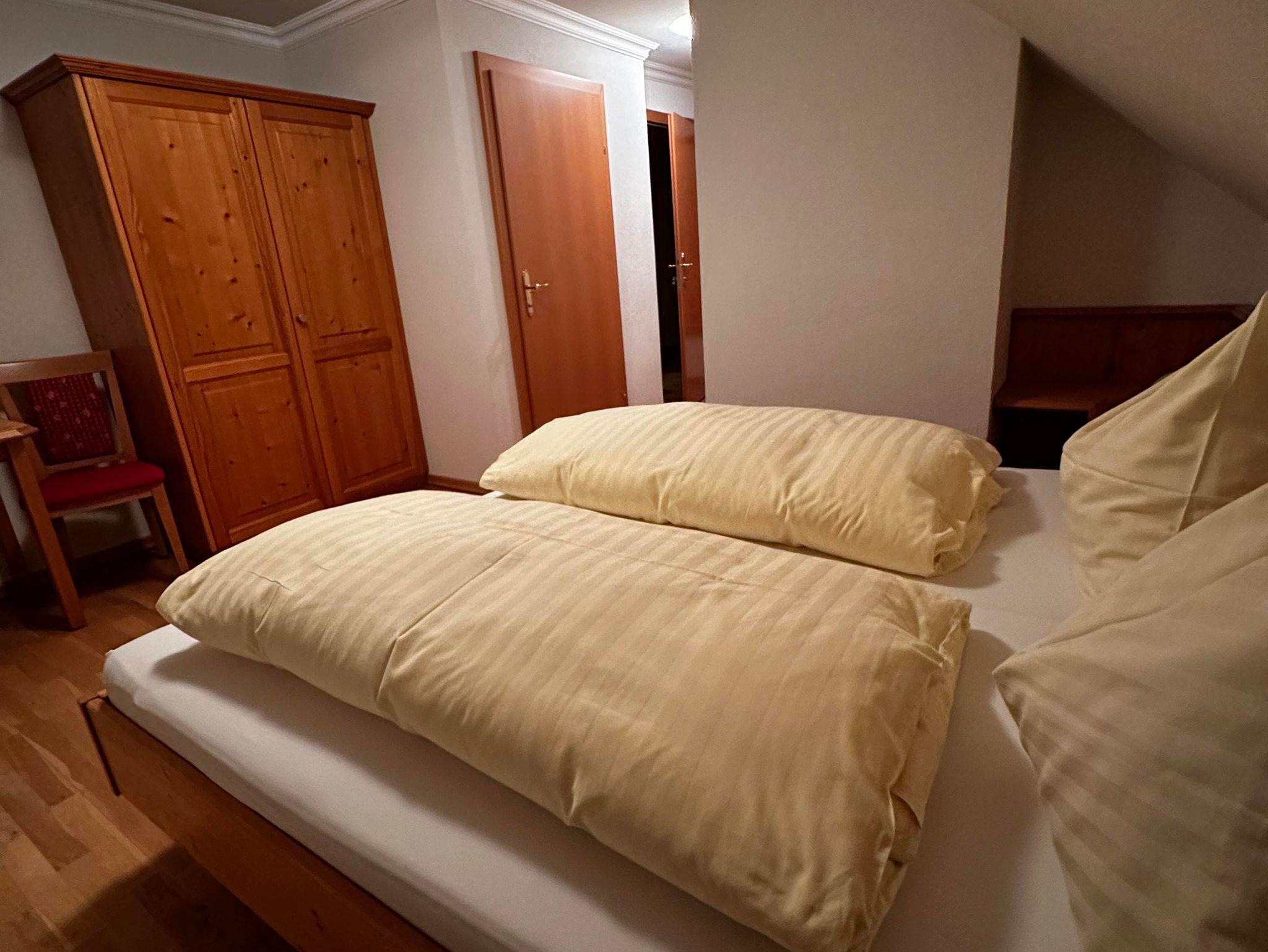 Helle, geräumige Zimmer mit Doppelbett, Kleinderschrank, TV im Zimmer und Balkon, im 2. Stock.