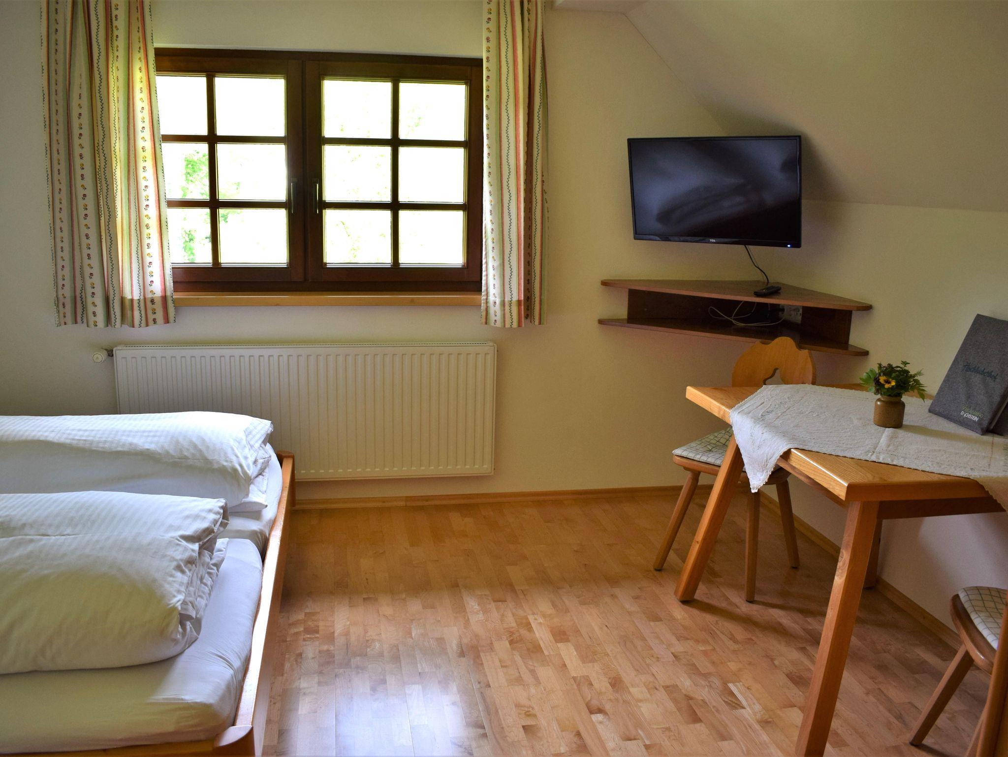 Bei uns wohnen Sie in vier liebevoll eingerichteten Doppelzimmerkategorien, alle samt ausgestattet mit Dusche, WC, und Sat-TV. Gut durchdacht ist die Ferienwohnung Apfelbaum mit einem Doppelbettzimmer, einem Wohn-Schlafraum mit ausziehbarer Wohlfühl-Doppelbett-Couch, Sat-TV, großzügiger Essecke (mit Blick auf das Hofleben), komplett eingerichteter Küchenzeile (Geschirrspüler, E-Herd mit Backrohr, Kühlschrank, Mikrowellenherd, Wasserkocher, Kaffeemaschine etc.), kleinem Vorraum und Dusche/WC eingerichtet. Erwachen Sie vom Duft des frisch gebackenen Brotes der Bäuerin, welches am liebevoll gedeckten Frühstückstisch mit all den anderen köstlichen selbstgemachten Hofprodukten darauf wartet, Ihnen einen guten Start in den Urlaubstag zu schenken.