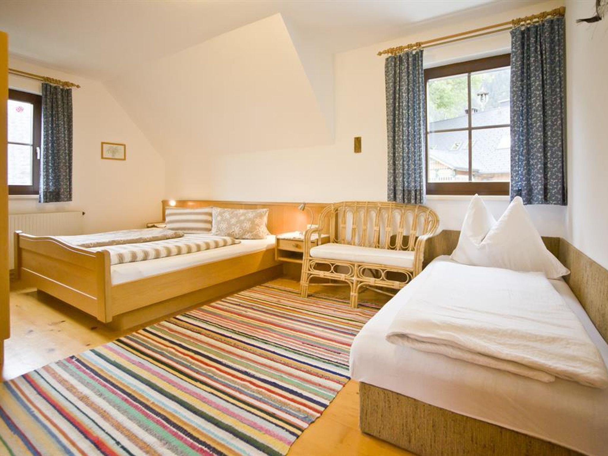 Unsere große Ferienwohnung Putterersee bietet genügend Platz für große Familien. Ein Schlafzimmer ist mit einem Doppelbett ausgestattet, das zweite Schlafzimmer mit einem Doppelbett und einem Einzelbett. Rustikale Möblierung, Blick ins Tal, Balkon, das Appartement ist im ersten Stock und kann nur über eine Stiege erreicht werden.