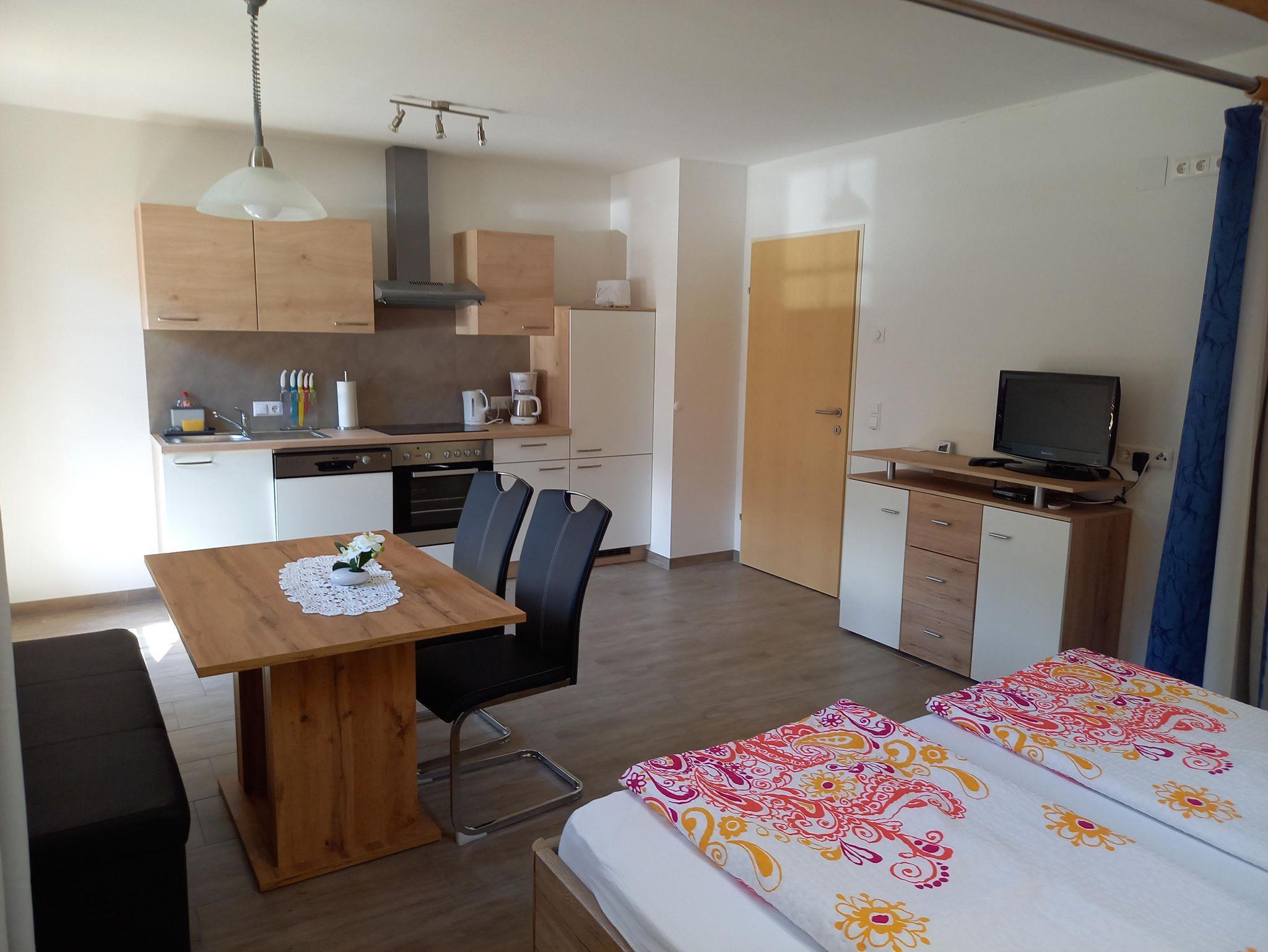 Feine kleines Apartment im 2. Stock unseres Hauses. Es bietet Platz für 2 Personen und besteht aus einer Wohn/Schlaf Küche, TV, eigener Balkon und ein Bad mit WC und begehbarer Dusche.