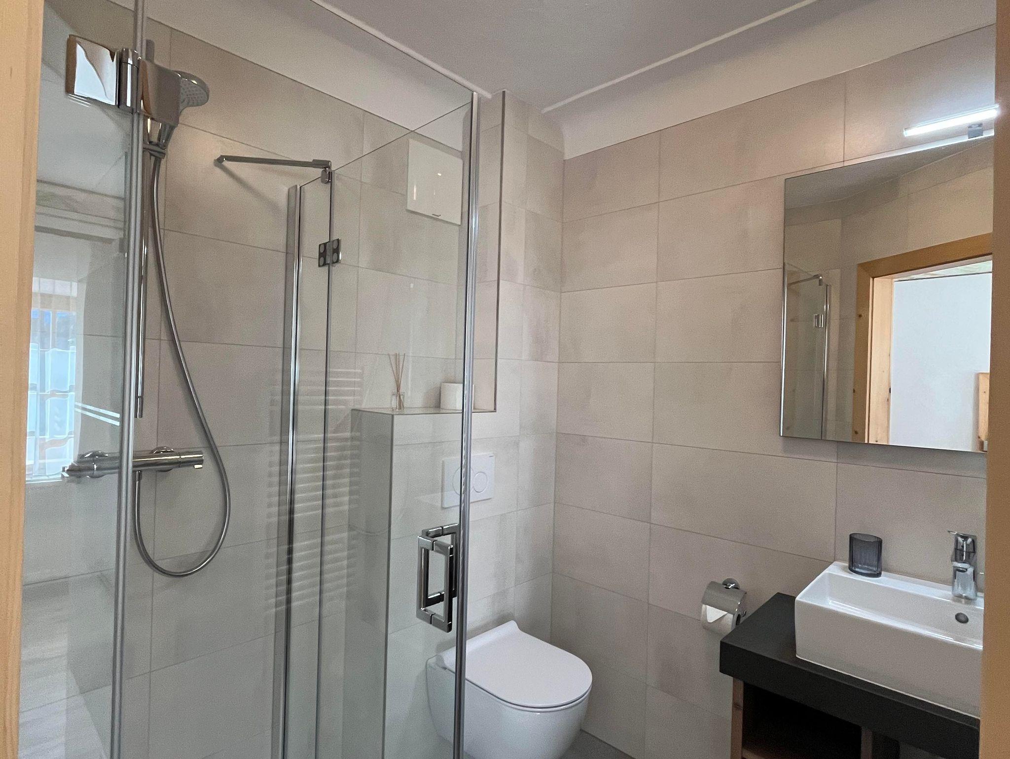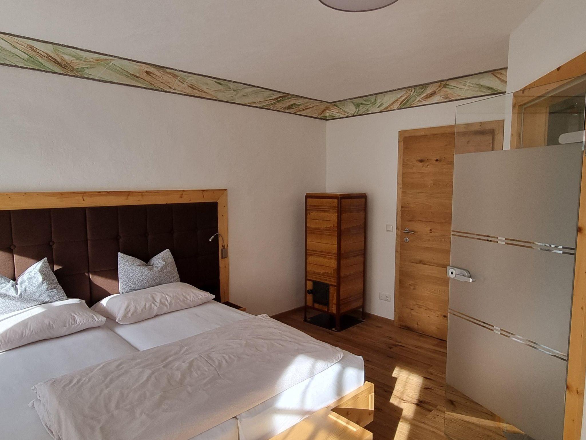 Zu den beiden Apartments können wir nun auch zwei neue, schöne Komfortzimmer mit jeweils einem Doppelbett, Bad und WC im ersten Obergeschoss unseres Bauernhauses anbieten.