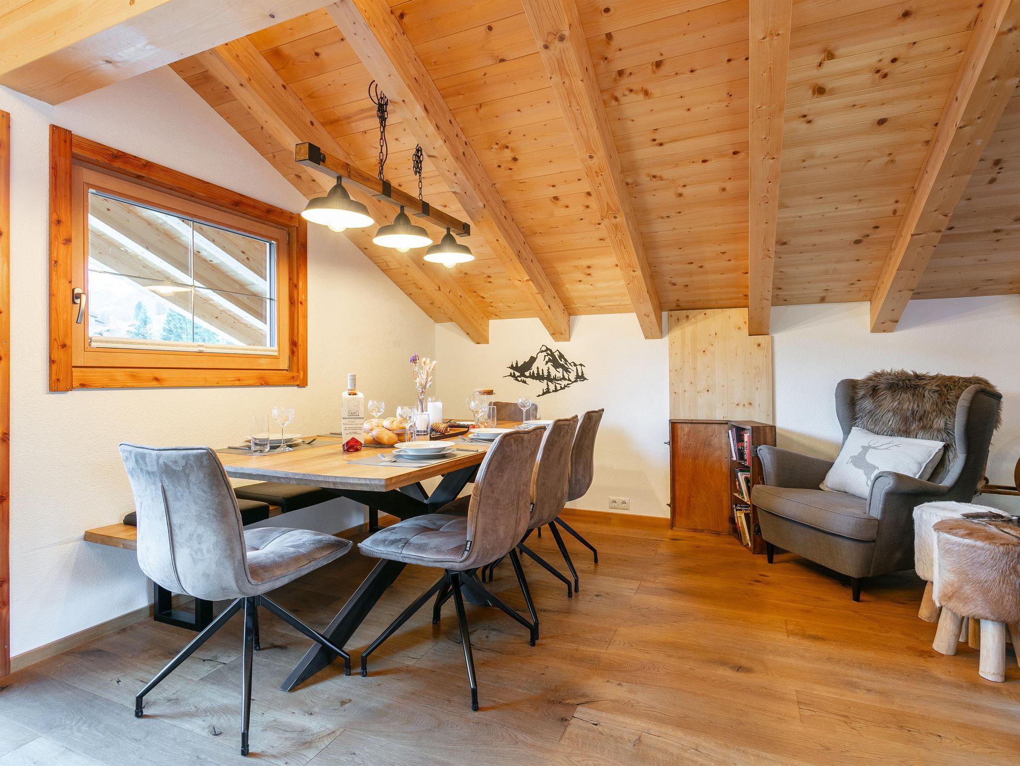Ein besonderes Highlight ist die rund 25 m² große Terrasse – ideal, um laue Sommerabende mit Blick auf das beeindruckende Bergpanorama zu genießen. Zwei überdachte Parkplätze stehen Ihnen ebenfalls zur Verfügung.