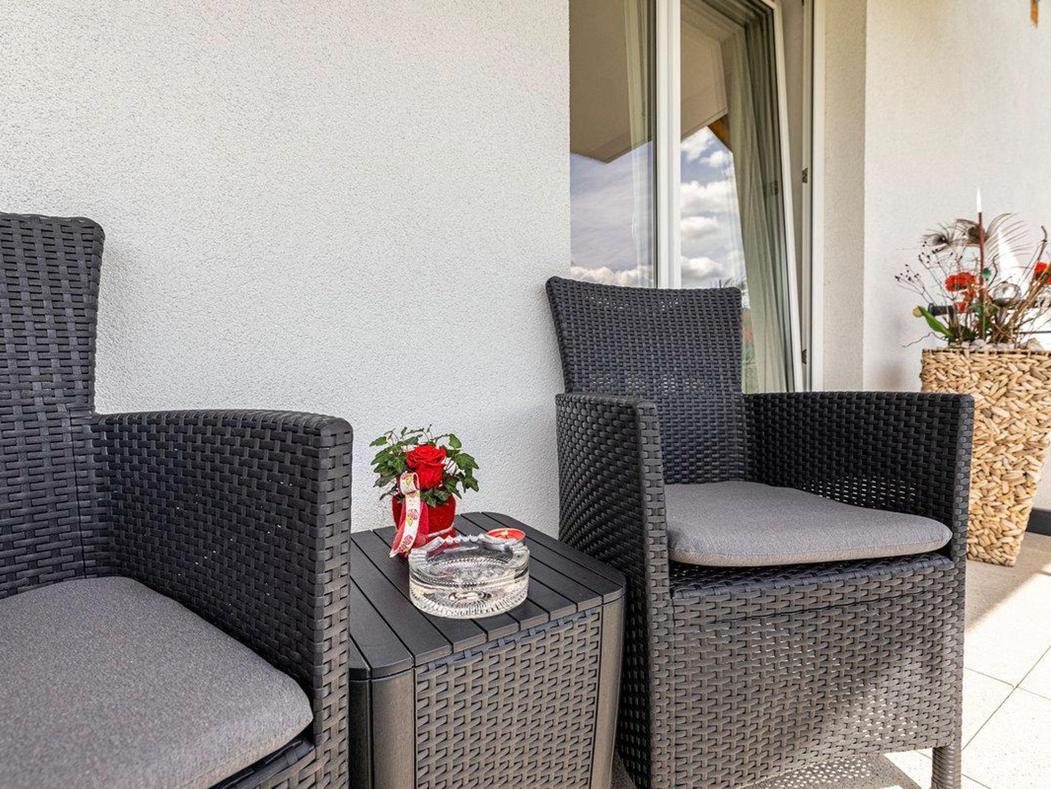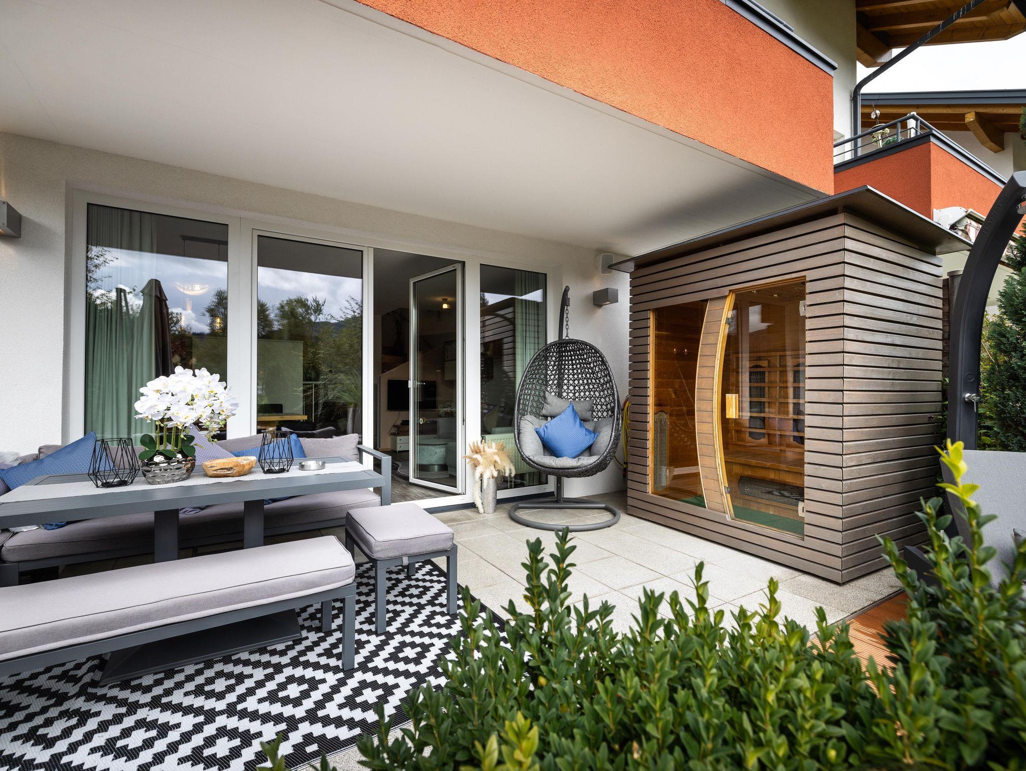 Maisonette Wohnung auf 75 m² über 2 Etagen | 2 getrennte Schlafzimmer, Bad (Badewanne/Dusche-Kombination) mit WC | Separates WC | Outdoor Infrarot Kabine | Terrasse, Garten, Balkon | Südseitig | privater Abstellraum