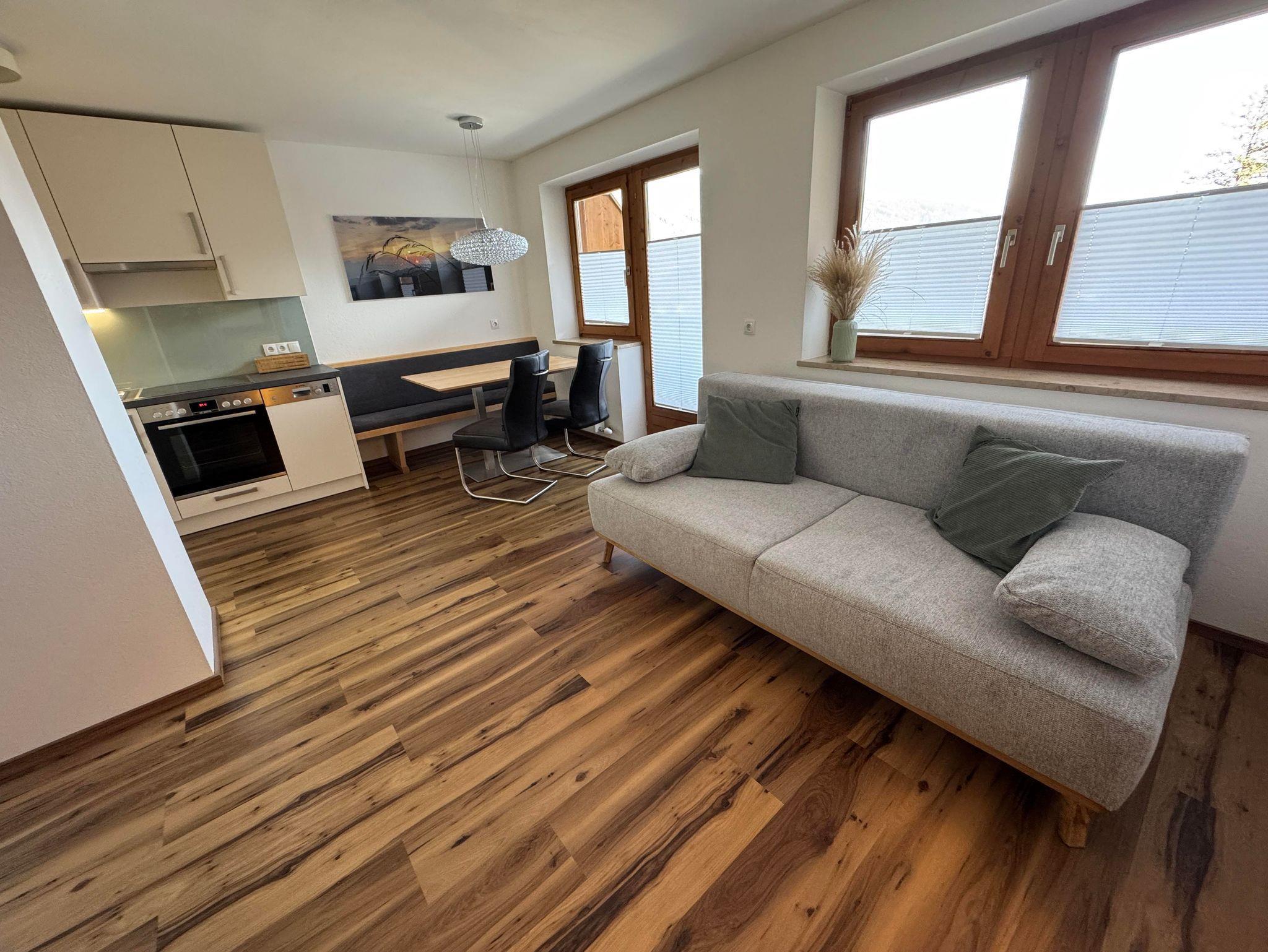 geräumiges Appartement | Wohn- und Essbereich mit Küchenzeile | gemütliches Schlafzimmer | Couch (Schlafmöglichkeit für 3. und 4. Person) | Balkon mit Blick auf das Dachsteingebirge