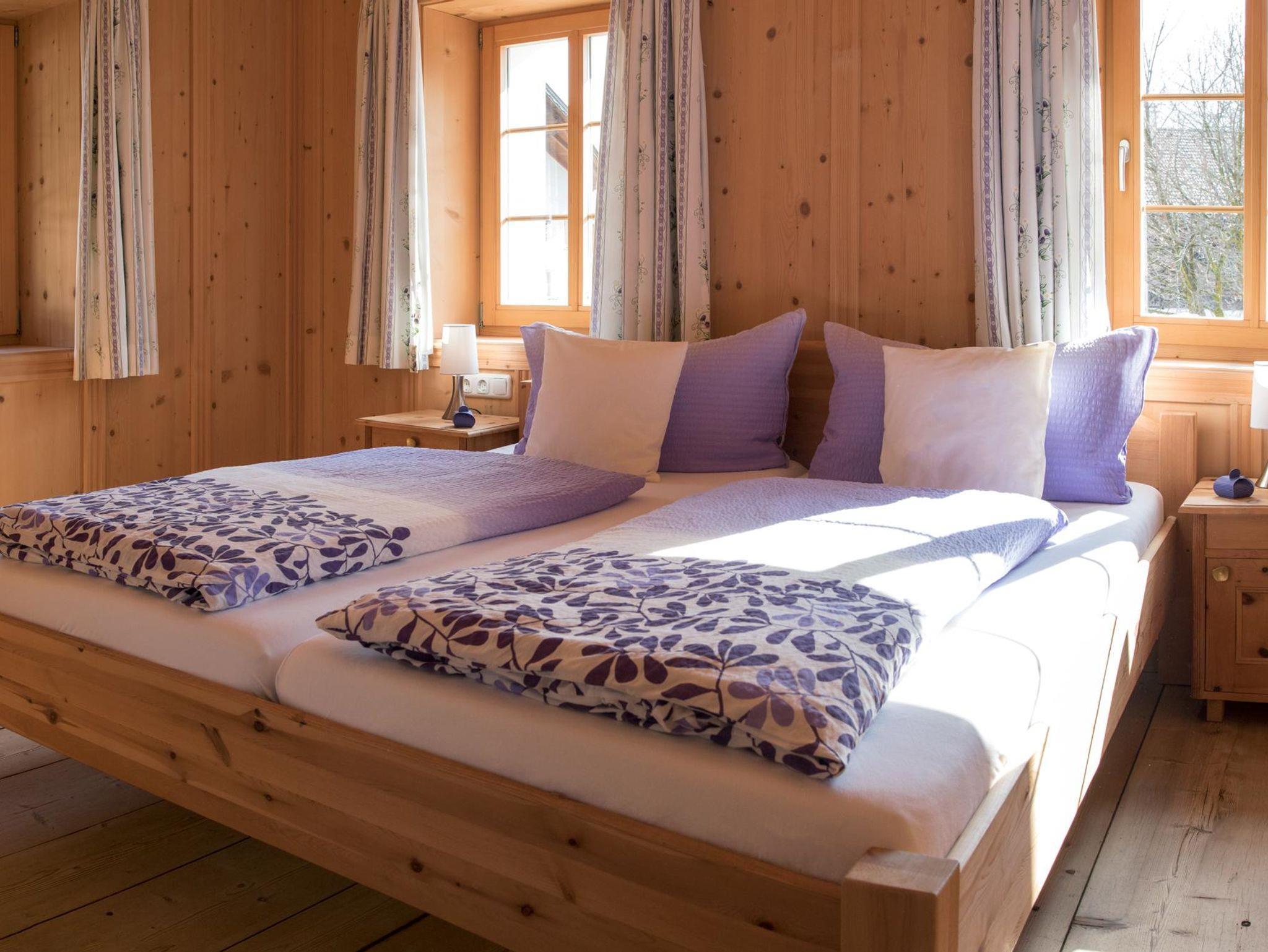 • Im Obergeschoss. Ein Schlafzimmer mit Doppelbett, Bad mit WC und Dusche. Originale Bauernstube mit integrierter Küche, orgineller Sitzecke, Essbereich und ausziehbarer Couch. Zugang zum südseitigen Balkon. Garten, Spielplatz kann mitgenutzt werden.