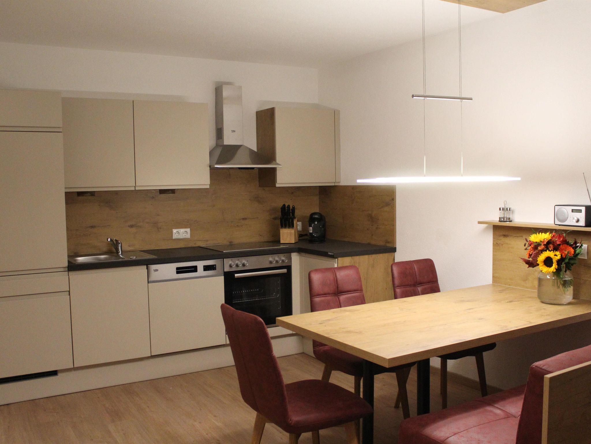 Neue Ferienwohnung Inntalblick für 4 Personen (2 Doppelbettzimmer und ein Schlafsofa) (Auf Anfrage können bis zu 6 Personen in dieser FW untergebracht werden) Unsere Küche ist mit Cerankochfeld, Dunstabzug, Backofen, Kühlschrank inkl. Gefrierfach, Wasserkoscher, Geschirrspüler, Kapselkaffeemaschine, Radio sowie mit allen notwenigen Kochutensilien ausgestattet. Ein Esstisch mit ausreichend Sitzmöglichkeiten lädt zum gemeinsamen Essen ein. Das Schlafsofa mit Flat TV im Wohn- Essbereich bietet zusätzlich Platz zum Entspannen. Zudem verfügen Sie über den Wohn- Essbereich einen Zugang zu Ihrer privaten Terrasse mit Gartenzugang. (Grillmöglichkeit vorhanden, Spielplatz vorhanden) Beide Schlafzimmer verfügen über ein großes Doppelbett mit Kleiderschrank. Zusätzlich befindet sich in einem der beiden Zimmer ein Stockbett (Bettwäsche vorhanden). Auf Anfrage wird selbstverständlich ein Babybett für Sie vorbereitet. Im Badezimmer verfügen Sie über eine Regentusche, Fön und ausreichend Handtücher. Das WC ist separat und vom Badezimmer abgetrennt (WC-Papier vorhanden). Weiters können Sie ihre Ski, Ski-Schuhe, Rodeln, Fahrräder ect. im Hauseigenen Skiraum (ebenerdiger Zugang) lagern. Natürlich können Sie auch kostenfrei unser WLAN/Wifi nutzen. Parkplätze befinden sich direkt vor dem Apartment.