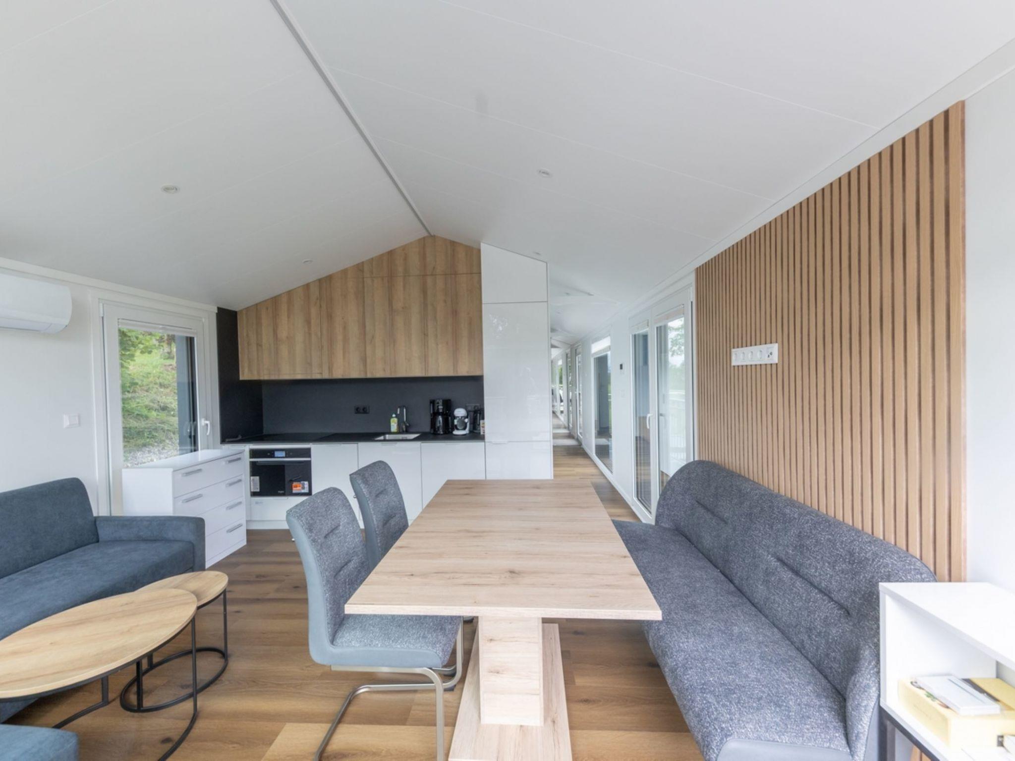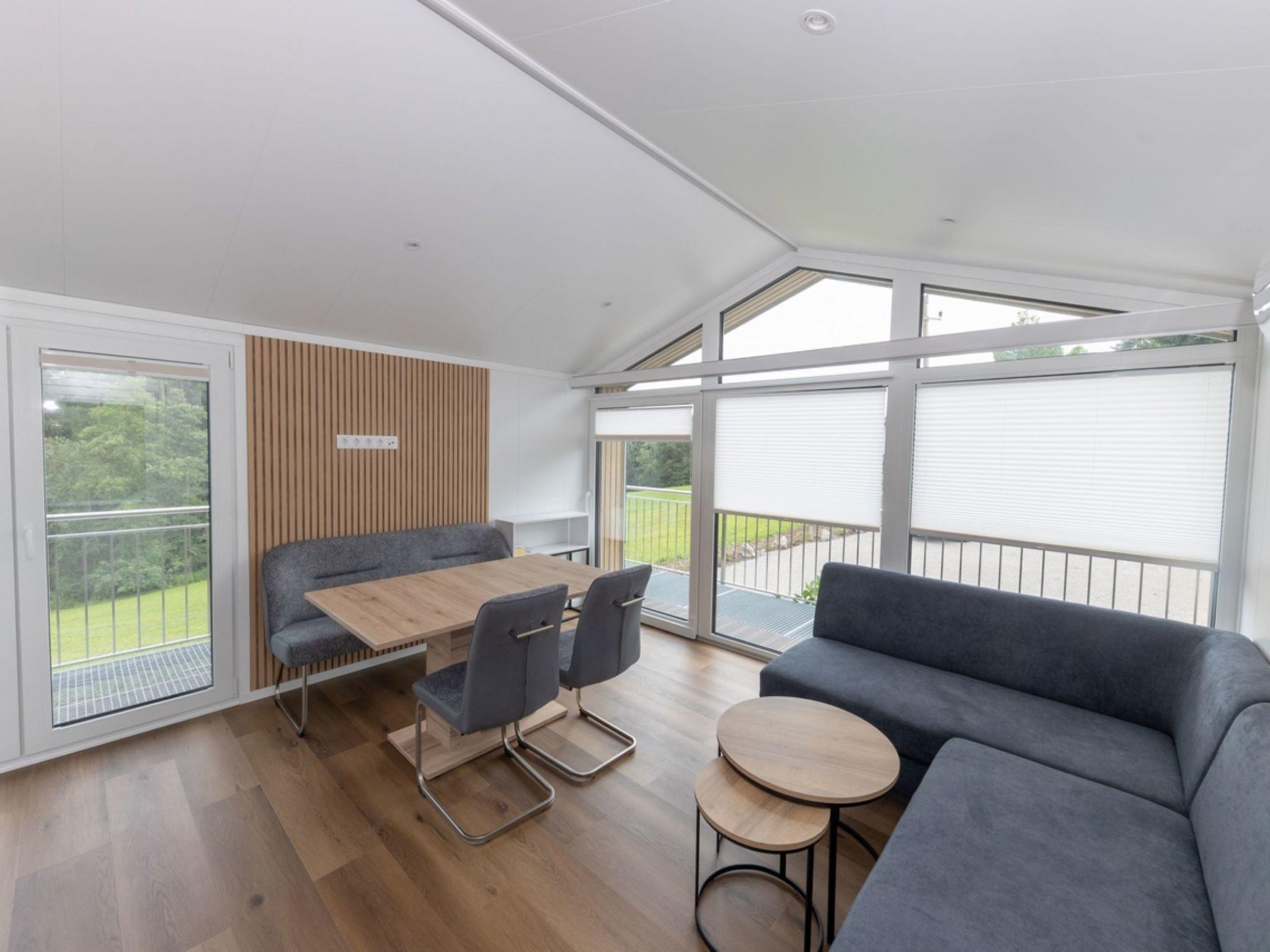 "Tiny Haus", 4-room house 60 m2. Modern and cosy furnishings: 1 double bedroom. 1 room with 2 beds. 1 room with 1 bed. Kitchen-/living room (oven, dishwasher, 4 induction hot plates, toaster, kettle, microwave, electric coffee machine) with dining table, 1 double sofabed (180 cm, length 200 cm), satellite TV. Shower/WC. Floor heating. Balcony. Balcony furniture. Beautiful view of the countryside. Facilities: Internet (WiFi, free). Please note: non-smokers only. 1 pet/ dog allowed. Smoke alarm.
