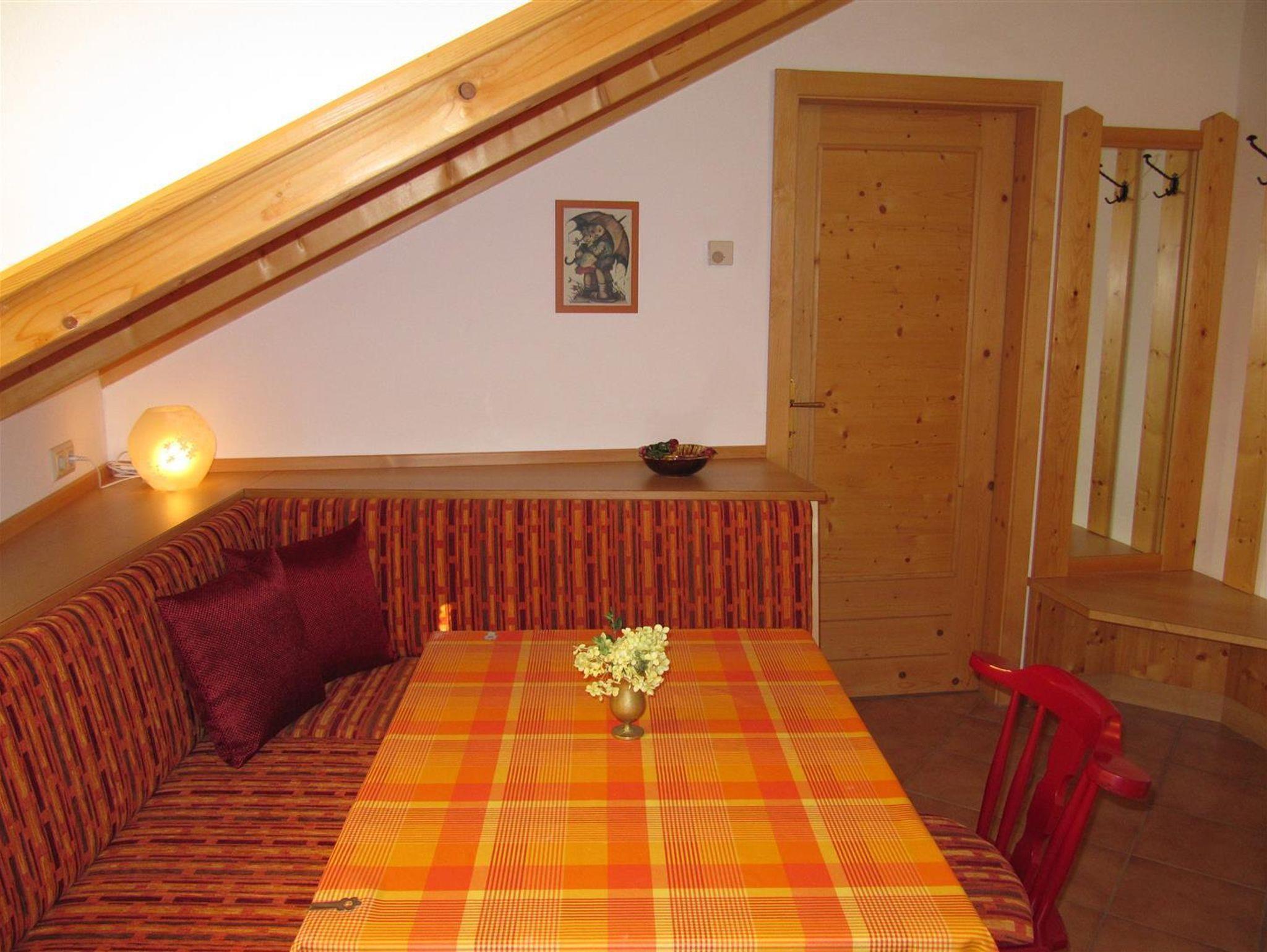 Kleine, feine Ferienwohnung mit Wohnküche und windgeschütztem Balkon nach Nordwest. Die Einrichtung ist in massivem Fichtenholz gehalten.