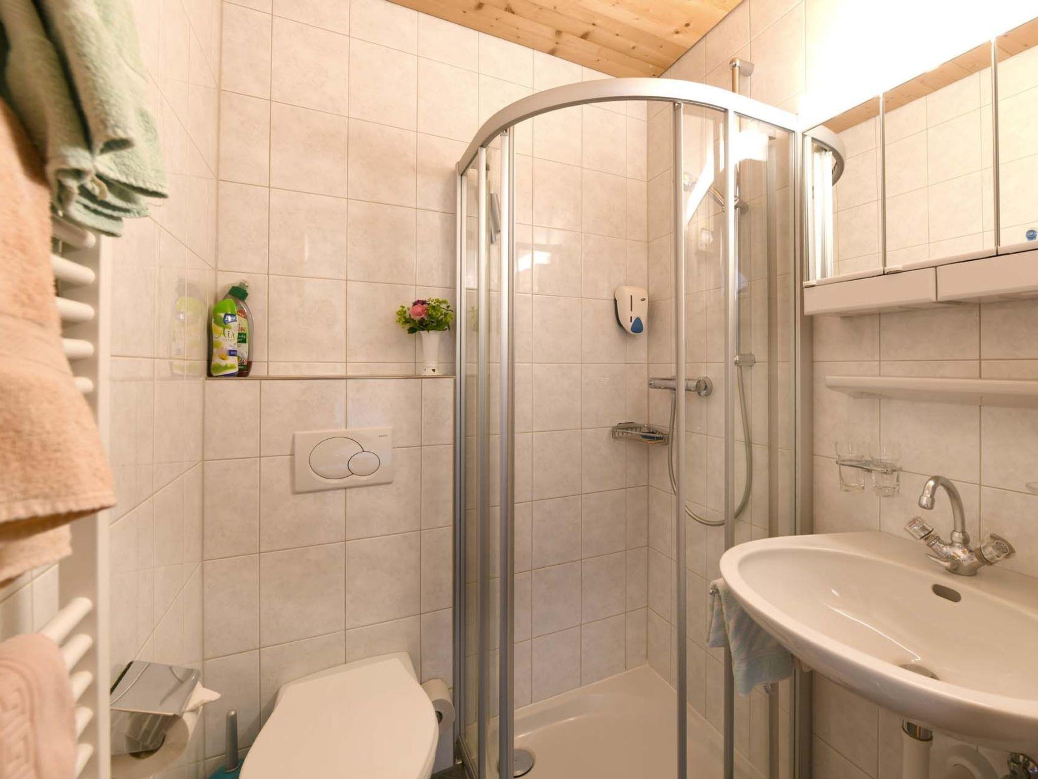 Du/Wc, Sat-TV. Kaffeemaschine, Wasserkocher und Kühlschrank sowie Geschirr und Besteck sind vorhanden.