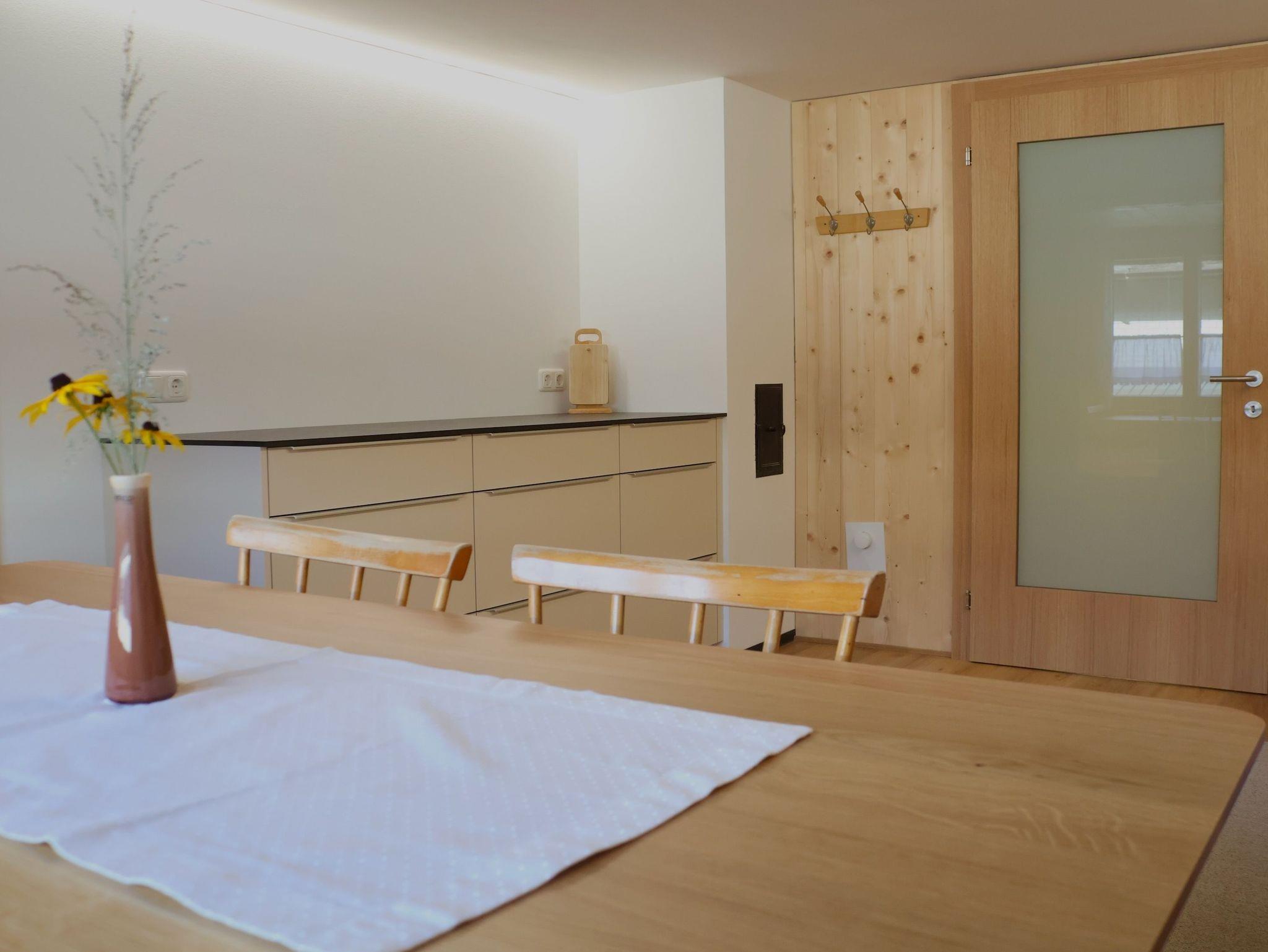 Unsere Ferienwohnung für bis zu 5 Personen befindet sich im Erdgeschoss eines Bregenzerwälderhauses.