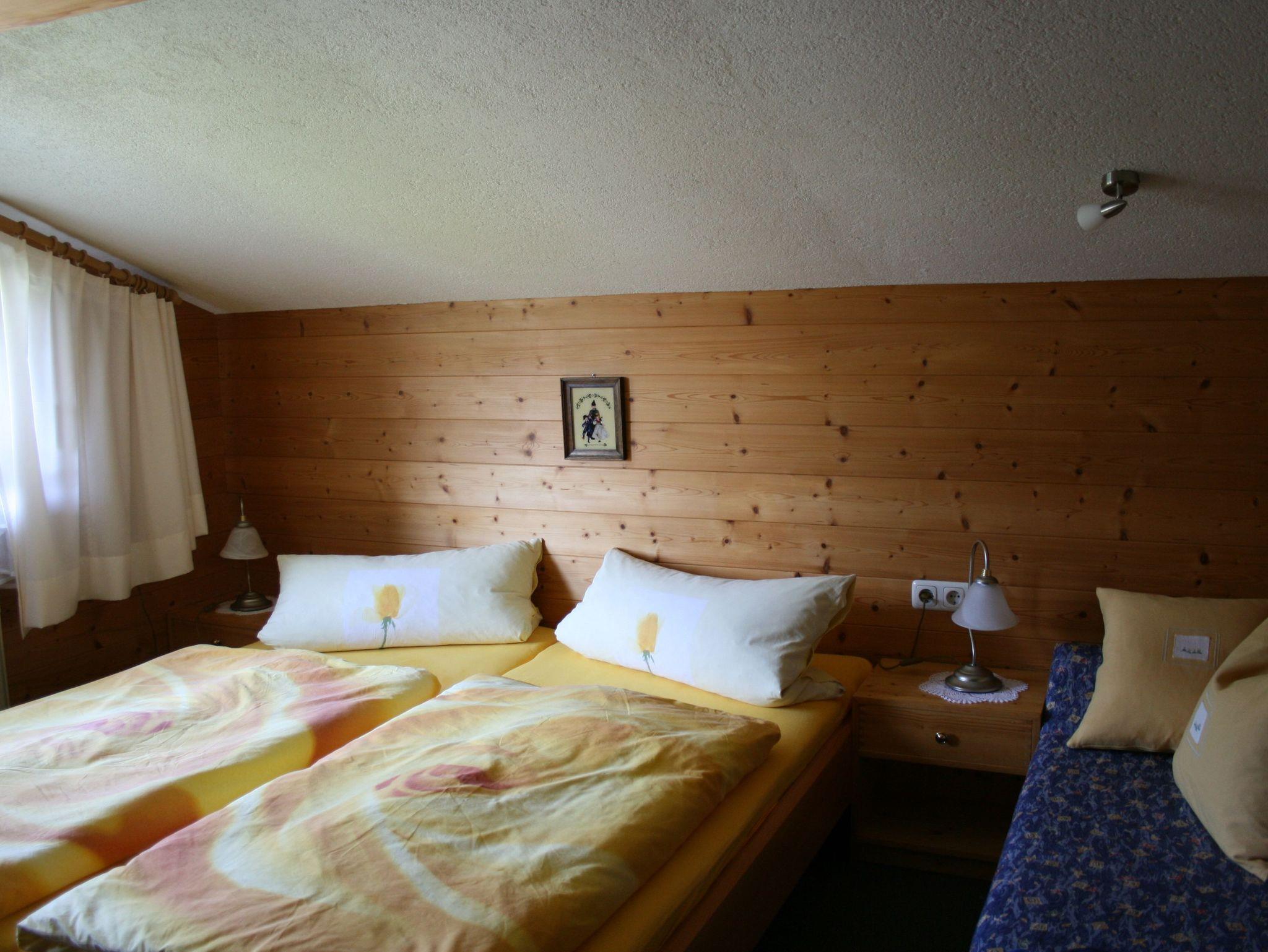 Die gemütliche Ferienwohnung ist in einem 30 jährigen Holzhaus im Dachgeschoß auf der Sonnseite des Talkessels von Au und Schoppernau. Vom südseitigen Balkon sehen sie in die Bergwelt des hinteren Bregenzerwaldes. In der Wohnung sind 3 Schlafzimmer, eine Wohnküche sowie einer Dusche mit WC. Jedes Schlafzimmer hat ein Doppelbett. Die Küche ist komplett eingerichtet. Bettwäsche und Handtücher sind vorhanden. Wintergäste können ihre Winterausrüstung in einem absperrbaren Raum versorgen. Für nasse Schuhe ist ein Schuhtrockner vorhanden.
