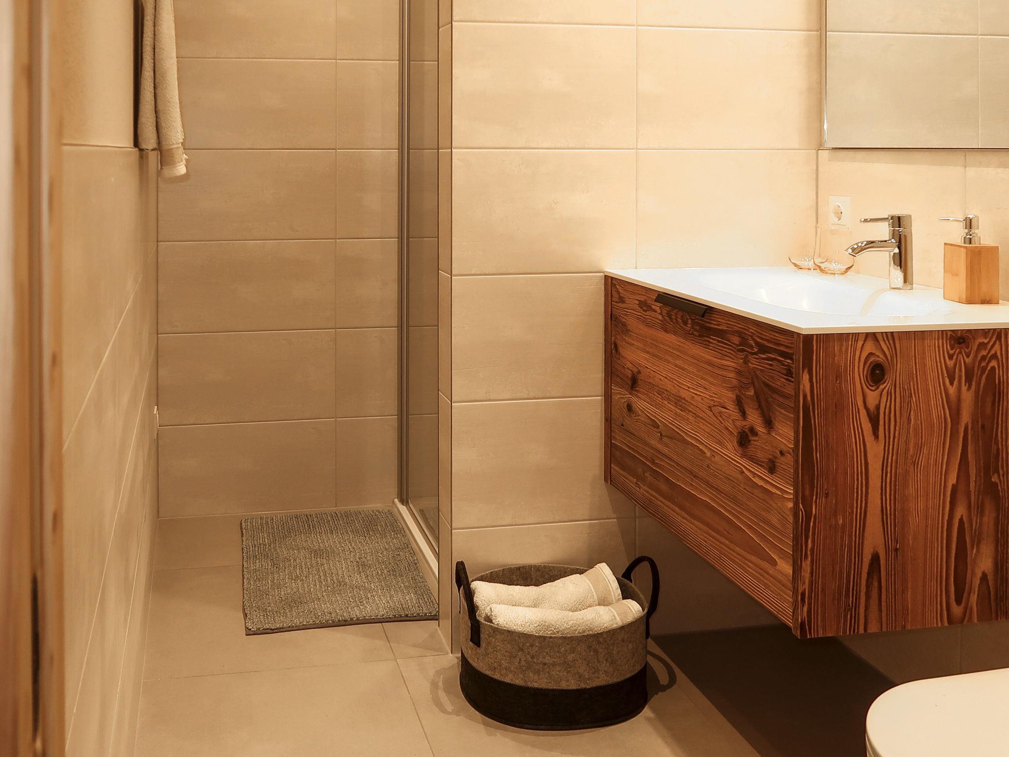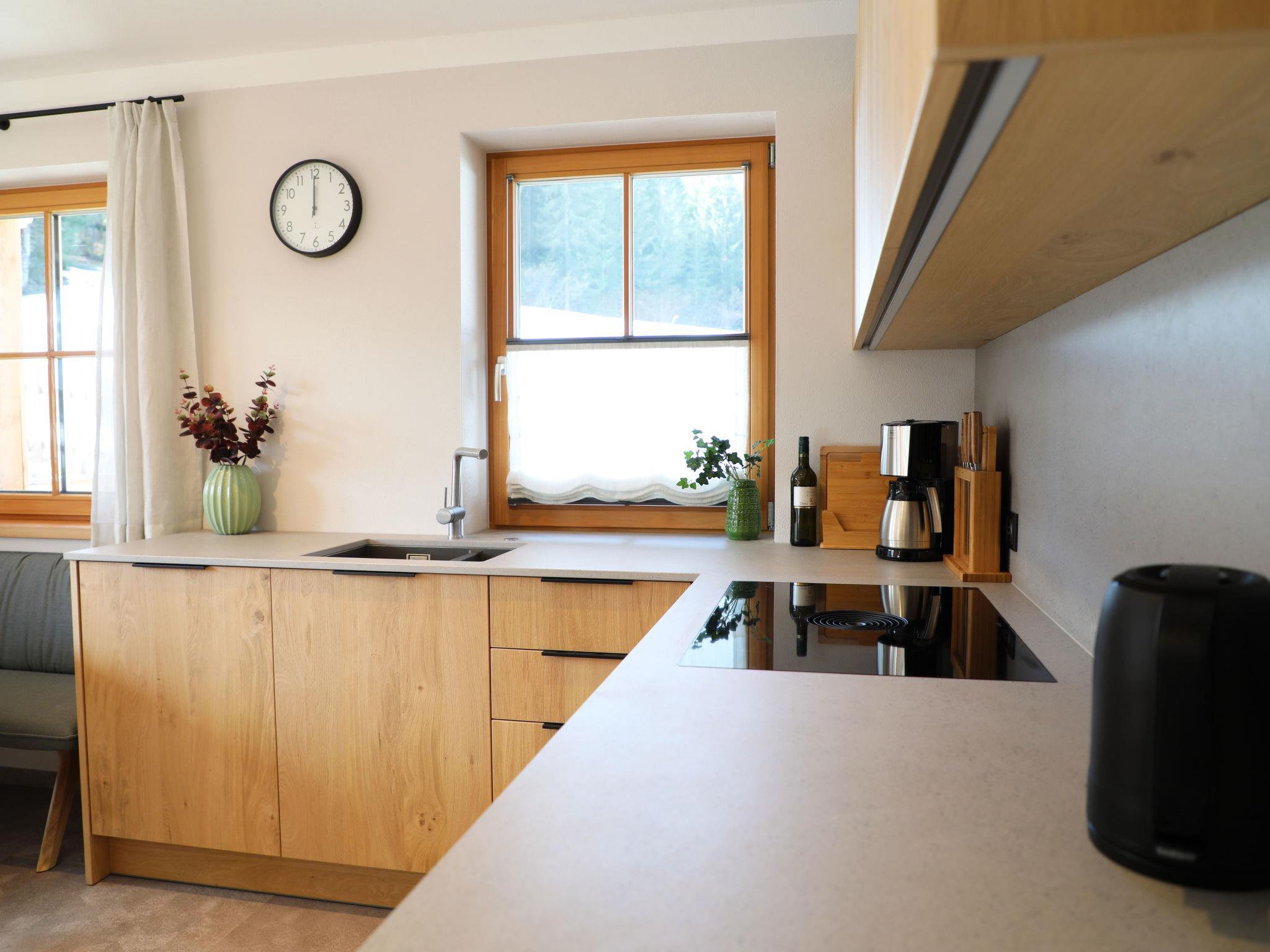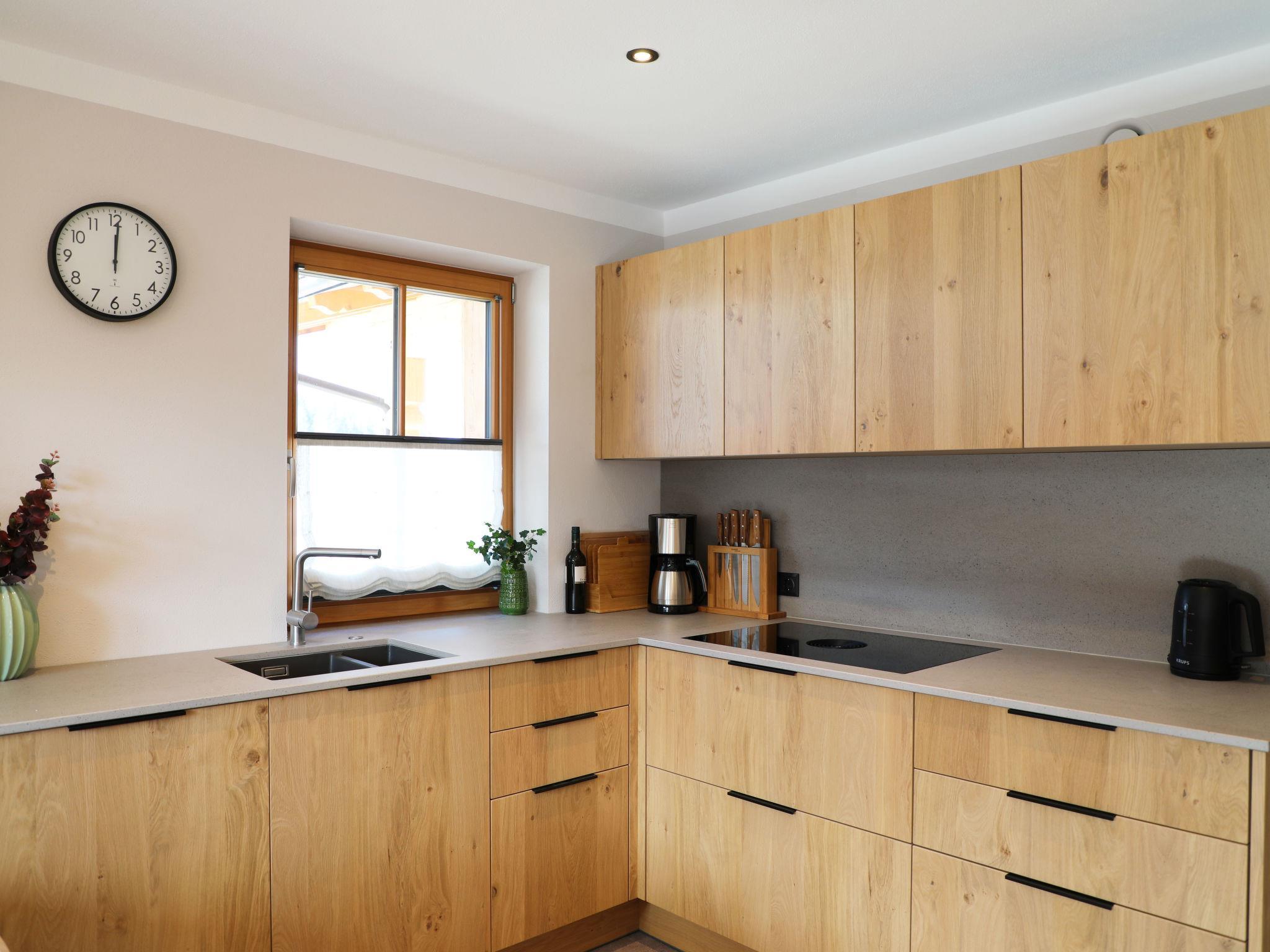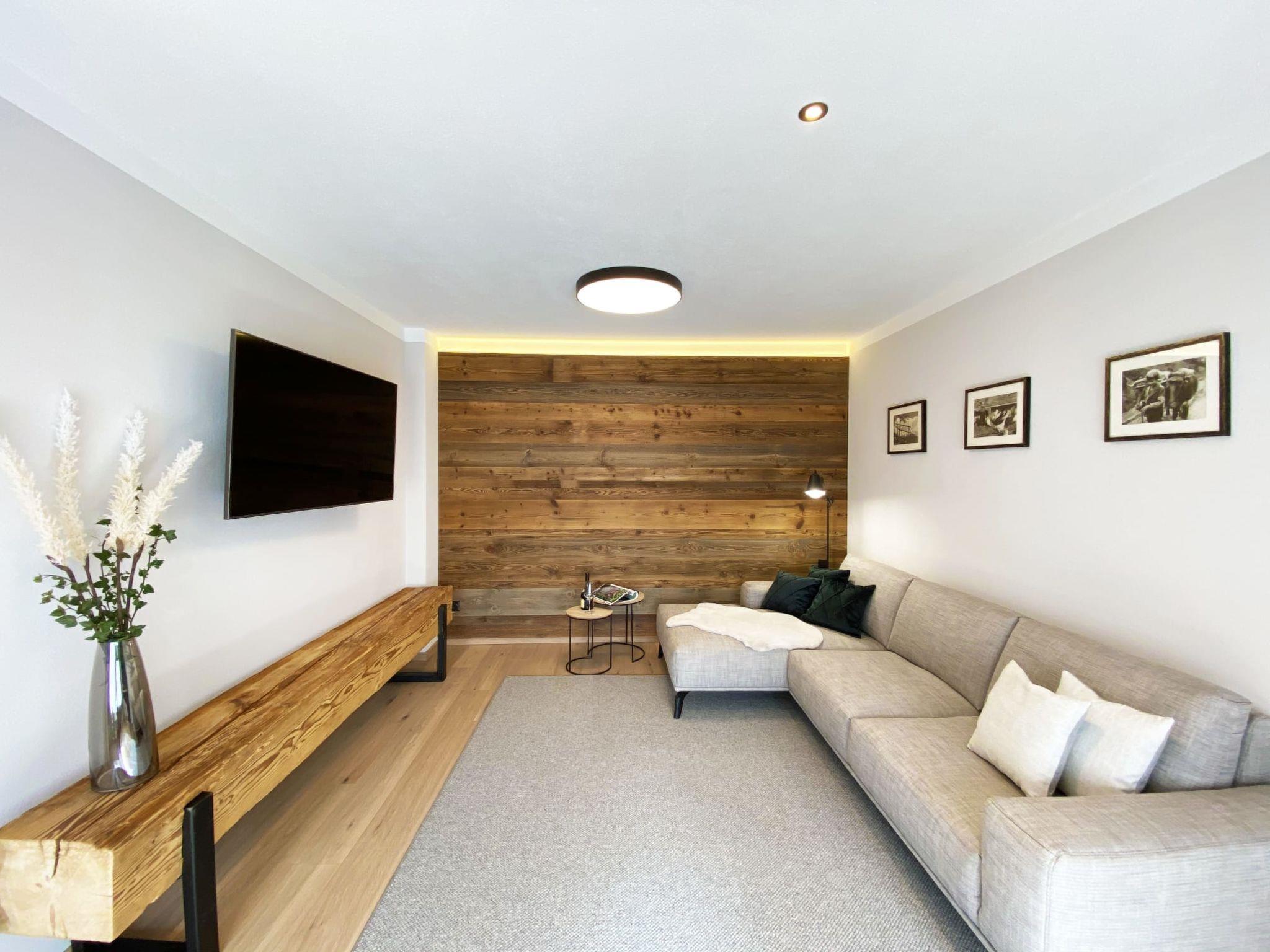 "Chalet Holzerjuwel", 7-room apartment 170 m2, on the ground floor. Bright, very comfortable and tasteful furnishings: entrance hall. 1 double bedroom with satellite TV. Exit to the terrace. 3 double bedrooms, each room with shower/WC and satellite TV. Office with 1 bed and satellite TV. Large kitchen-/living room (oven, dishwasher, 4 ceramic glass hob hotplates, toaster, kettle, electric coffee machine, Capsules for coffee machine (Nespresso)) with dining nook and satellite TV. Exit to the terrace. Shower/WC, sep. WC. Underfloor heating. Wooden floors. 2 large terraces 18 m2. Terrace furniture, electric barbecue, deck chairs (4), box-room. Marvellous panoramic view of the mountains and the valley. Facilities: children's high chair, baby cot, hair dryer. Internet (WiFi, free). Parking (4 cars). Please note: non-smokers only. Private entrance, fire extinguisher. No internal connecting door between the separated properties. Ideal accommodation for home office activities or for a "Workation" - thanks to the extra powerful business WLAN.
