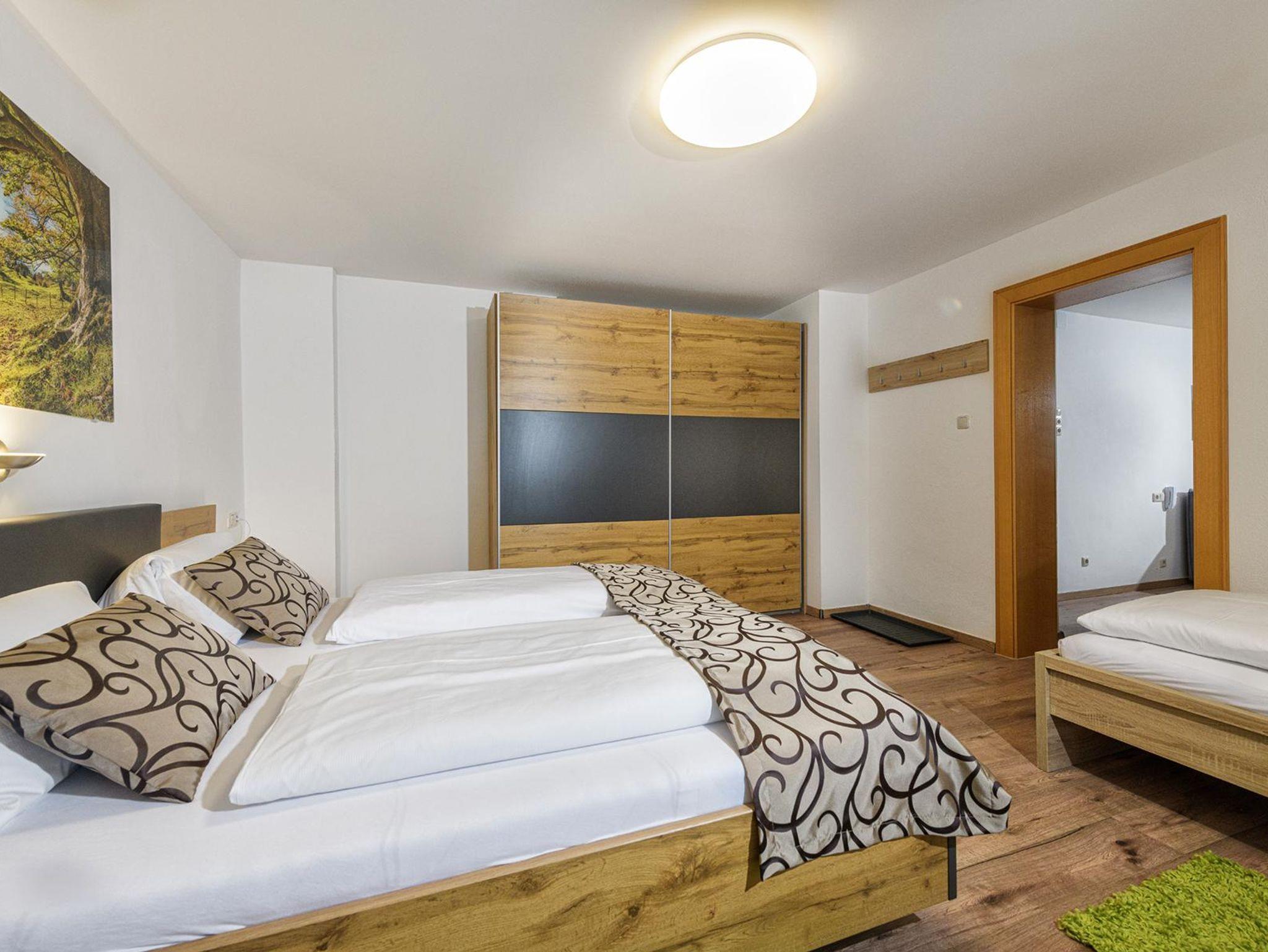 Entdecken Sie unser stilvolles 2-Raum Appartement, für 2-5 Personen ca. 55 qm. Das Wohnzimmer ist mit einem Boxspring-Doppelschlafsofa und einem Einzelbett ausgestattet. Das separate Schlafzimmer bietet ein großes Boxspring-Doppelbett.