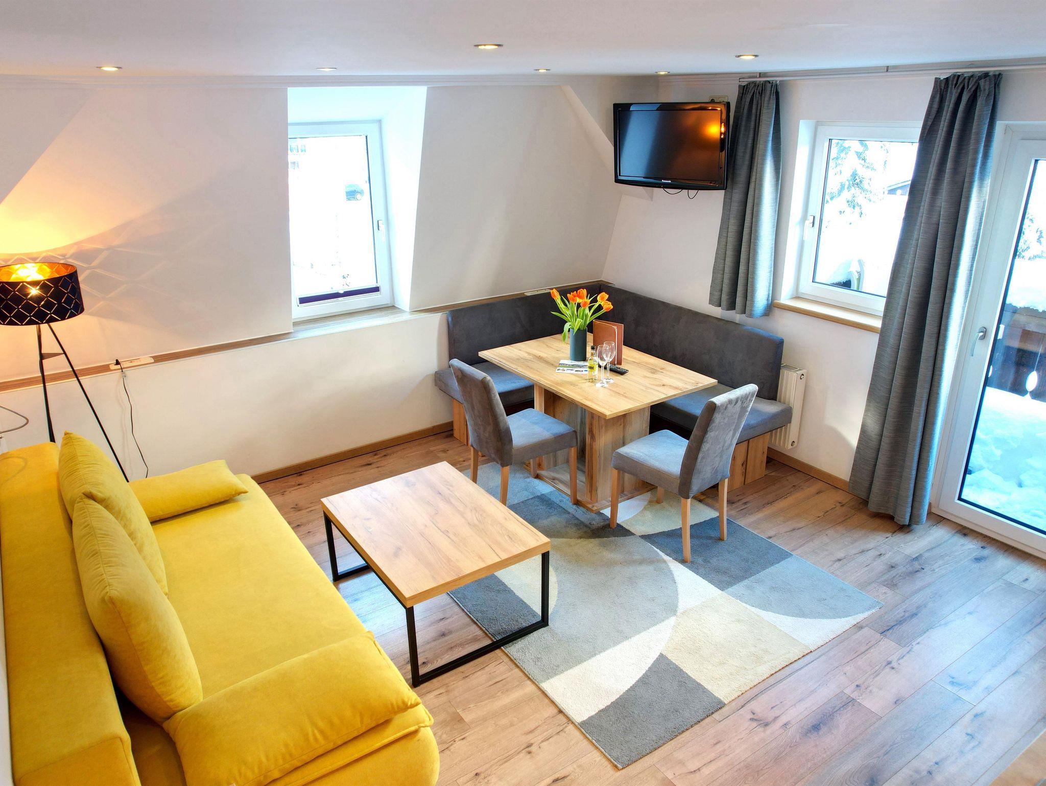 Wohnen für Familien Unsere geräumigen Apartments bieten Platz für Familien von 2 bis 5 Personen und genug Raum, um sich auch im Winterurlaub wie zuhause zu fühlen.