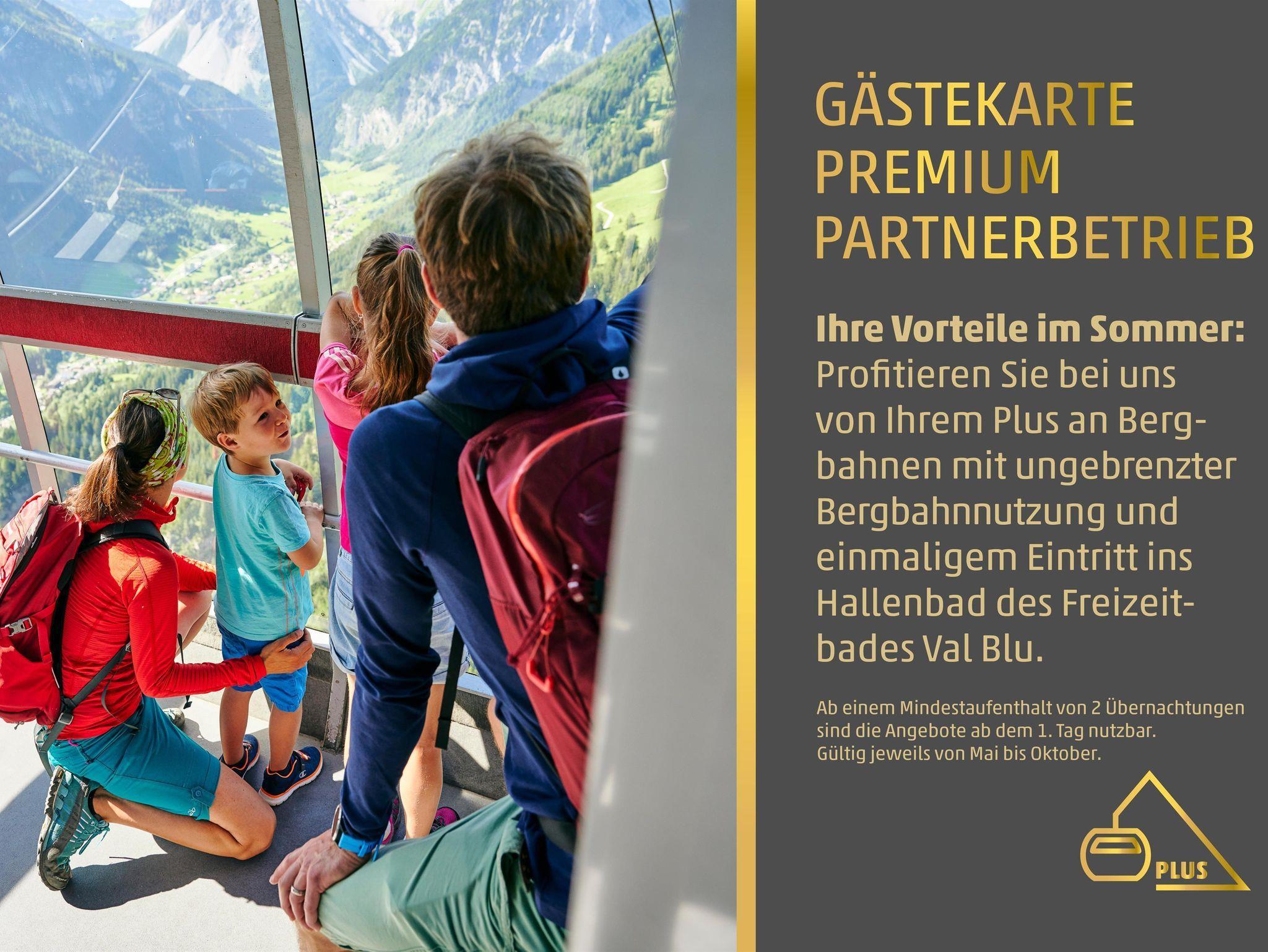 Die Wohnungen bietet jedem Gast ein gemütliches Zuhause, zentral gelegen und ideal zum Wandern, Klettern und Mountainbiken. Mit der Premium Gästekarte können sie kostenfrei Bus, Bahn und unbegrente Bergbahnfahrten genießen. Ausserdem erhalten sie einen kostenlosen Eintritt ins Hallen-und Freizeitbad Val Blu. Die Bushaltestelle befindet sich nur 5 Gehminuten vom Haus. Das wunderschöne Brandnertal ist in 10 bis 15 Minuten mit dem Auto oder Bus zu erreichen. Klostertal, Montafon, sowie Golm und Hochjoch sind ca. auch in 15 min. mit dem Auto zu erreichen, Gargellen, Silvretta Nova ca. in 25 min. und Lech/Zürs am Arlberg sind in ca. 30 min. zu erreichen. Die Bürser Schlucht ist auch nur ein paar Gehminuten vom Haus entfernt. Genießen sie die wunderschöne Gegend wie den Lünersee und den Muttersberg