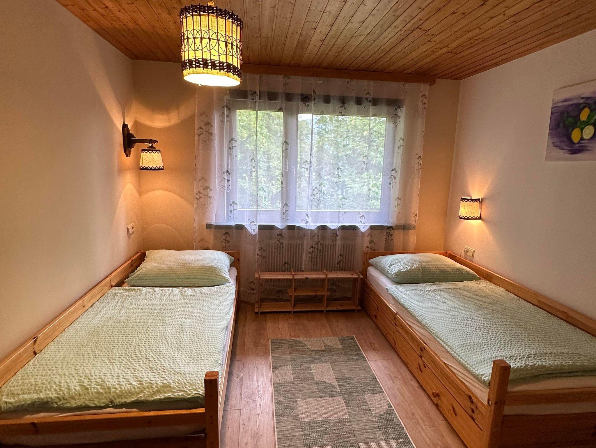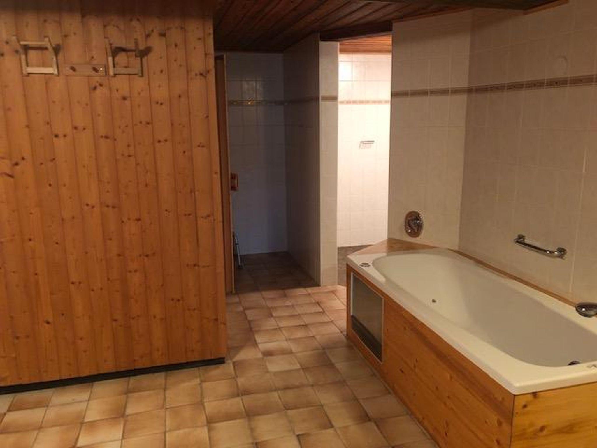 1 Doppelschlafzimmer plus ein Zweibettzimmer mit separaten Einzelbetten plus eine Ausziehcouch im Wohnzimmer, Badezimmer plus separates WC. Enspannen Sie zusätzlich im Untergeschoss nach einem Ski- oder Wandertag in unserer Sauna und im Whirlpool. Die Grünfläche vor dem Haus kann ebenfalls mitbenutzt werden. Zur Wohnung gehört auch ein Parkplatz vor dem Haus.