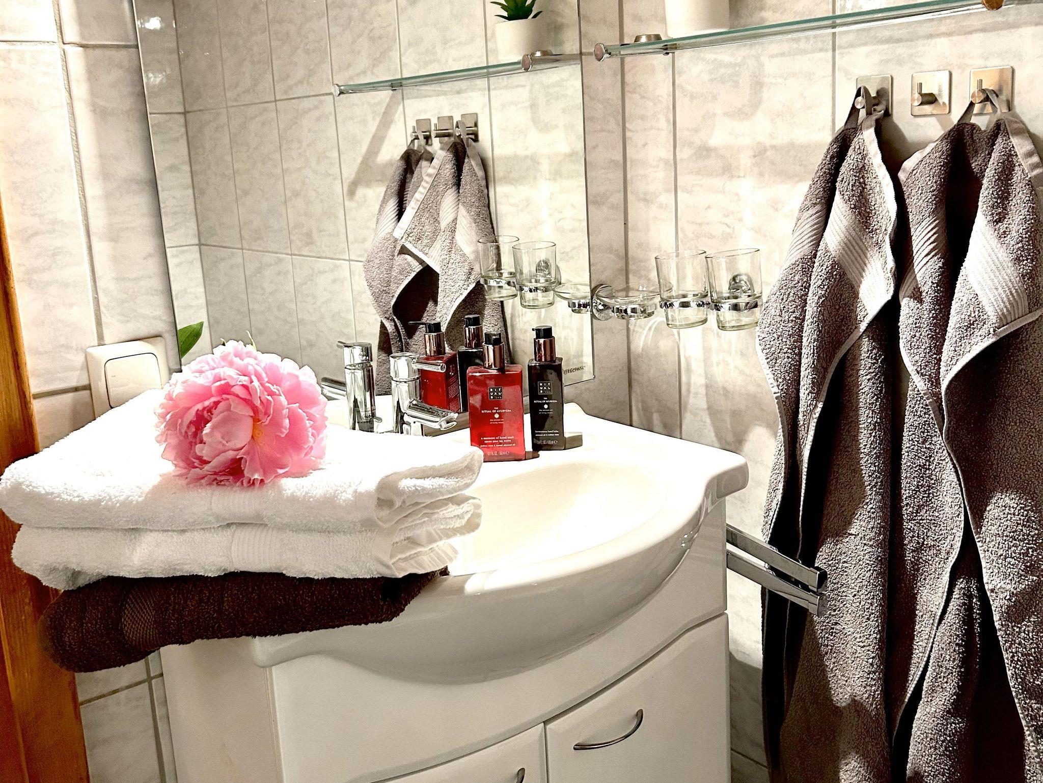 Das zweite Zimmer mit 2 Einzelbetten und einen zusätzlichen Bad befindet sich direkt neben der Ferienwohnung im 1 Stock