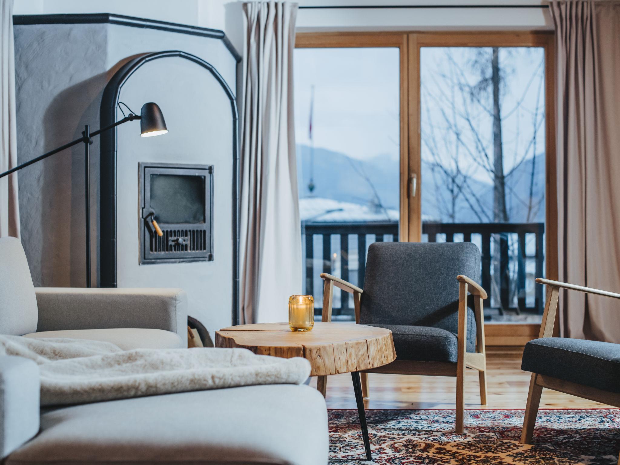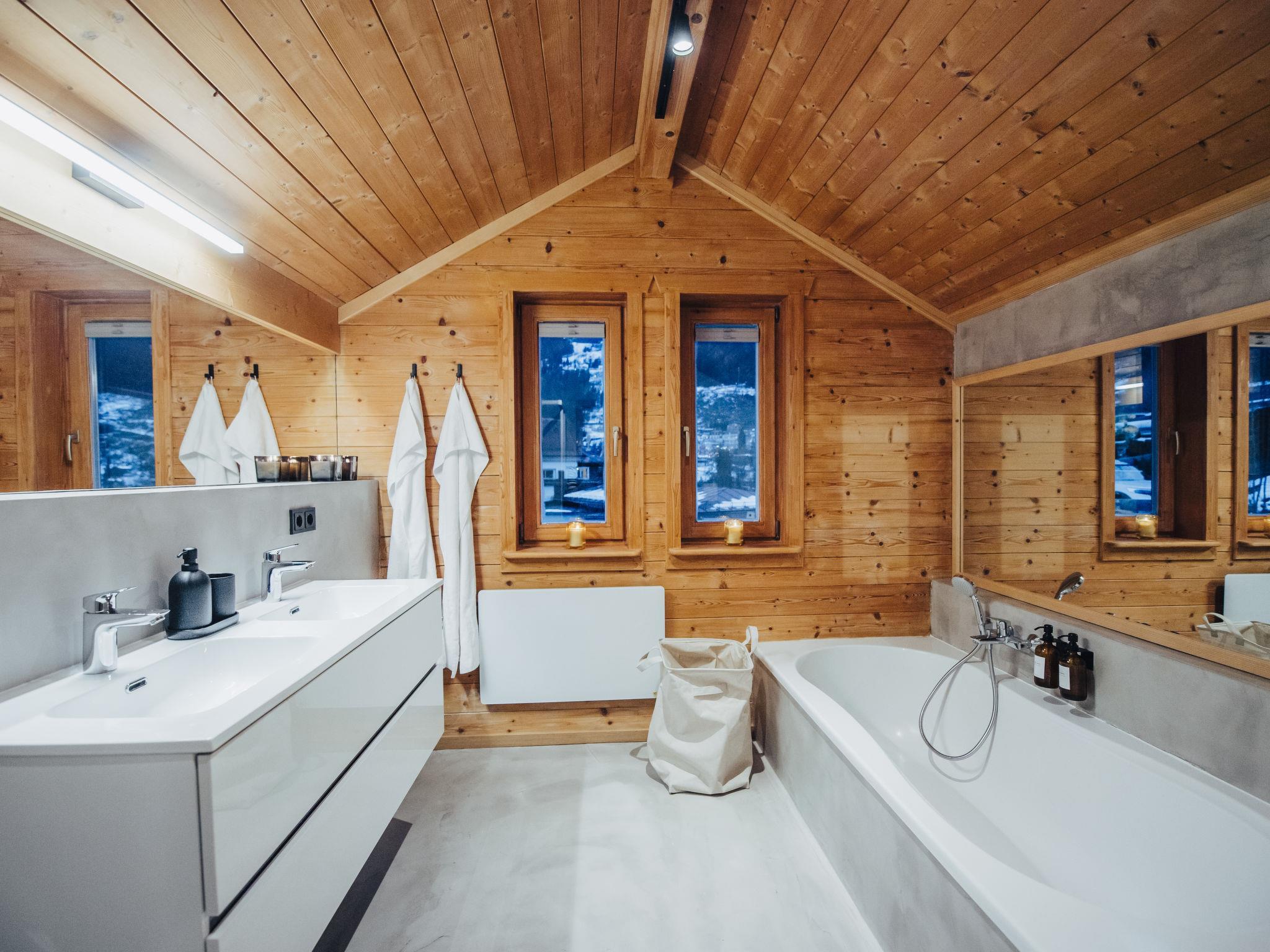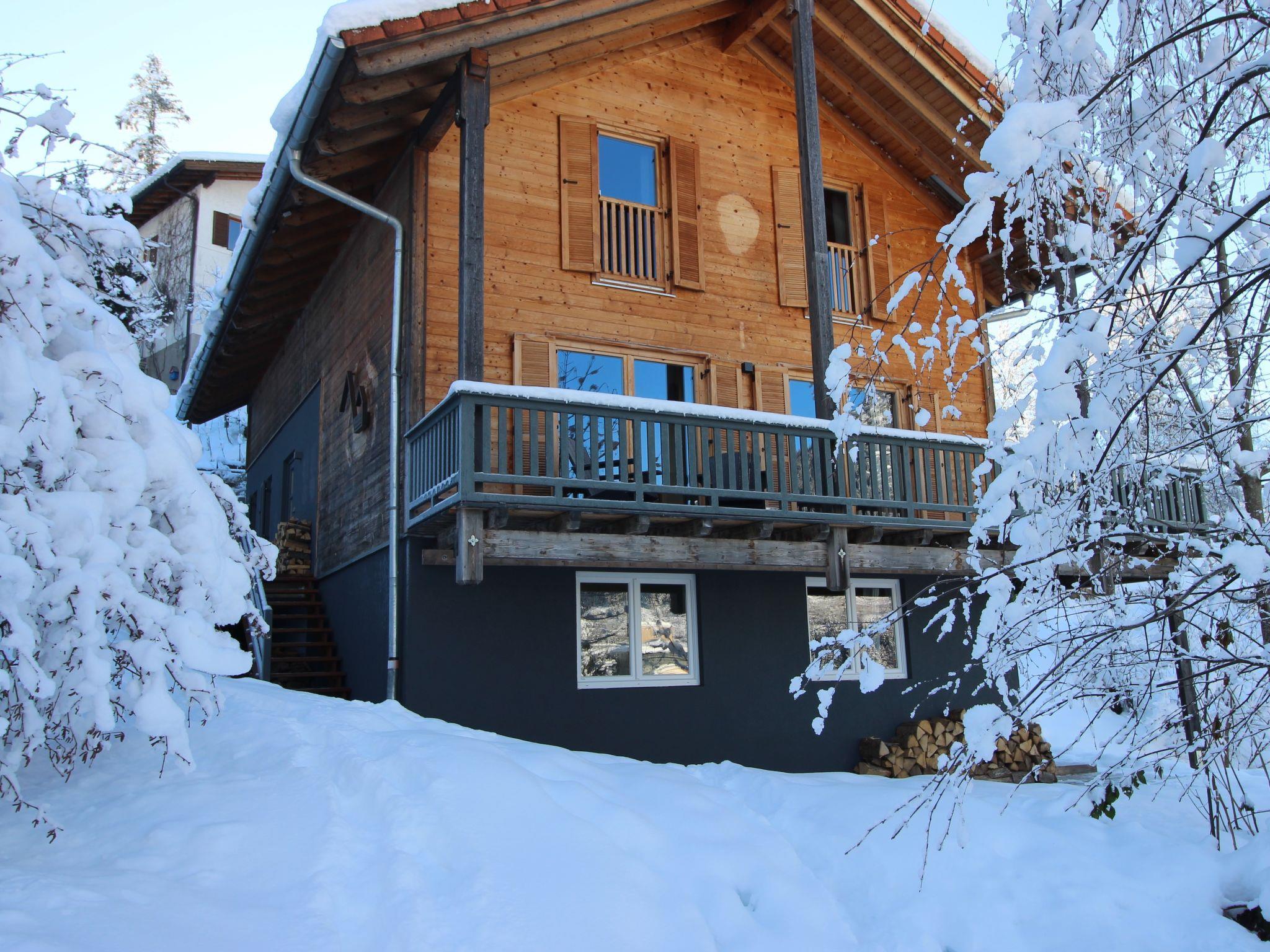 "Chalet 1018", 5-room chalet 110 m2 on 2 levels. Fully renovated in 2022, very beautiful and modern furnishings: entrance hall with separate WC. Living/dining room with dining table and cable TV (flat screen), tiled stove. Exit to the terrace. Large office. Large kitchen-/living room (4 hot plates, oven, dishwasher, 4 ceramic glass hob hotplates, toaster, kettle, microwave, freezer, electric coffee machine). Upper floor: 3 double bedrooms. Shower/WC, bath/shower/WC. Electric heating. Parquet floors. Terrace. Terrace furniture, balcony furniture, deck chairs. Beautiful view of the mountains and the forest. Facilities: washing machine, dryer, hair dryer. Internet (WiFi, free). Please note: non-smokers only. Smoke alarm, fire extinguisher. 50403-000483-2023