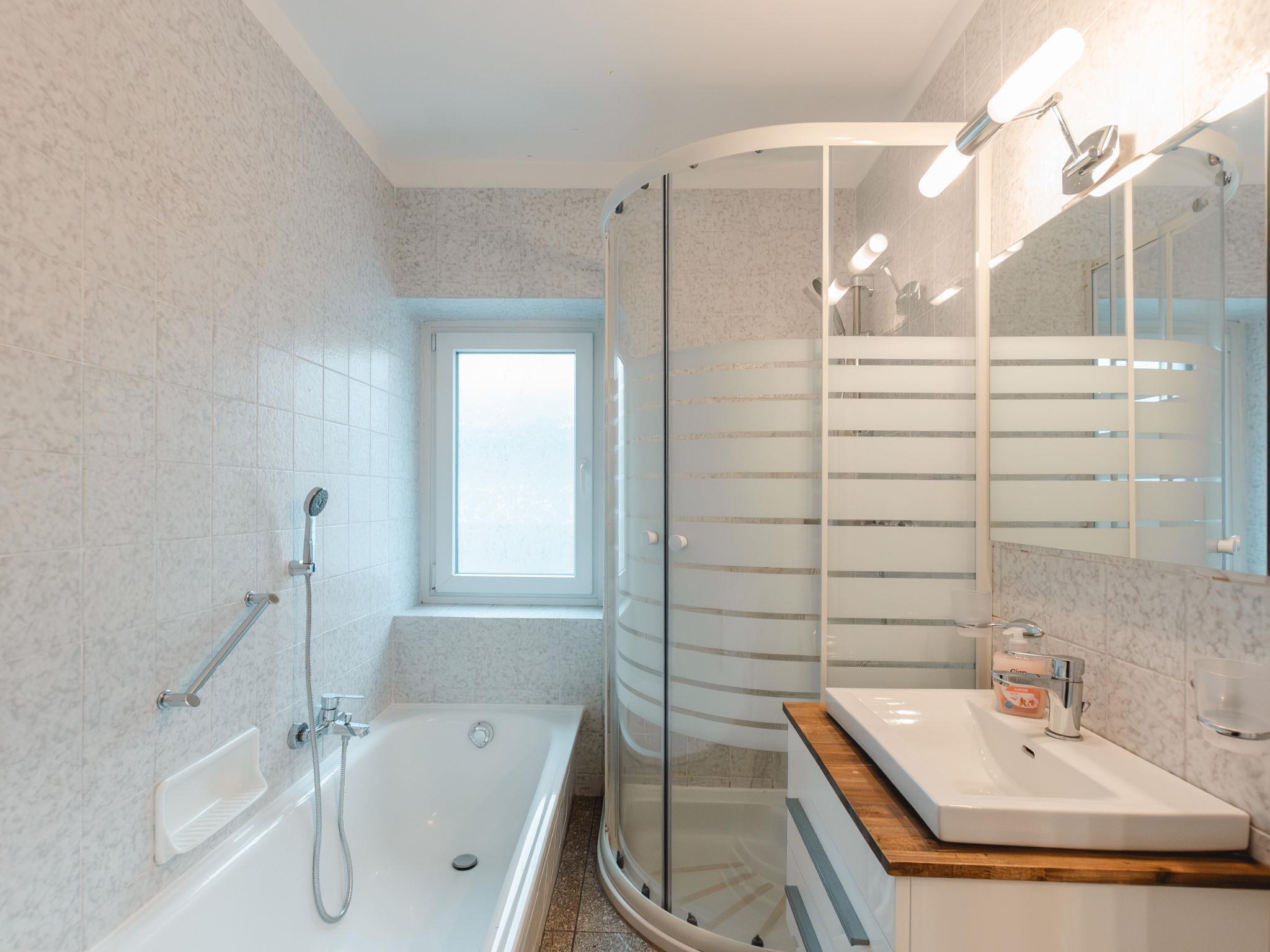 "Terrace Garden Retreat", 3-room apartment 67 m2, on the ground floor. Spacious and bright, fully renovated in 2013, modern and cosy furnishings: entrance hall. Living/dining room with 1 double sofabed (1 x 150 cm, length 200 cm), dining table and satellite TV (flat screen). Exit to the garden, to the terrace. 1 double bedroom with 1 french bed (160 cm, length 200 cm). 1 room with 2 beds. Open kitchen (oven, dishwasher, 4 ceramic glass hob hotplates, toaster, kettle, microwave, electric coffee machine) with small bar. Bath/shower/WC. Parquet floors. Terrace 15 m2, lawn 20 m2. Terrace furniture. Marvellous view of the mountains and the countryside. Facilities: washing machine. Internet (WiFi, free). Please note: suitable for families. Non-smokers only, non-smoking house. 1 pet/ dog allowed. Smoke alarm. Attention: infants and babies, count as people and can not be welcomed free of charge. 50403-000215-2020