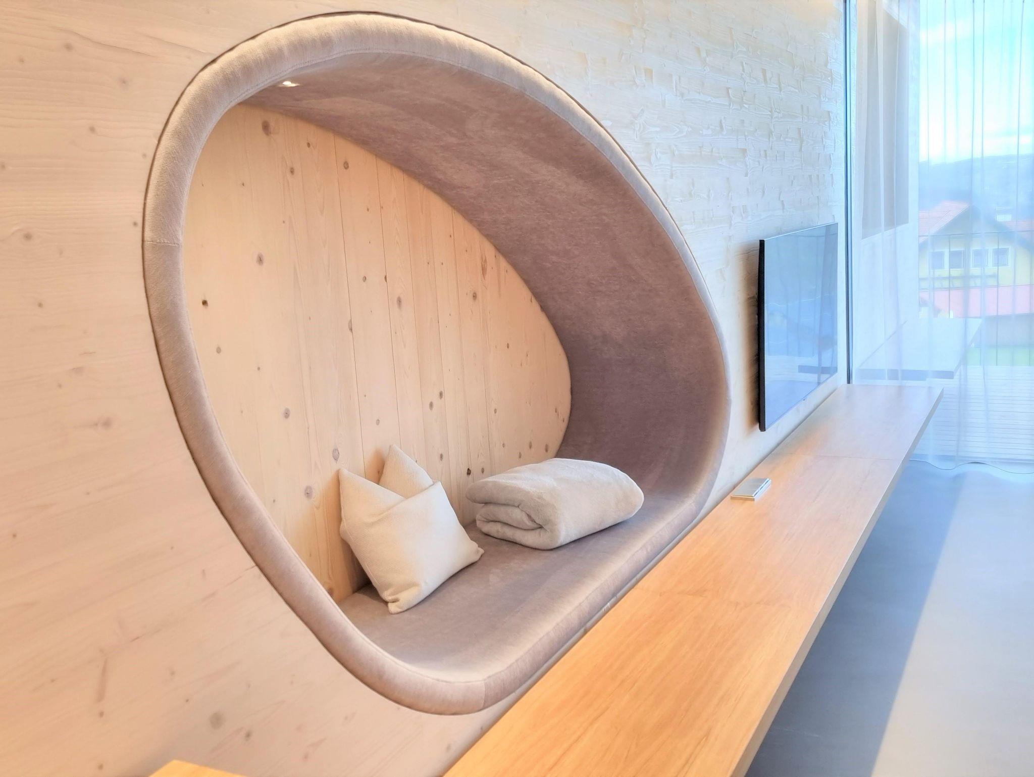 Ein atemberaubender Weitblick über die sanften Hügel des Vulkanlands, eine sanfte Brise streicht über Ihr Gesicht und die sanfte Abendröte taucht die Natur rundum in strahlendes Licht – diese Lodge weckt mit Sicherheit die Sanftmut in Ihnen. Die sanfte Formsprache des Interior unterstreicht dieses wohlige Gefühl.