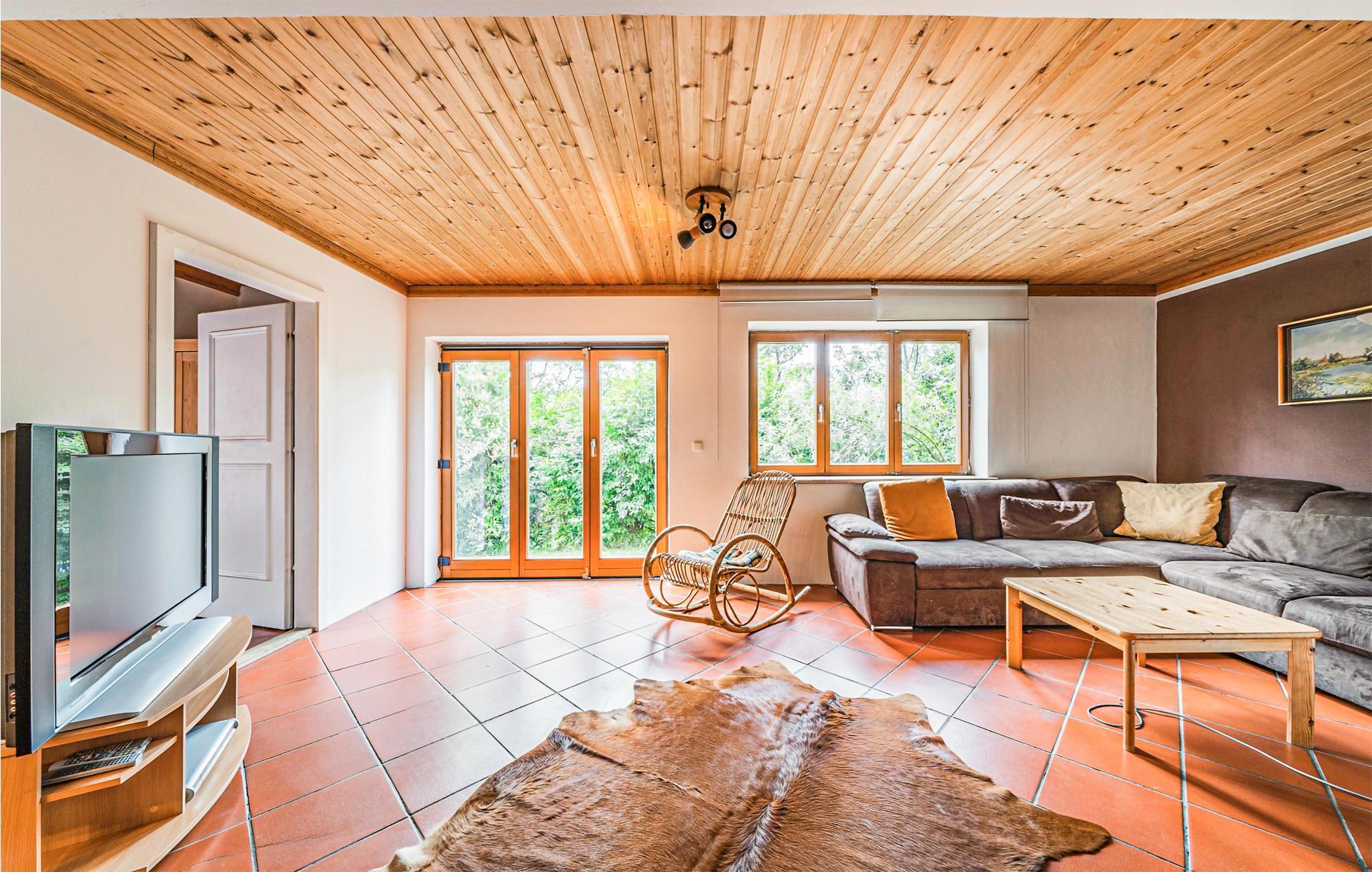 Stort, rustikt feriehus med brændeovn og udsigt til de smukke omgivelser.