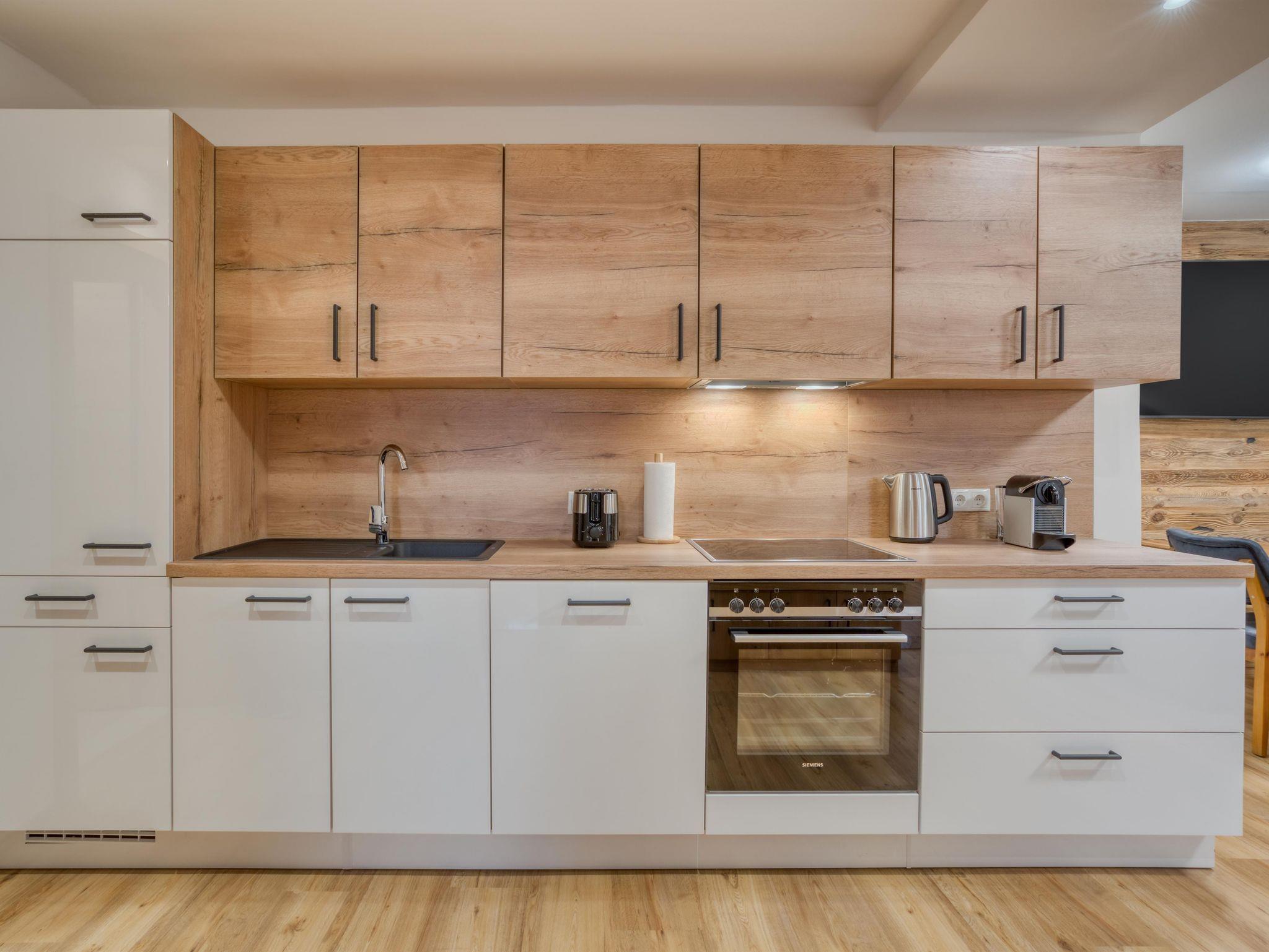 Das Apartment 3 ist Dein zu Hause auf Zeit im malerischen Bad Häring. Großzügige 60m² warten darauf von dir bewohnt zu werden. Das Apartment 1 überstreckt sich über zwei Etagen. Im Erdgeschoß befinden sich insgesamt zwei Schlafzimmer. Eines der Schlafzimmer verfügt über ein Doppelbett während im anderen Schlafzimmer ein Stockbett sowie ein Einzelbett vorzufinden sind. Das Doppelzimmer ist dabei sehr gemütlich und besonders, da Altholzelemente liebevoll an der Wand positioniert wurden. Neben den beiden Schlafzimmern befindet sich im Erdgeschoß zudem eine separate Toilette. Der erste Stock kann über eine schöne, beleuchtete Treppe erreicht werden. Oben, im ersten Stock angekommen, wartet das Highlight der Wohnung auf Dich: es ist der stilvolle Wohn- und Essbereich. Die Küchenzeile lädt zu Kochabenden aller Art ein und die zuvor zubereiteten Speisen können dann auf der gemütlichen Eckbank verzehrt werden. Weiters verfügt der Wohnraum über eine komfortable Couch auf welcher man entspannen und auf dem großen Smart-TV fernsehen kann. Einfach zurücklehnen und das herrliche Ambiente genießen, eine warme Dusche im angrenzenden Badezimmer nehmen oder auf dem ebenfalls angrenzenden Balkon die letzten Sonnenstrahlen des Tages einfangen. Das alles ist möglich in Deiner Natur Residenz Bad Häring. Das - und noch vieles mehr - also nichts wie los und ab in die Berge Tirols!