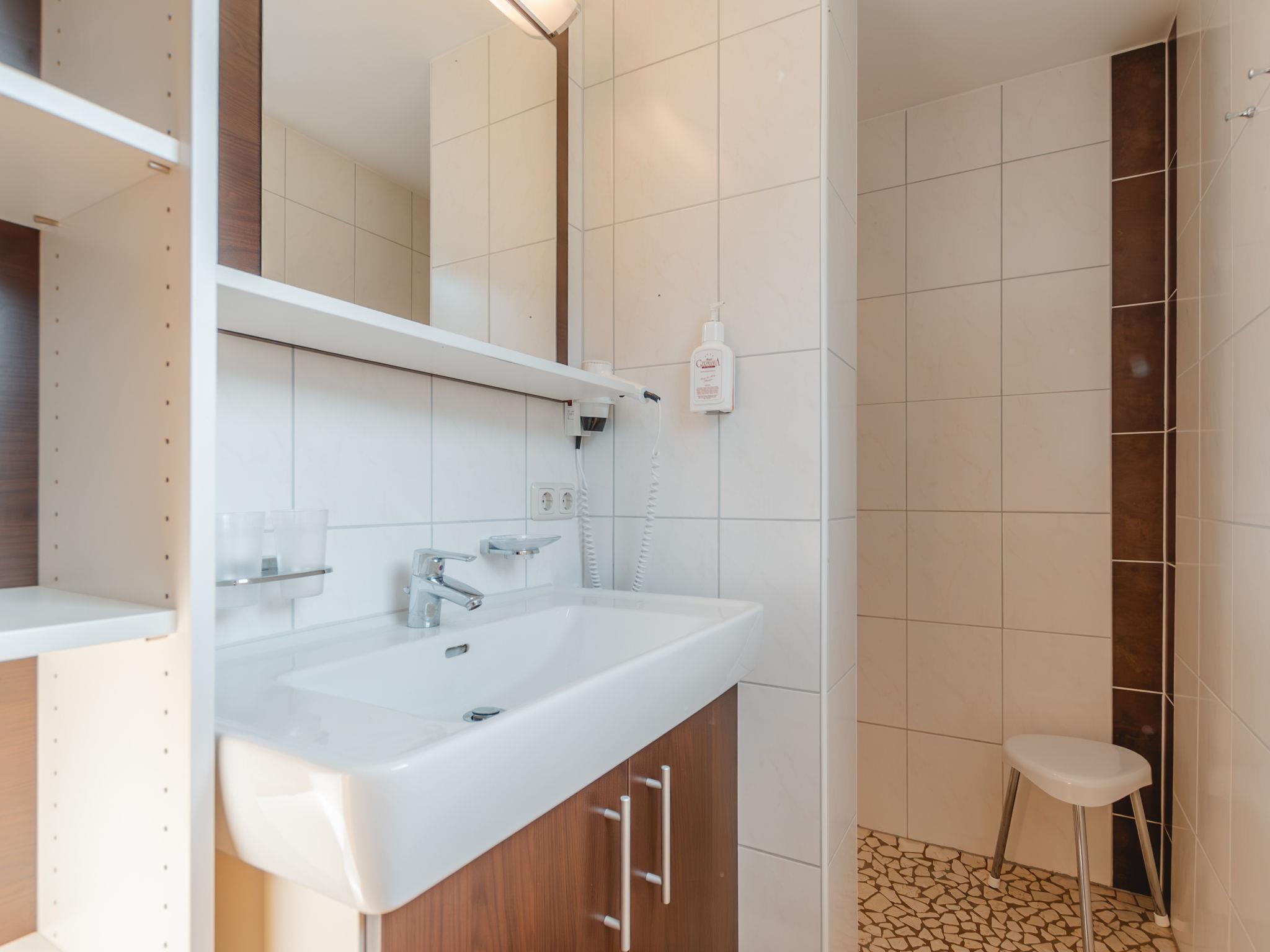 "Rose", 1-room apartment 35 m2 on 3rd floor. Bright, very comfortable and modern furnishings: living/sleeping room with 1 sofabed, 1 double bed, dining nook and cable TV (flat screen). Exit to the balcony. Open kitchen (oven, 4 ceramic glass hob hotplates, toaster, kettle, microwave, electric coffee machine, Capsules for coffee machine (Tschibo)). Shower, sep. WC. Electric heating. Carpet. Balcony 11 m2. Balcony furniture, deck chairs (2). Marvellous panoramic view of the mountains and the garden. Facilities: hair dryer. Internet (WiFi, free). Garage space n 300. Please note: suitable for families. Non-smokers only. Smoke alarm, fire extinguisher. 2 children up to 15 years possible on request. 50402-000675-2020