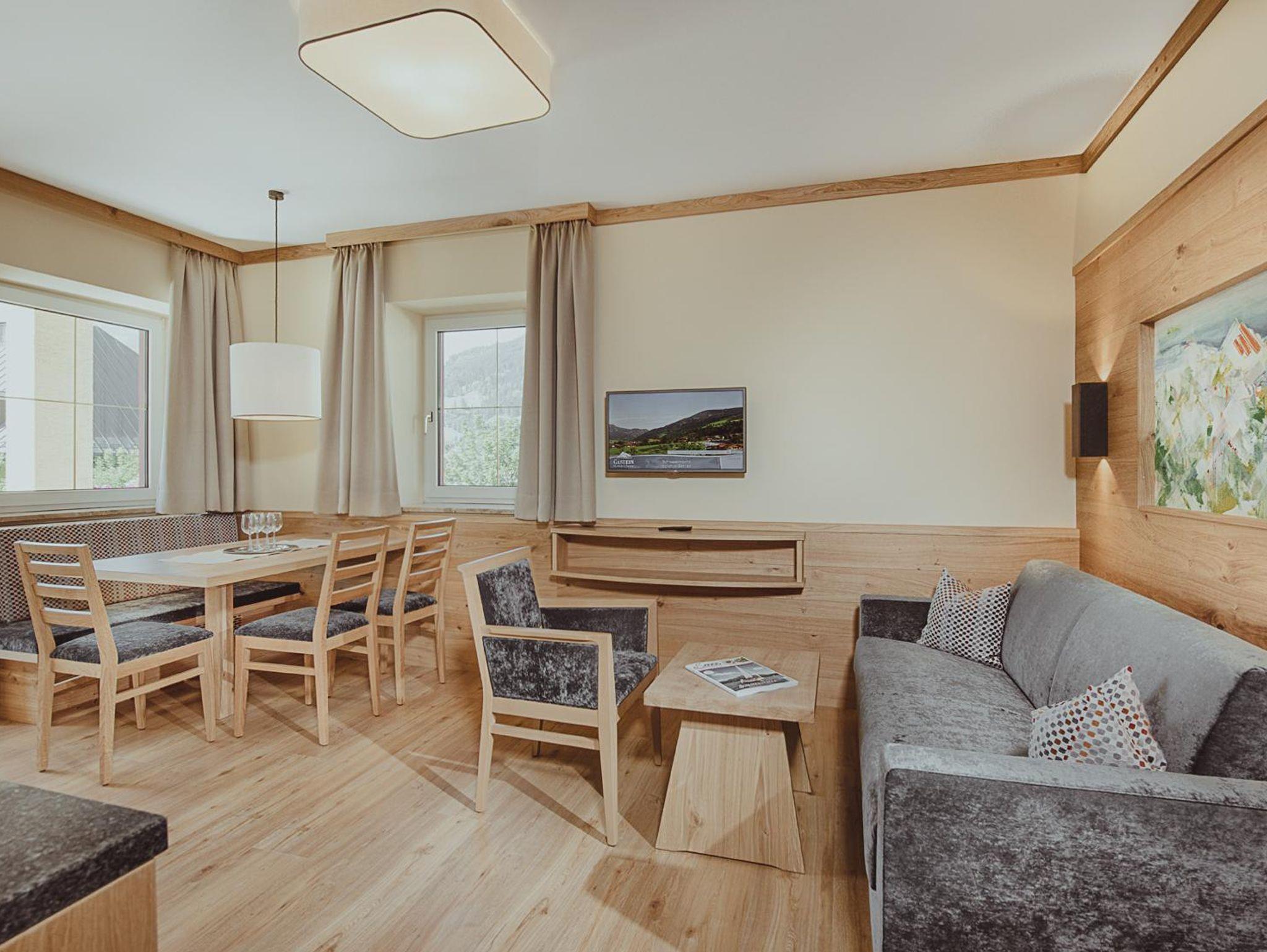 Liebevoll und modern ausgestattet, laden die 27 Wohnungen mit Aufzug im Appartementhotel Panorama nach abwechslungsreichen Tagen in den Bergen von Gastein zum Erholen, Entspannen und Genießen ein. Mit bis zu 65m² Wohnfläche ist bei uns genügend Platz für 2 bis 5 Personen.