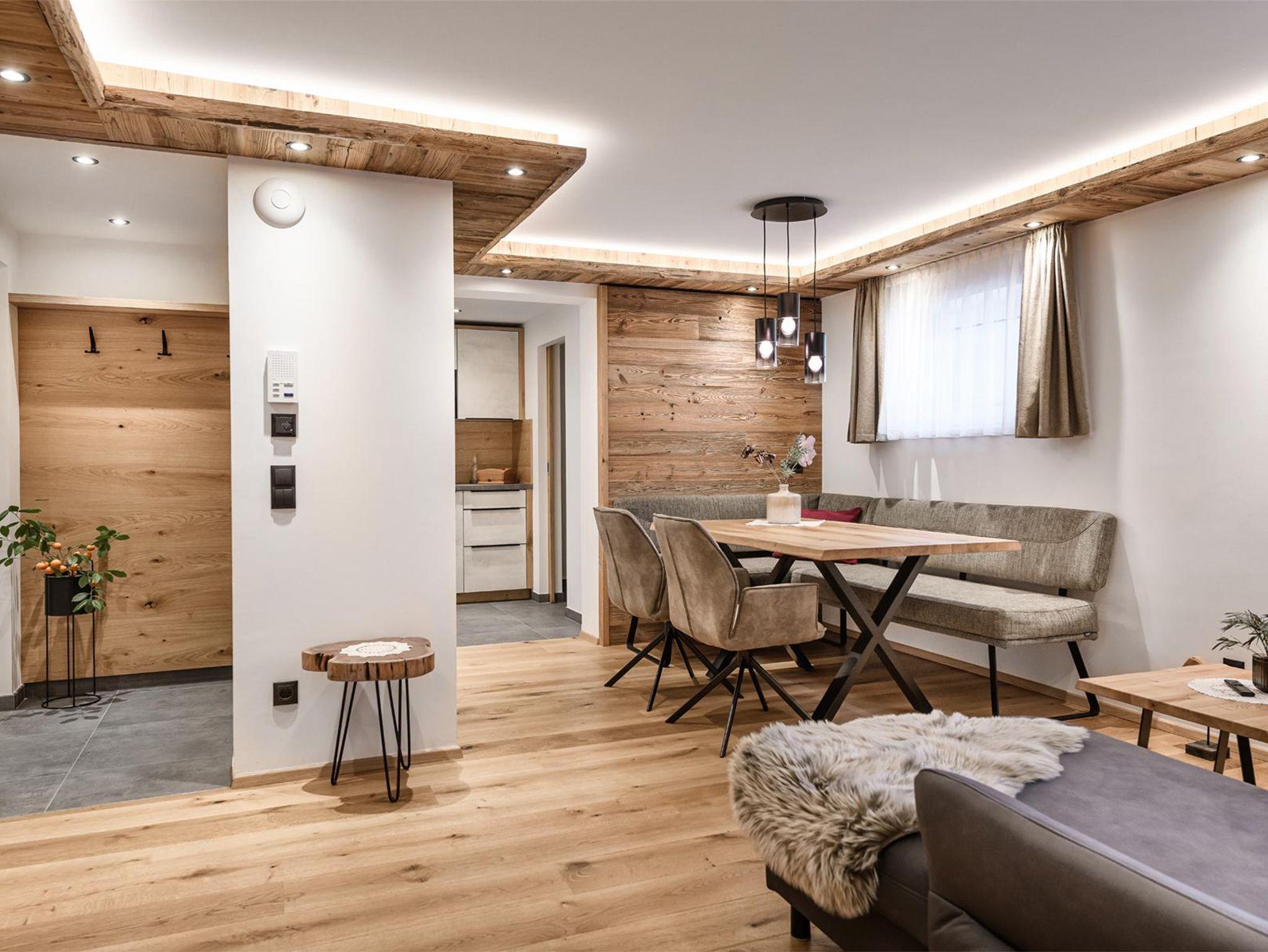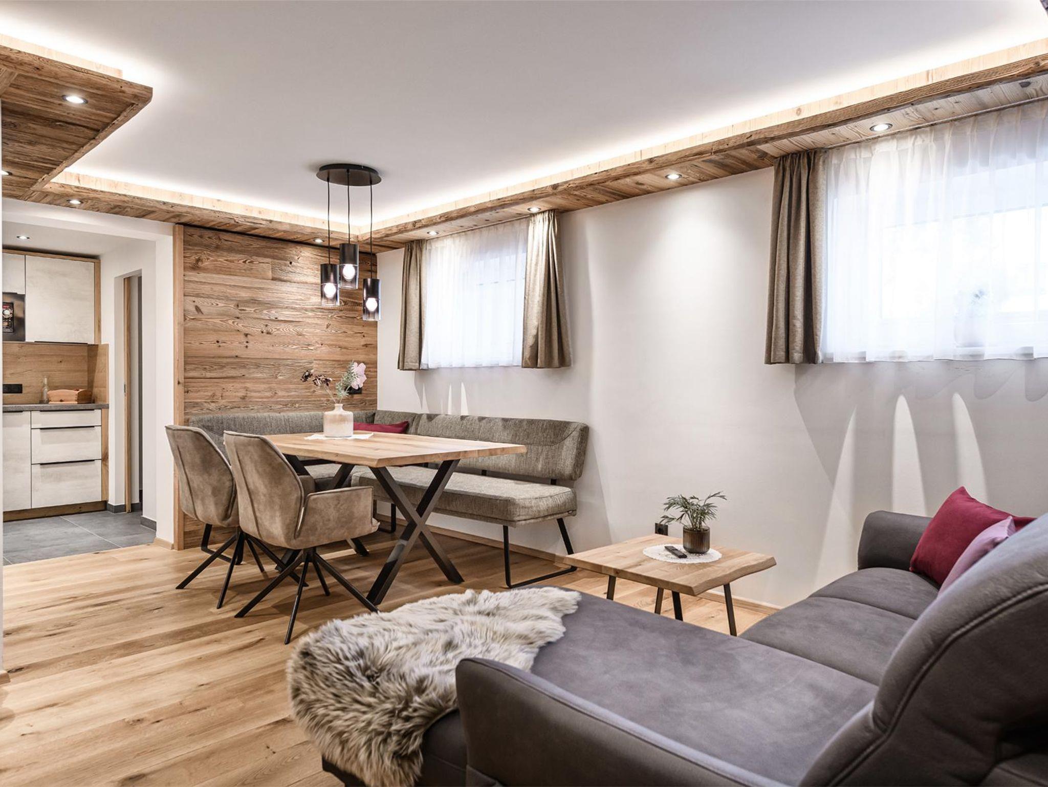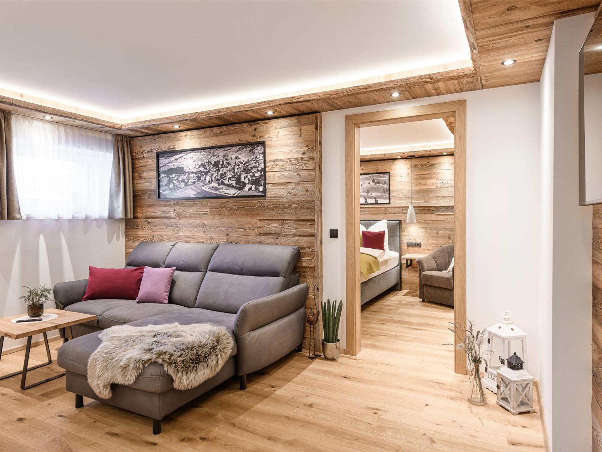 S`Hoamatl. Apartment I mit 53 m² liegt im Erdgeschoss und ist ideal fu¨r zwei Personen, beherbergt aber auch bis zu vier Personen. Hier hast du ein Schlafzimmer ( 1 Zustellbett und 1 Gitterbett oder weiteres Zustellbett möglich auf Anfrage) sowie ein Wohn- Esszimmer mit Schlafsofa und komplett ausgestattete Ku¨che mit Abstellraum. TV im Wohnzimmer und Schlafzimmer.