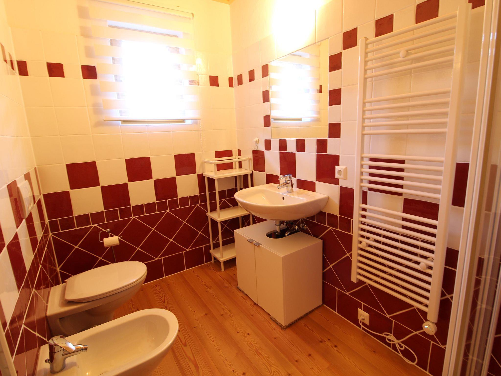 Neue Wohnung im Erdgeschoss in einem kleinen Gebäude, 50 m von den Skipisten entfernt. Ein Doppelbettzimmer, ein Schlafzimmer mit Einzelbett und Etagenbett, großes Wohnzimmer mit Küchenzeile, Badezimmer mit Dusche, WC, Bidet, Waschbecken und zusätzliches WC. Terrasse und Garten. Zwei Parkplätze.