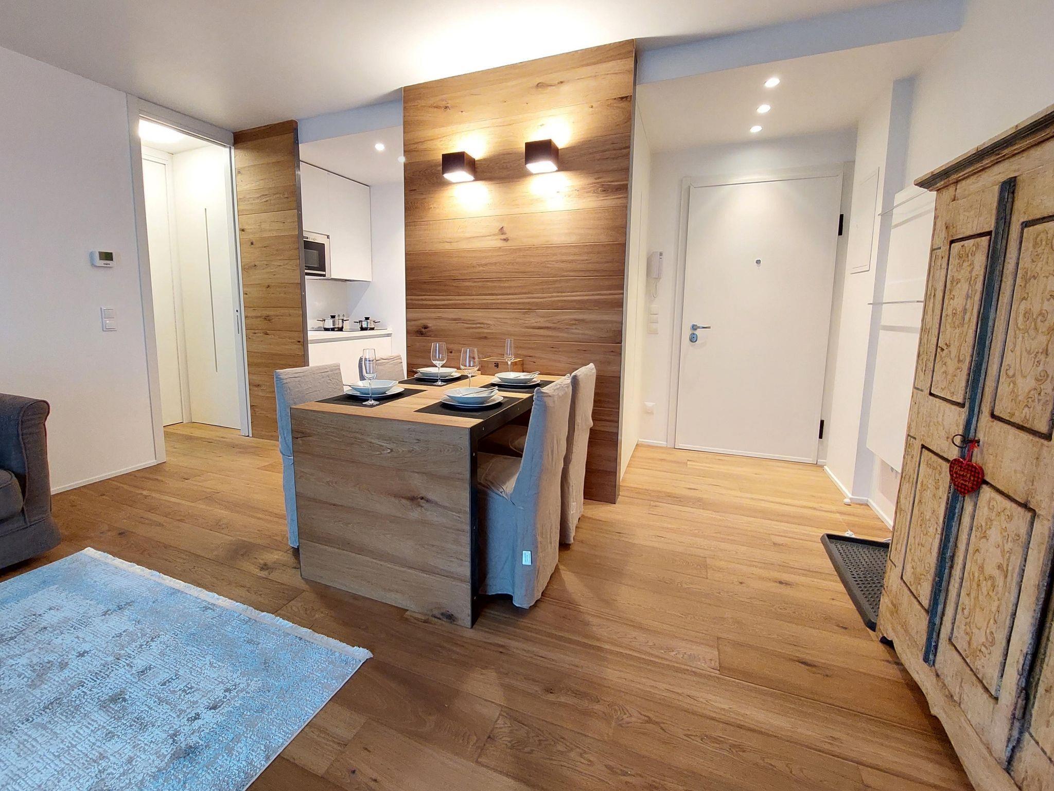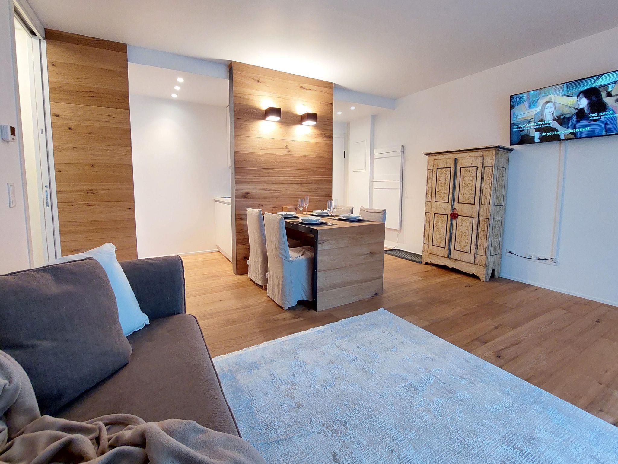Charmantes Apartment im 1. Stock, nur einen Steinwurf von der Skipiste entfernt, in Panoramalage. Ausgestattet mit neutralen Farben und Naturholz, mit einem wunderschönen Holzofen für Winterabende und einem großen Balkon mit Blick auf das Tal zum Entspannen im Freien im Sommer. Küche ausgestattet mit Induktionskochfeld, Mikrowelle, Kühlschrank, Geschirrspüler, Nespresso-Kaffeemaschine. Badezimmer mit Dusche und Bidet. Überdachter Parkplatz.