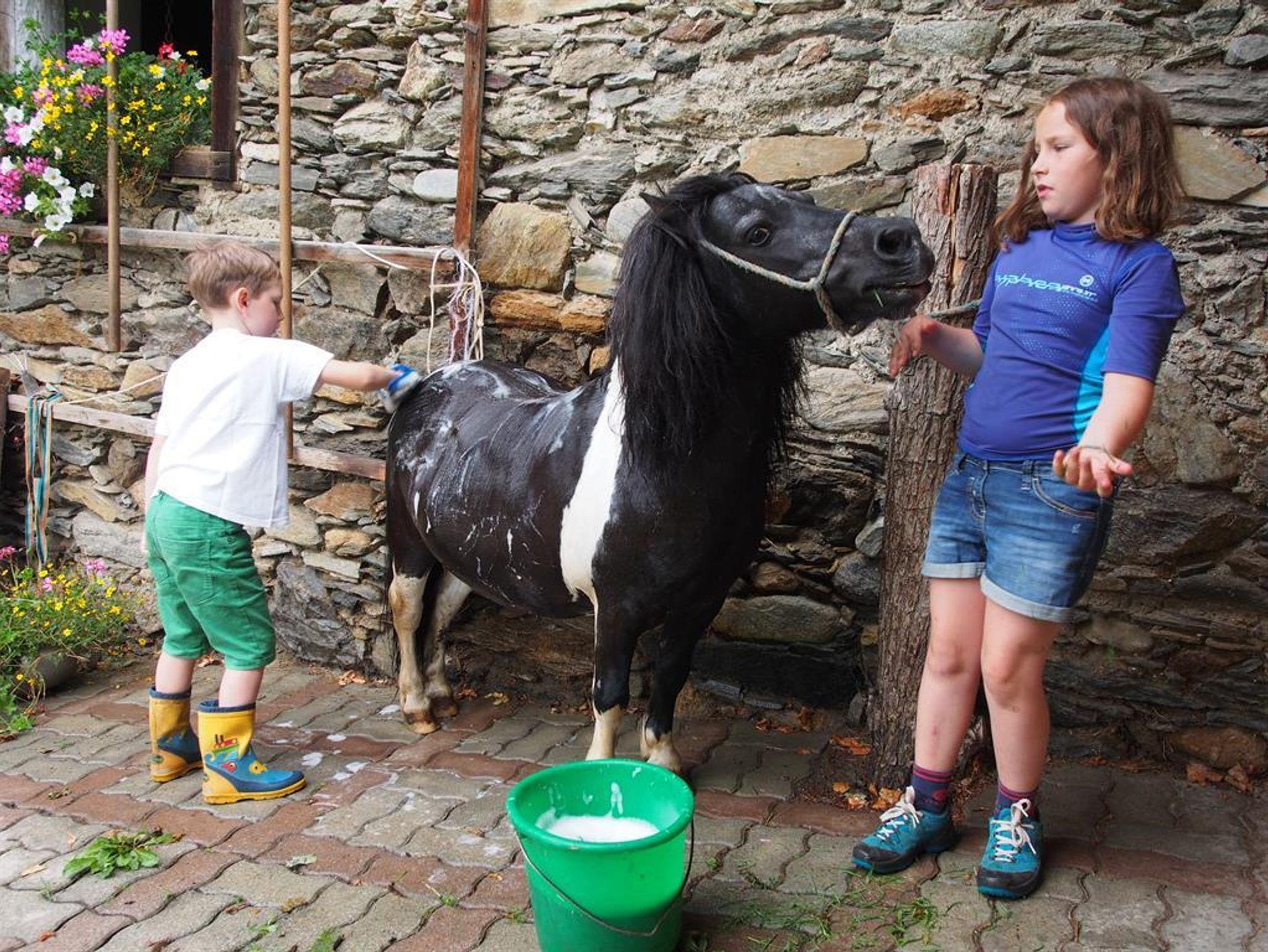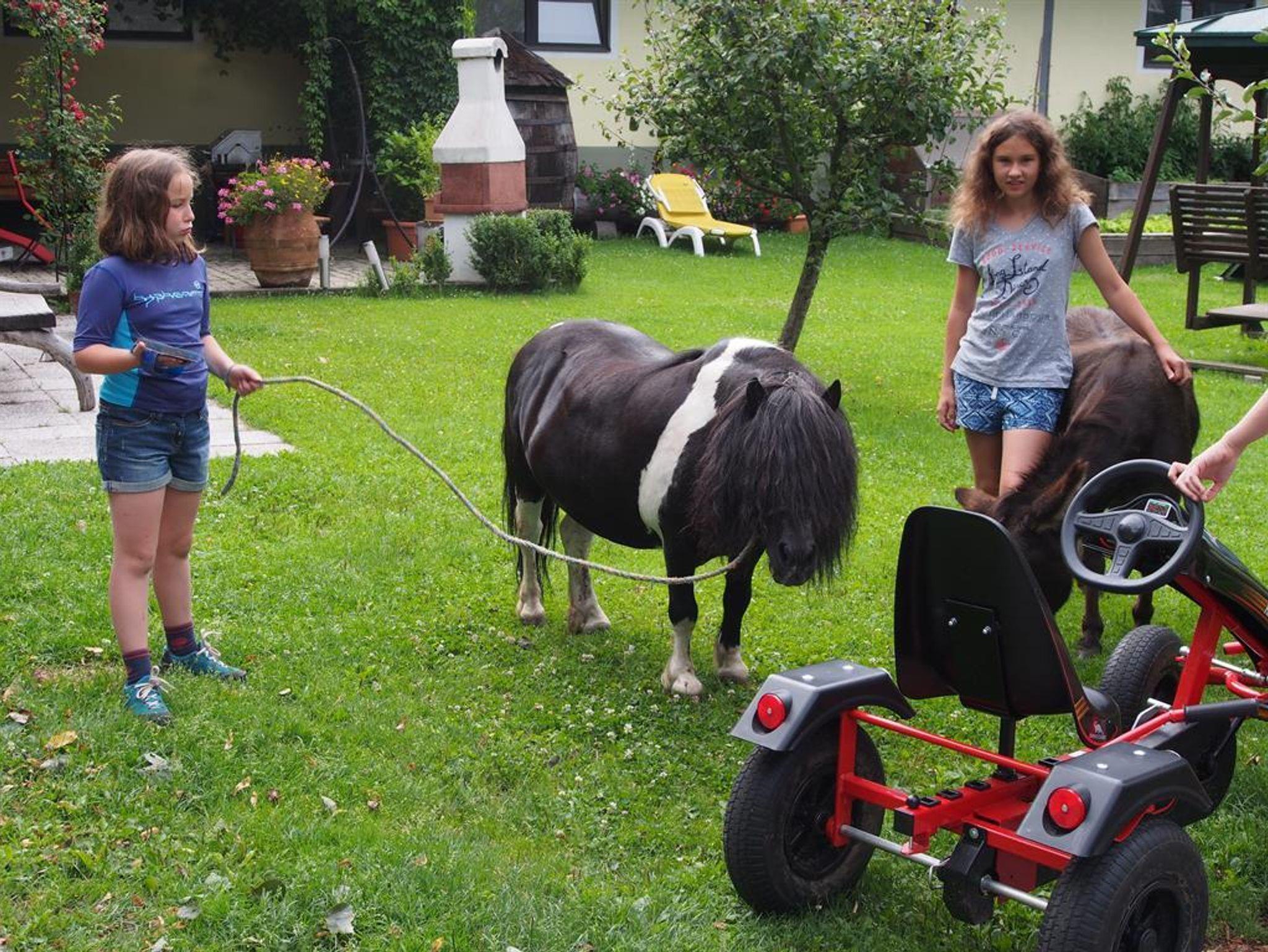 Im familienfreundlichen Betrieb ist natürlich auch viel Platz für unsere Kleinen, die den Naturspielplatz, die Streicheltiere (Kühe, Pony, Esel, Katzen, etc.) und auch die Mithilfe im Stall gerne annehmen.