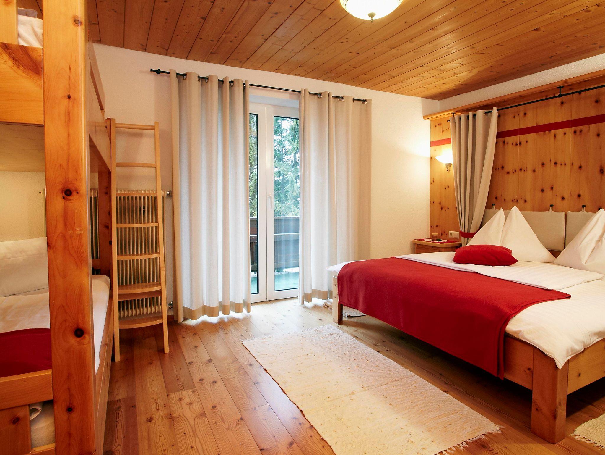 NEUE Zirben-Appartement Nr. 6 (für max. 4 Erw. & 3 Ki. - bei App. 2) mit je 2 getrennten Schlafzimmern (1x Doppelbett - 1 x Stockbett und 1 x Doppelbett und 1 Einzelbett) - jedes Zimmer 1 separates Bad mit Dusche/WC, großes Wohn-Esszimmer (großer Esstisch), Küche (inkl. Geschirrspüler & Mikrowelle), Bad mit Dusche/WC, Kabel-TV, W-LAN, südseitig mit Balkon (herrlicher Blick auf den Hausgarten & die Kaiserburg.- Das Zirbenholz beruhigt das Herz-Kreislaufsystem!