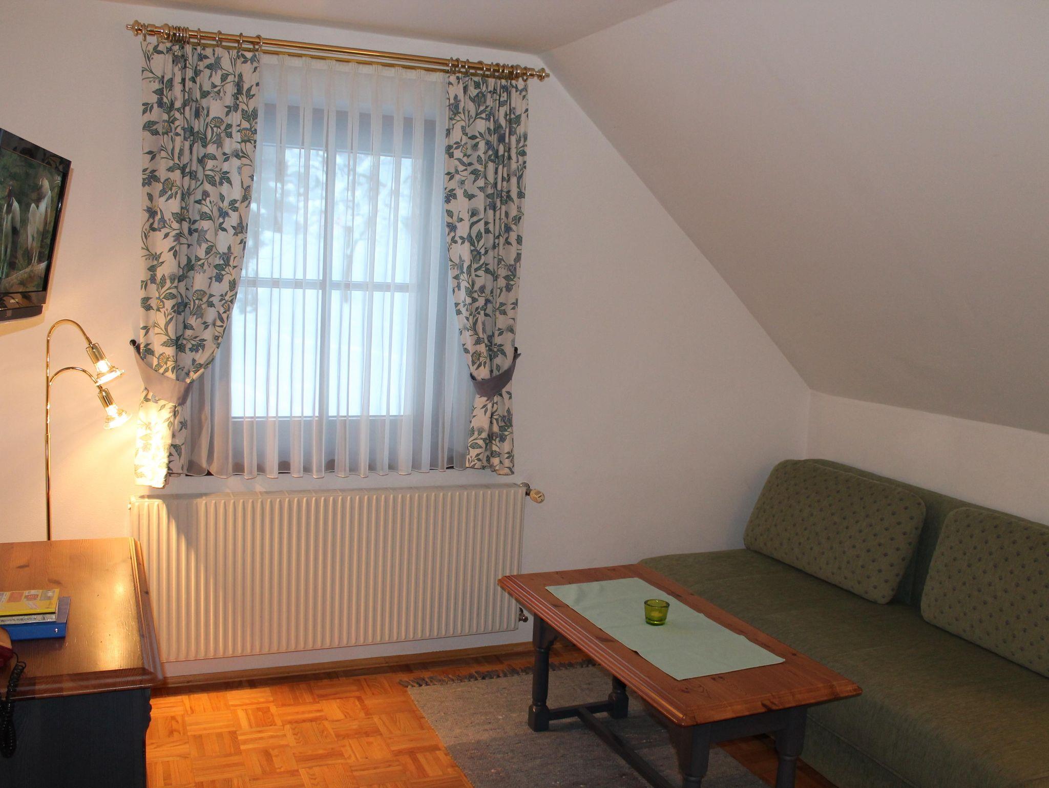 Die in Richtung Westen zur Morgensonne ausgerichtete Ferienwohnung bestehend aus einem Doppelzimmer, einem großen Wohn- Schlafraum mit ausziehbarer Doppelcouch und komplett eingerichteter Küchenecke, Bad/WC, Farb-SAT-TV (Flat TV), Radio, Telefon, Wireless Internet und großem Balkon. Die Ferienwohnung hat die ideale Größe für Familien mit 4 Personen und mit einem Zusatzbett finden darin auch 5 Personen Platz.