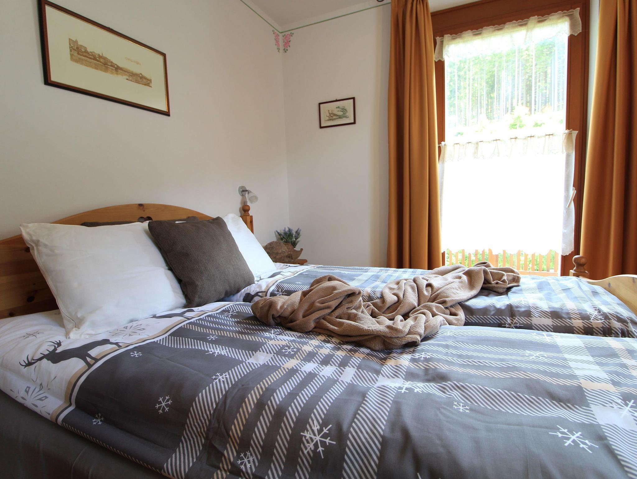 Bequeme Ferienwohnung für 4 bis 5 Gäste einen Steinwurf von der Maibrunn Skipiste, erreichbar zu Fuss. Ganz hinter dem Haus grüne Wiesen mit vielen Wandermöglichkeiten. Im 1. Stock mit Aufzug. Zwei doppelte Schlafzimmer, zwei Bäder, Waschmachine, geräumiges Wohnzimmer mit doppelter Schlafcouch, Küche mit Backofen und Geschirrspüler, zwei Balkone, beide mit Aussicht, kleiner Skiraum und Parkplatz in der Garage.