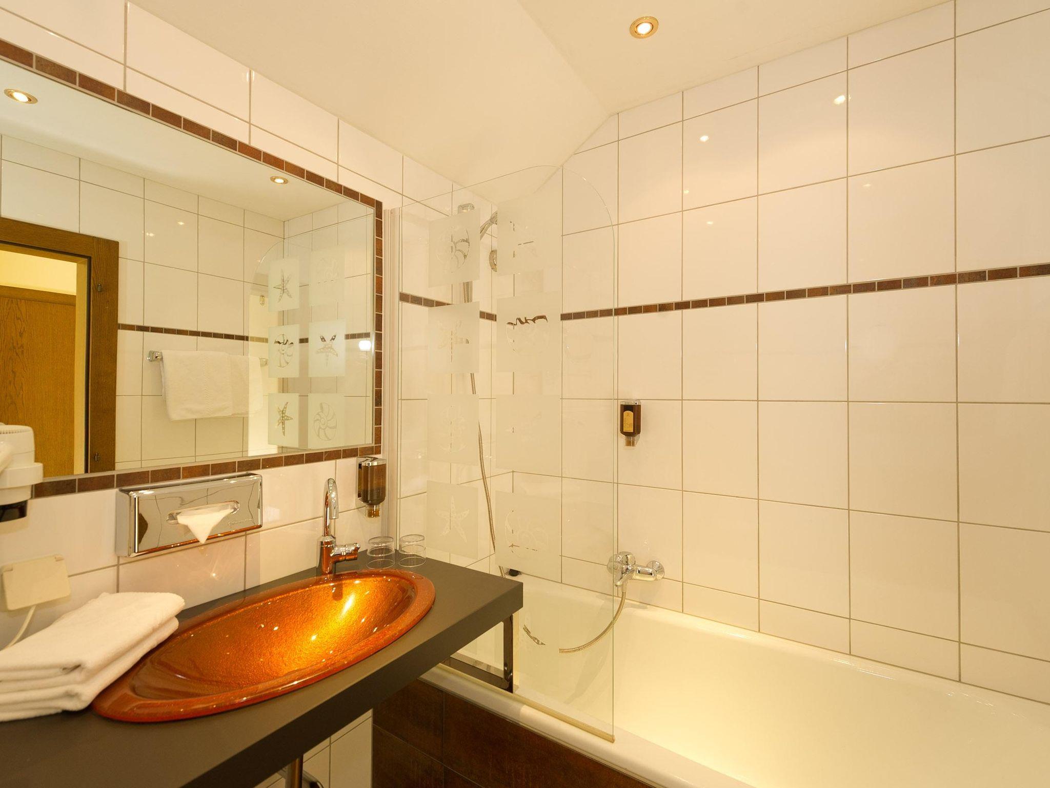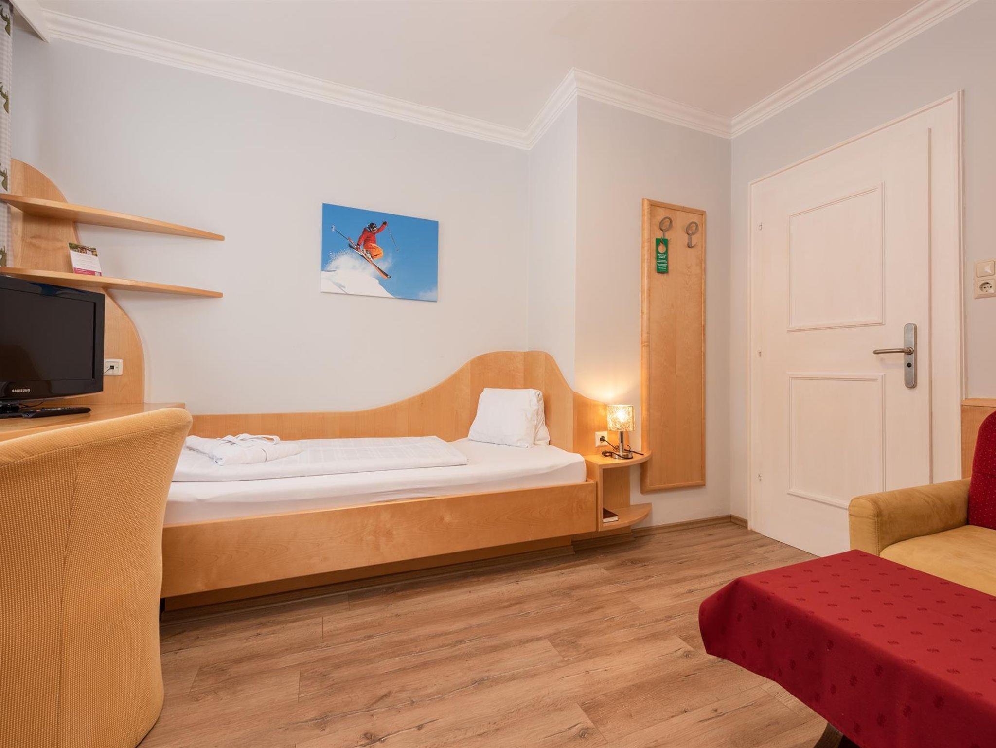 Einzelzimmer Ca. 15 m², Ohne Balkon, Gemütlicher Schlafraum und Sitzbereich, Kabel-TV, Safe, Badezimmer mit Badewanne oder Dusche und WC, Kosmetikspiegel, Föhn, Bademantel, Wellness-Korb, GRATIS WLAN