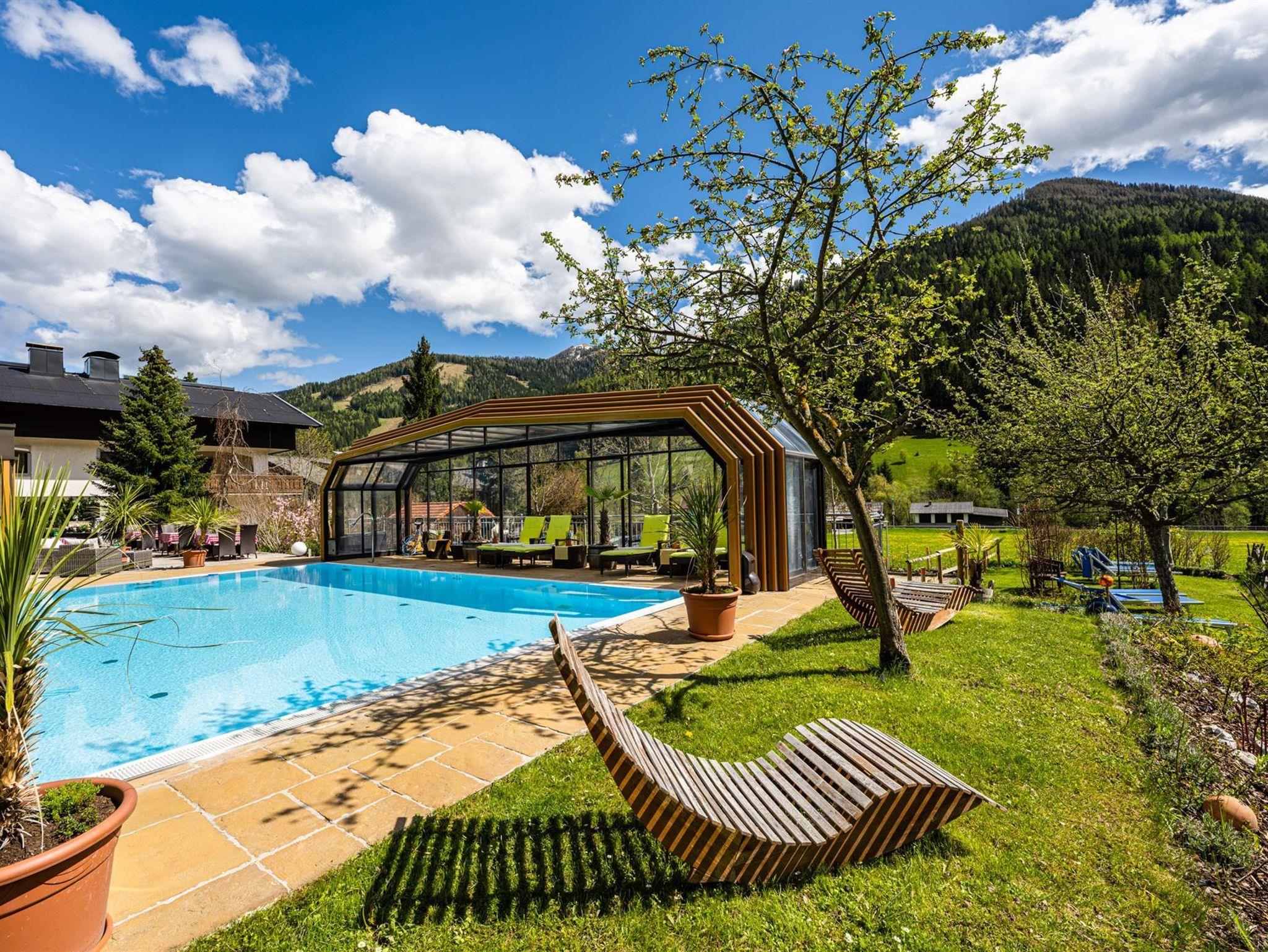 Willkommen im Hotel Almrausch mit der 500 Quadratmeter großen Wellnessoase auf zwei Ebenen. Freuen Sie sich auf jede Menge Relaxen, Energietanken und Kraftholen mit überdachtem, ganzjährig nutzbarem Pool (Sommer 29°C, Herbst/Winter 31°C), einer Saunaoase, verschiedenen Ruheräumen und bei wohltuenden Massagen. Sommerurlaub in Bad Kleinkirchheim