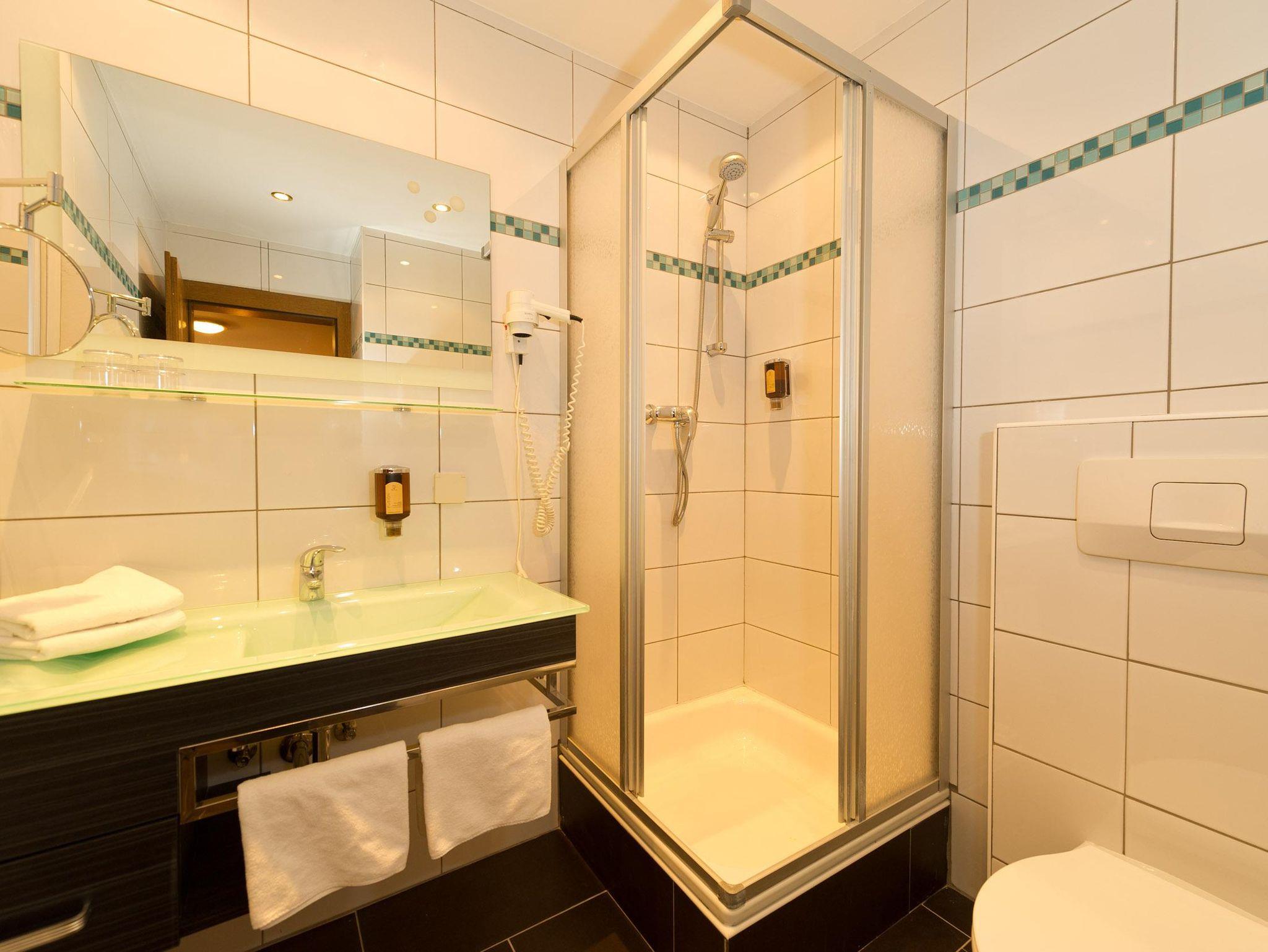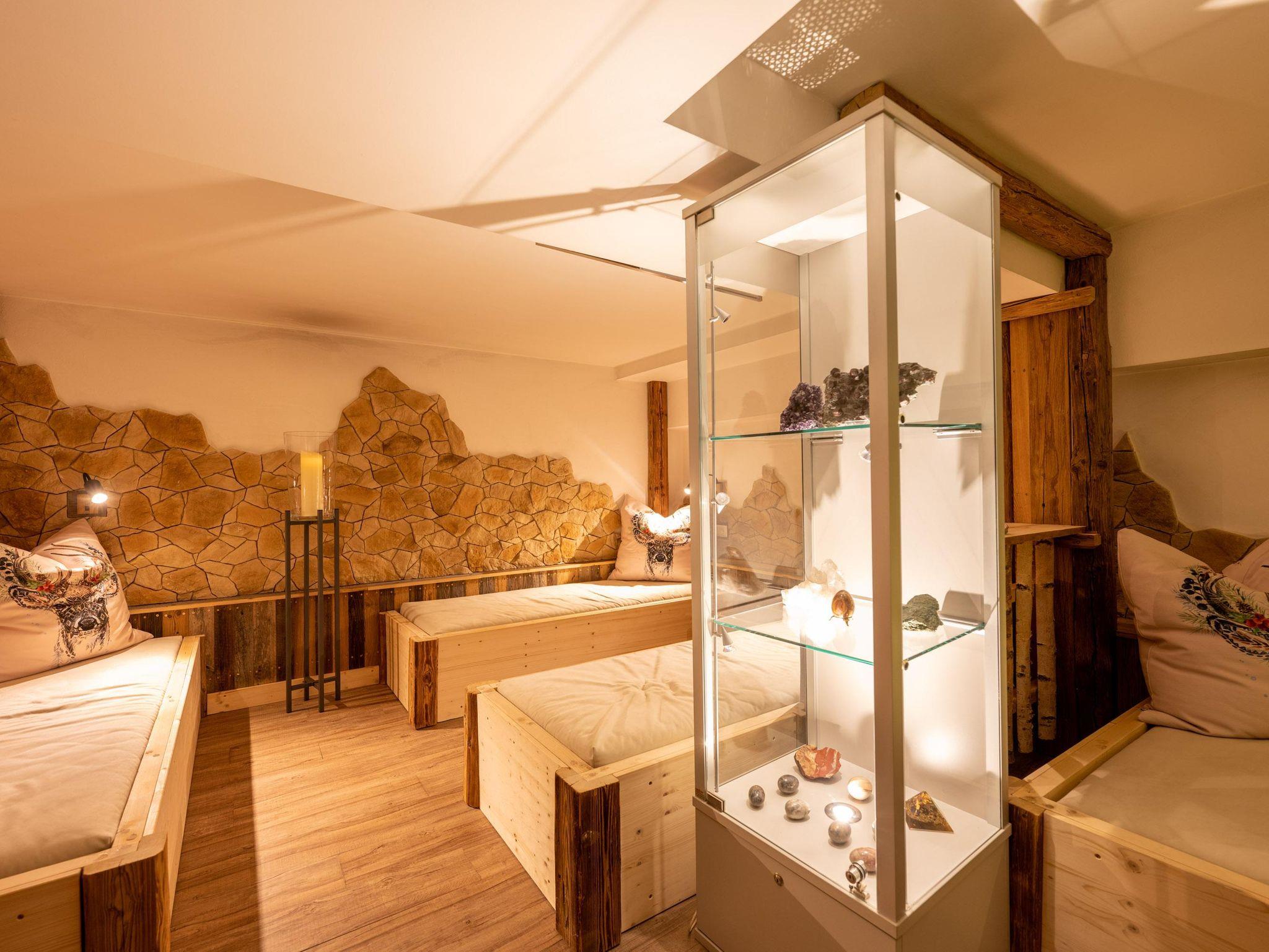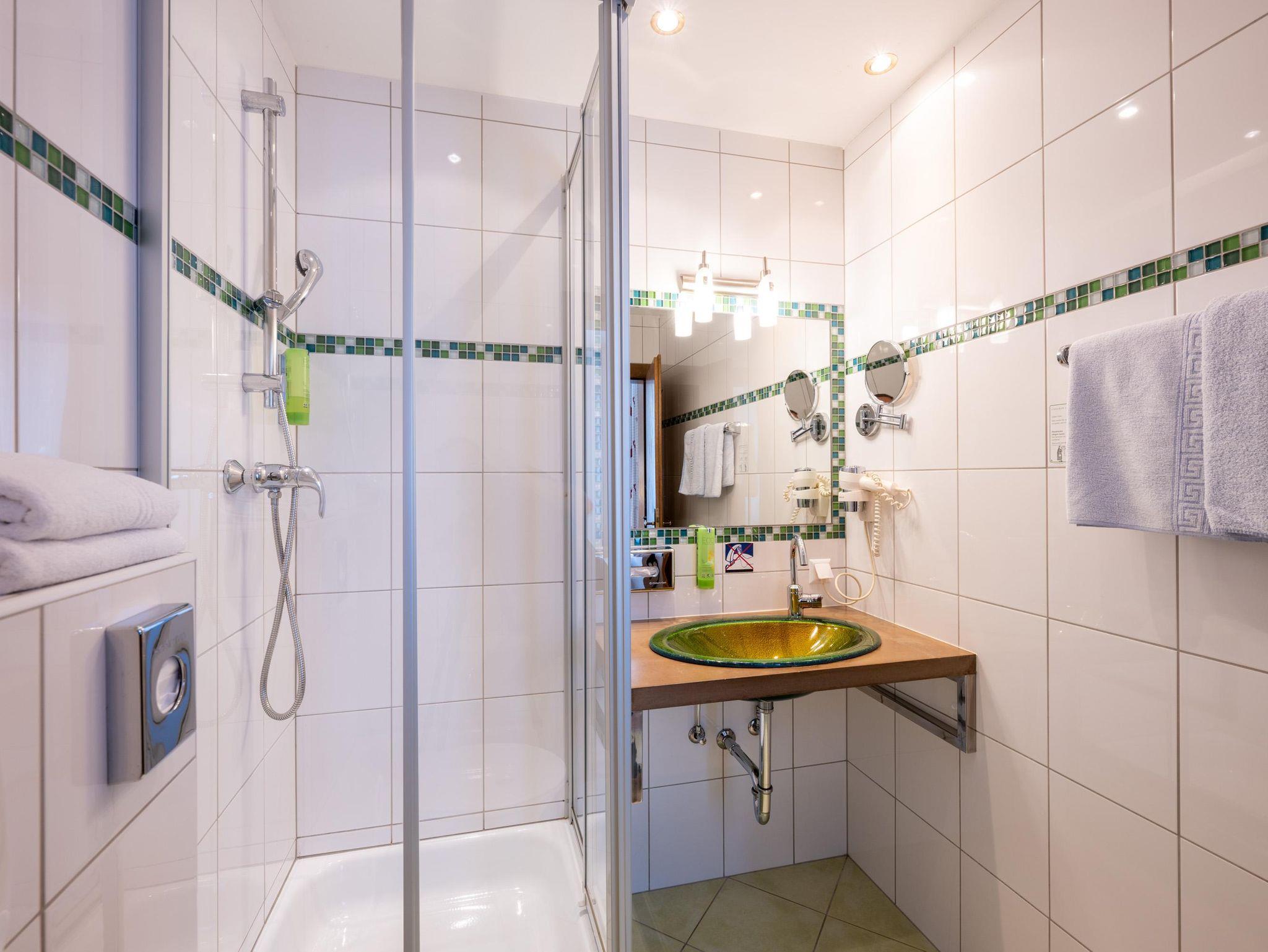 Doppelzimmer Zirbe-Birke Ca. 22 m² (für 1 bis 2 Personen), Ostbalkon oder Loggia, Gemütlicher Schlafraum und Wohnecke, Safe, Badezimmer mit Dusche und WC, Kosmetikspiegel, Föhn, Bademantel, Wellness-Korb, GRATIS WLAN