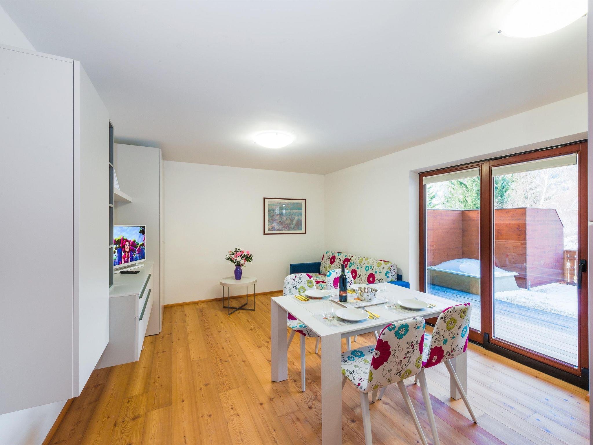 Nach einem aktiven Tag in der Natur können Sie auf Ihrem Balkon oder der Terrasse entspannen und den Abend in gemütlicher Atmosphäre bei einem atemberaubenden Blick auf die Berge ausklingen lassen.