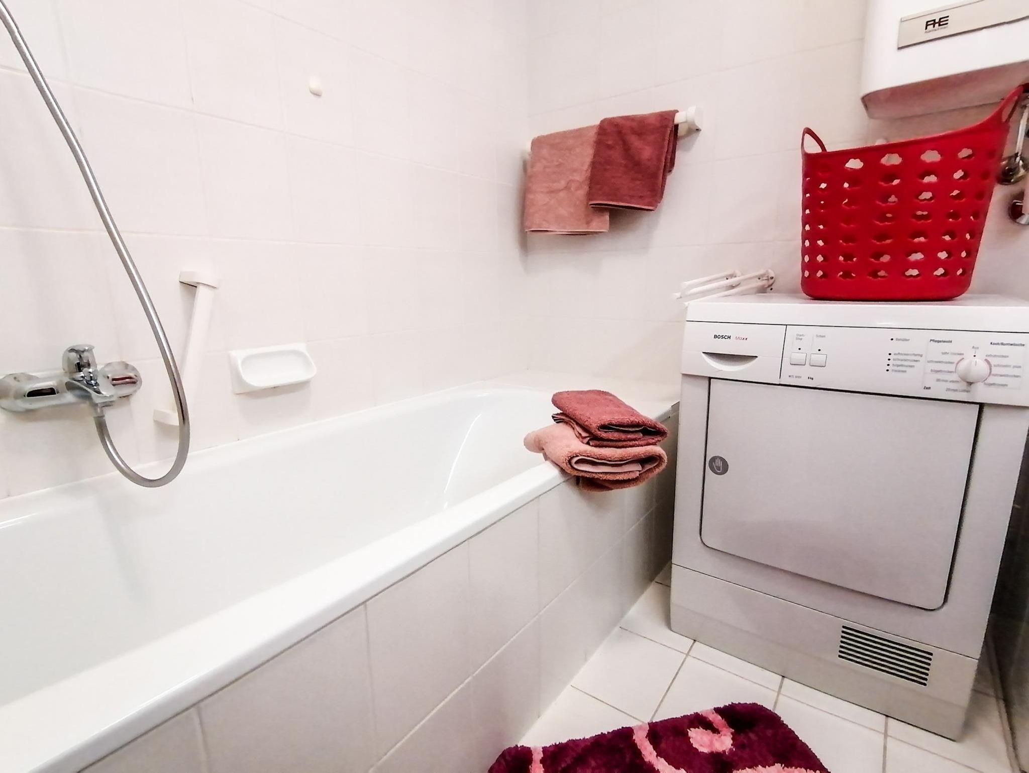 Küche mit Geschirrspüler und Waschmaschine, separate Eßecke, Bad, WC, Vorraum, Balkon - südseitig (mit Blick zur Kaiserburg).