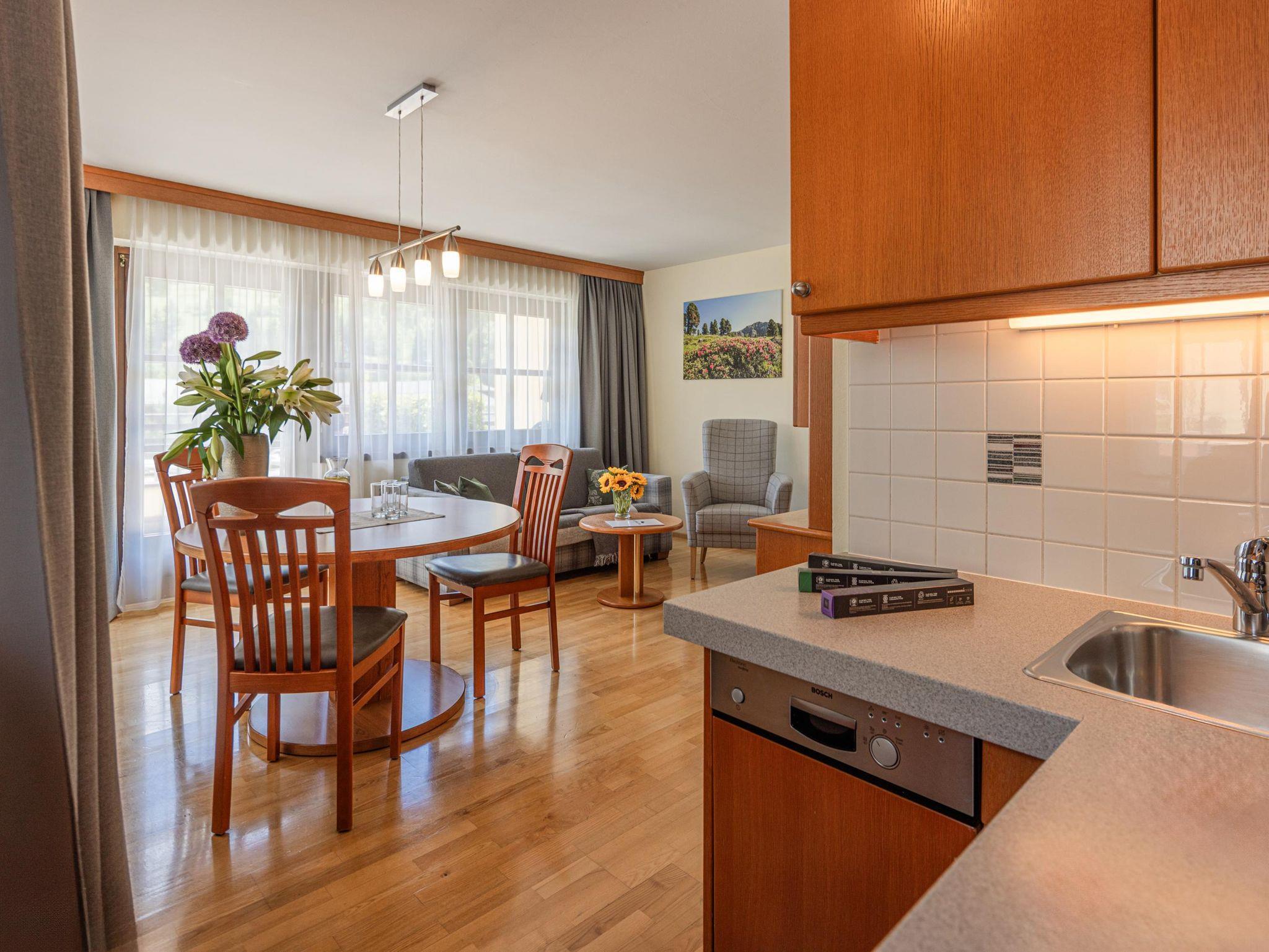In unseren voll ausgestatteten Appartements scheint die Sonne ins Gemüt. Statt einfach Räume mit Möbeln zu verstellen, haben wir uns auf das typische Kärntner Lebensgefühl eingerichtet: Willkommen sein bei Freunden!